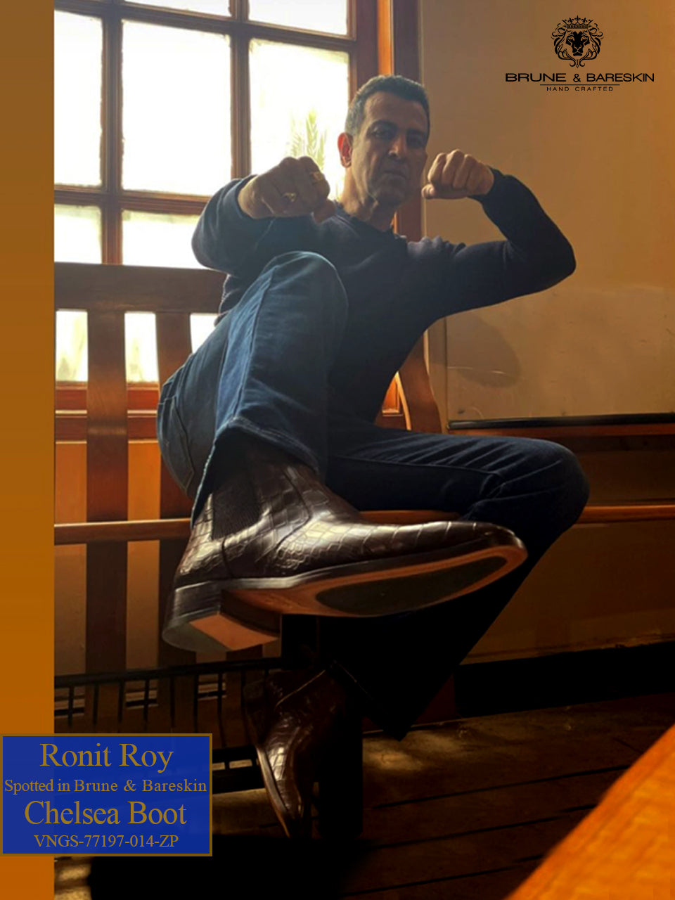 Dark Brown Chelsea Boots with Zip Closure in Croco Textured Leather