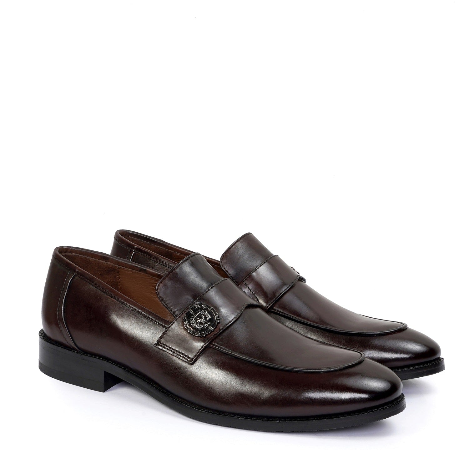 Dark Brown Formal Slip on with Gun Metal Lion Logo