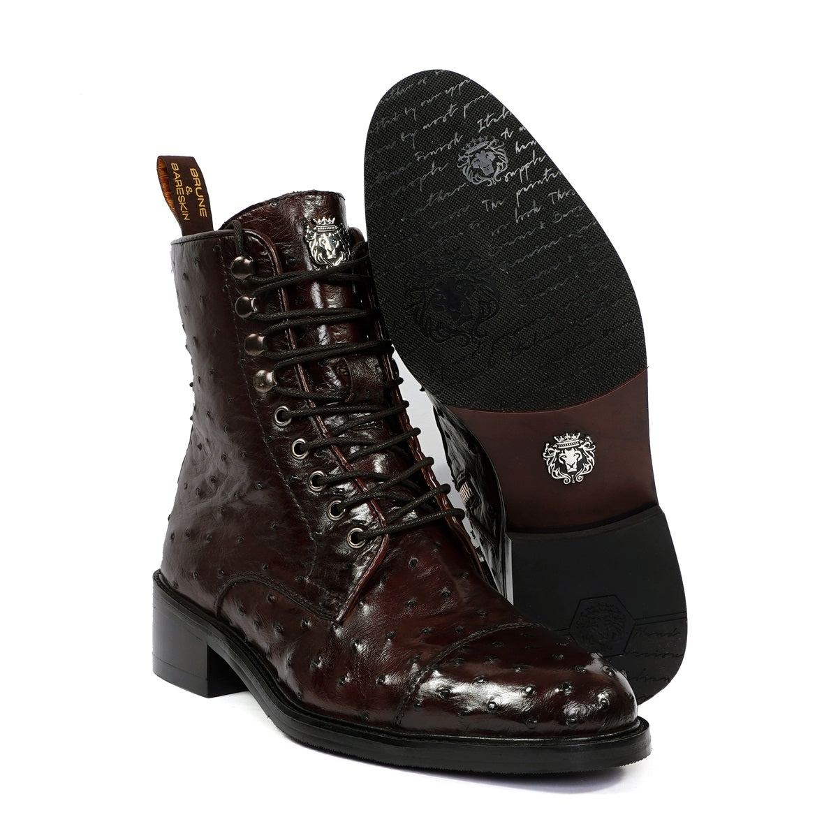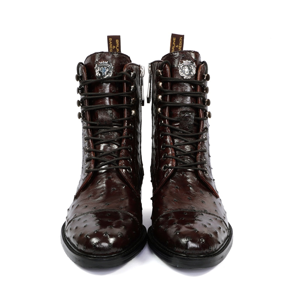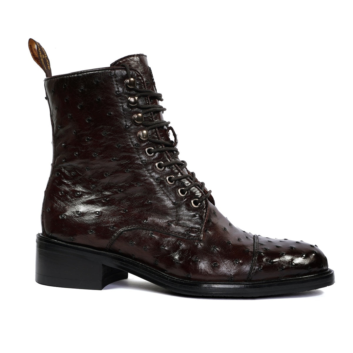 Dark Brown High Ankle Boot in Exotic Real Ostrich Leather