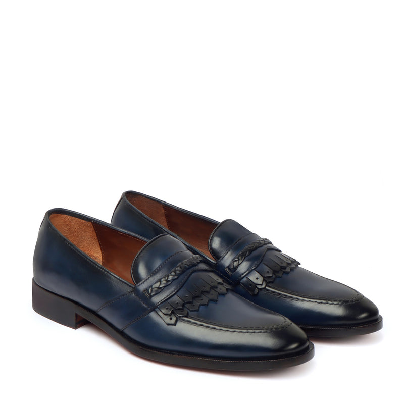A modern twist on a moccasin shoe that combines Fringes and woven strap to enhance the style statement. It is a perfect match to wear with formal-to-casual attires at any party or office. The punched double fringes with weaved strap enhance the chic style further. The Slip-on loafers are always considered as a fast pace lifestyle shoe. The textured outer sole provides a better grip in different conditions. These Dark Brown leather shoes by "BRUNE & BARESKIN" has a very sleek gentleman look. The slip-on closure provides easy to wear at any time. The multi-fringes design increases the style statement and makes you the center of attraction. The rubberized sole provides durability and flexibility.