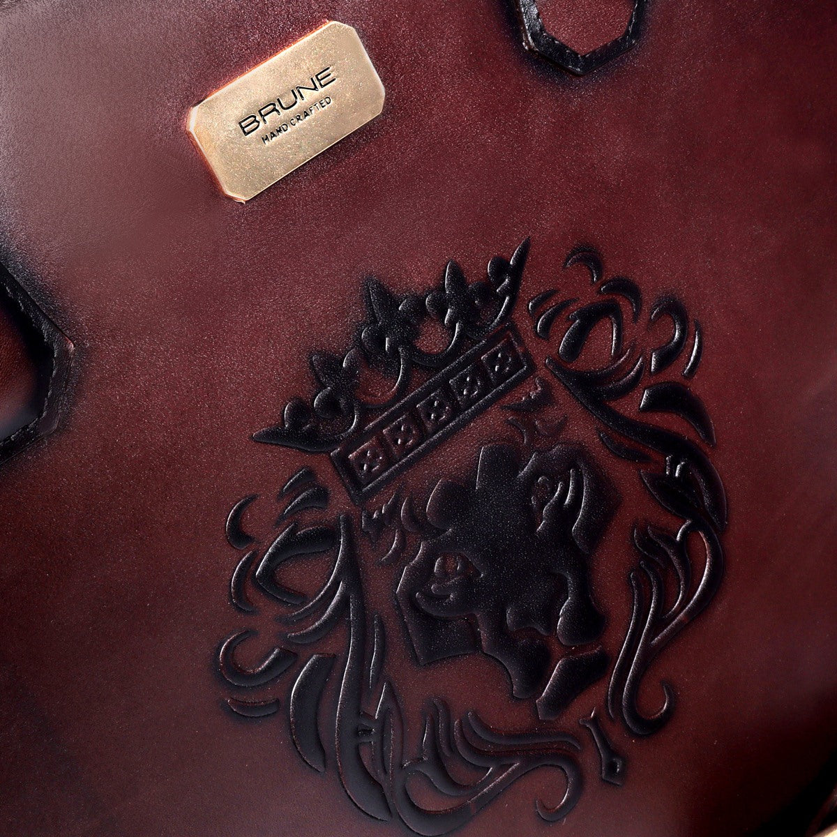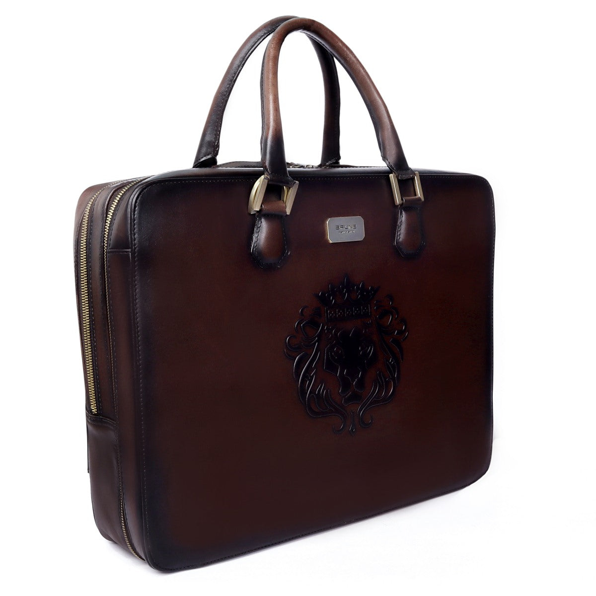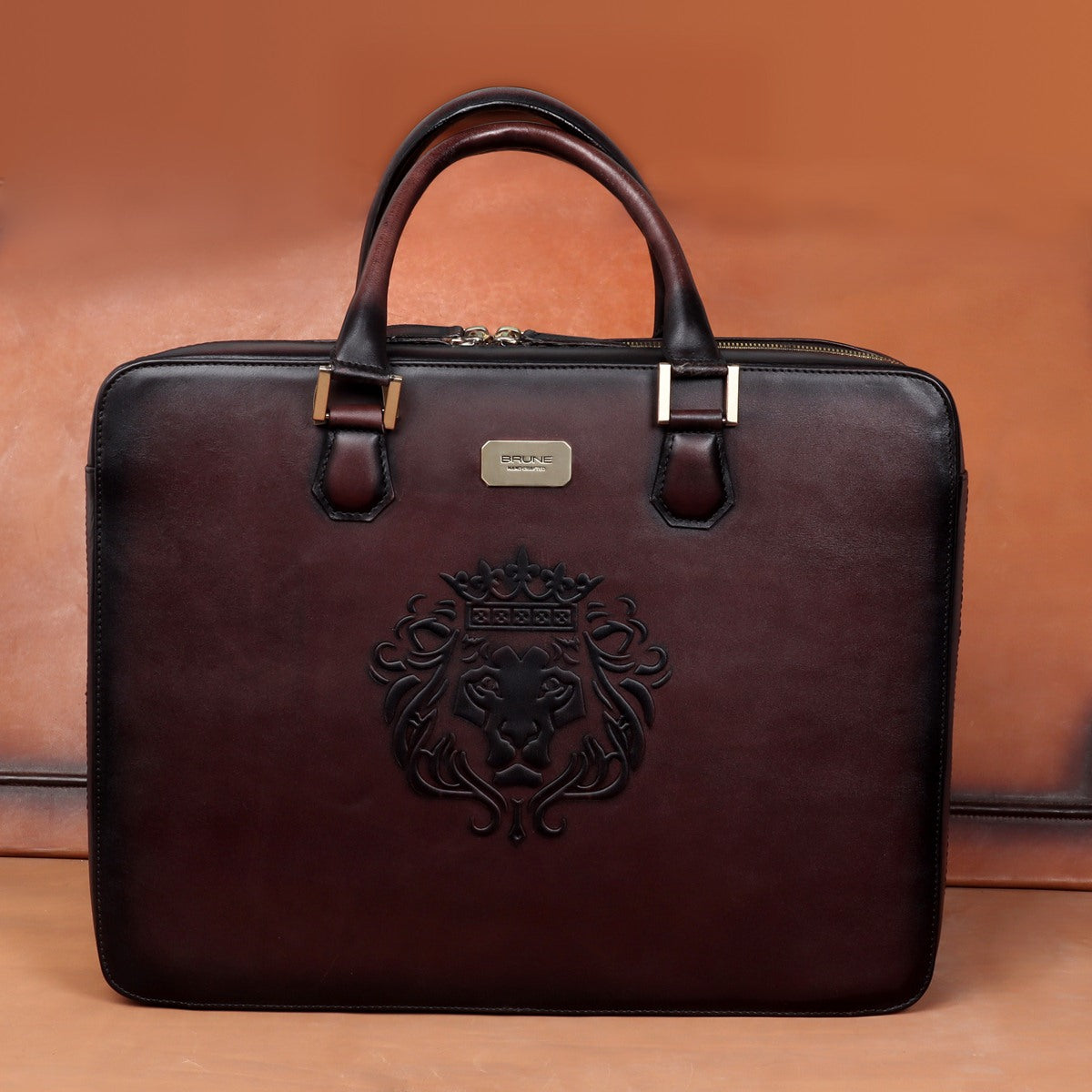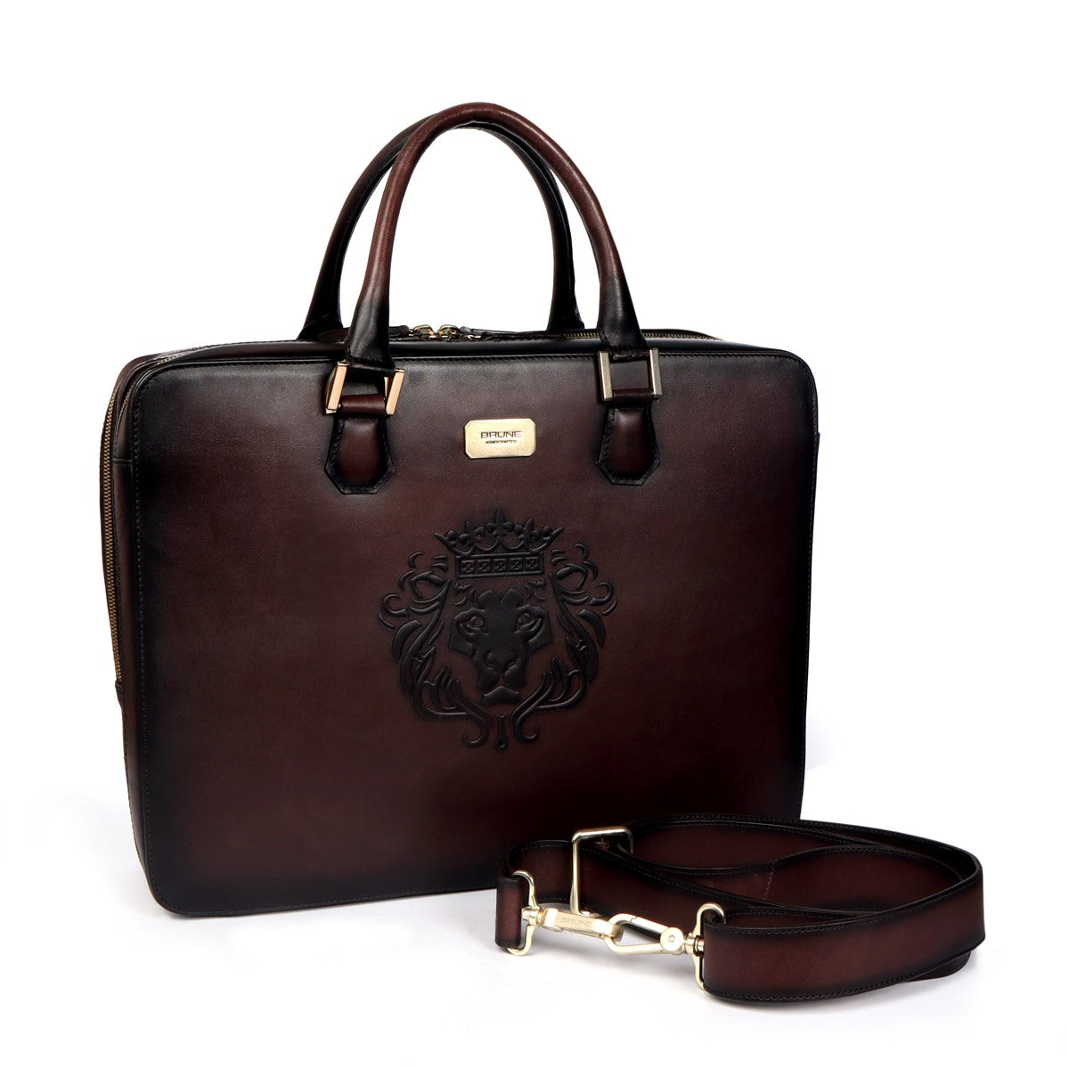 Dark Brown Leather Embossed Lion Laptop Office Briefcase with Organizer Compartment by Brune & Bareskin