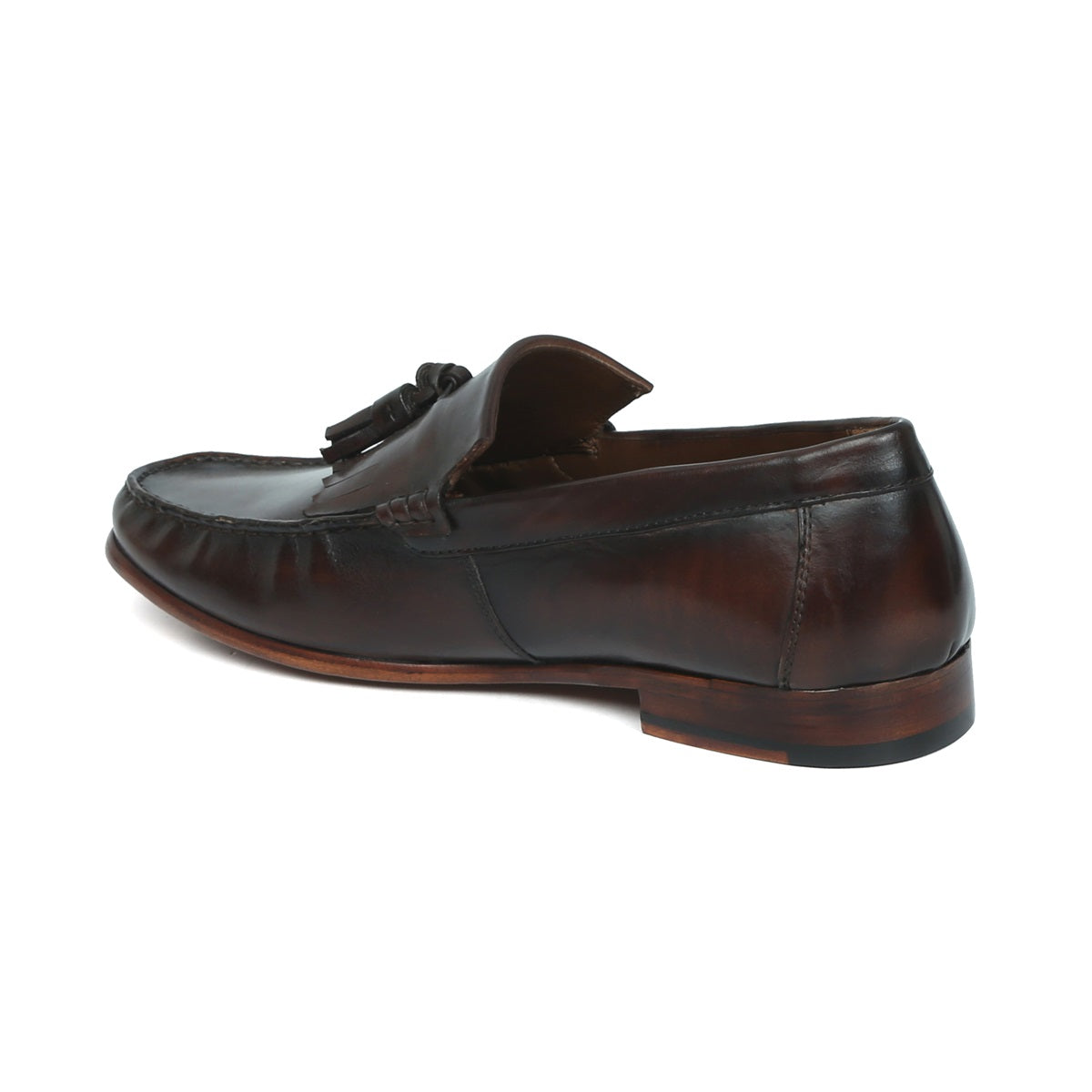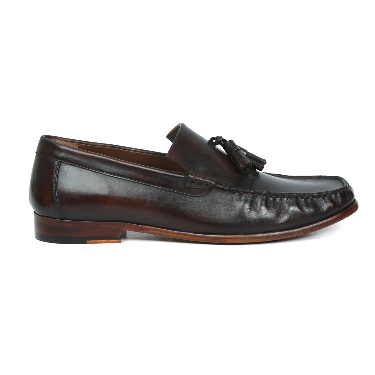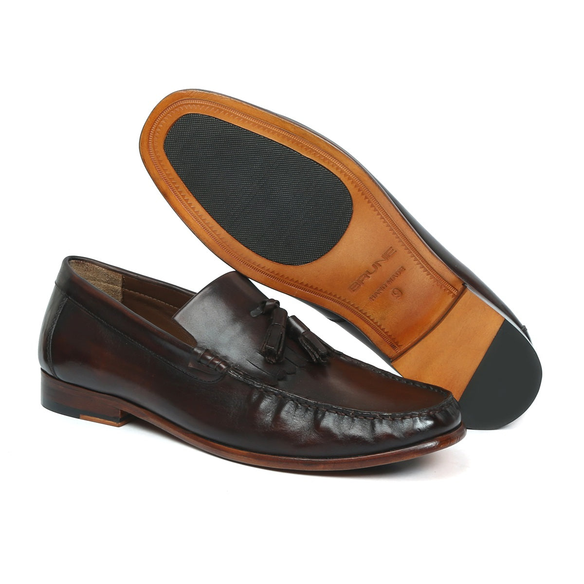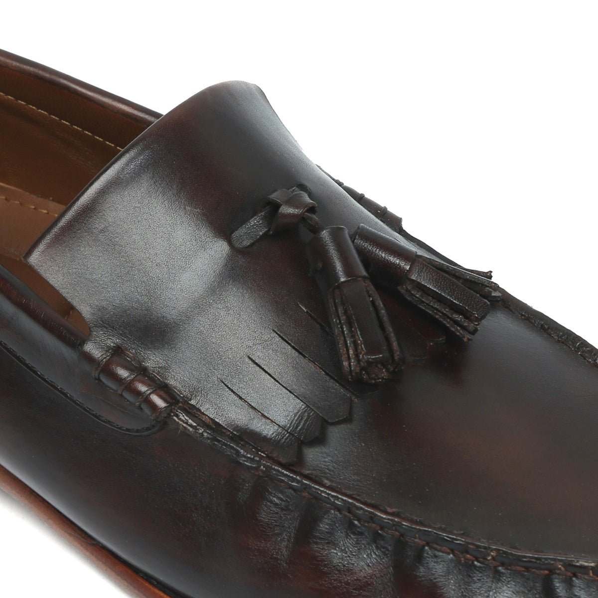 Tassel-Fringes Loafers in Dark Brown Leather with Leather Sole
