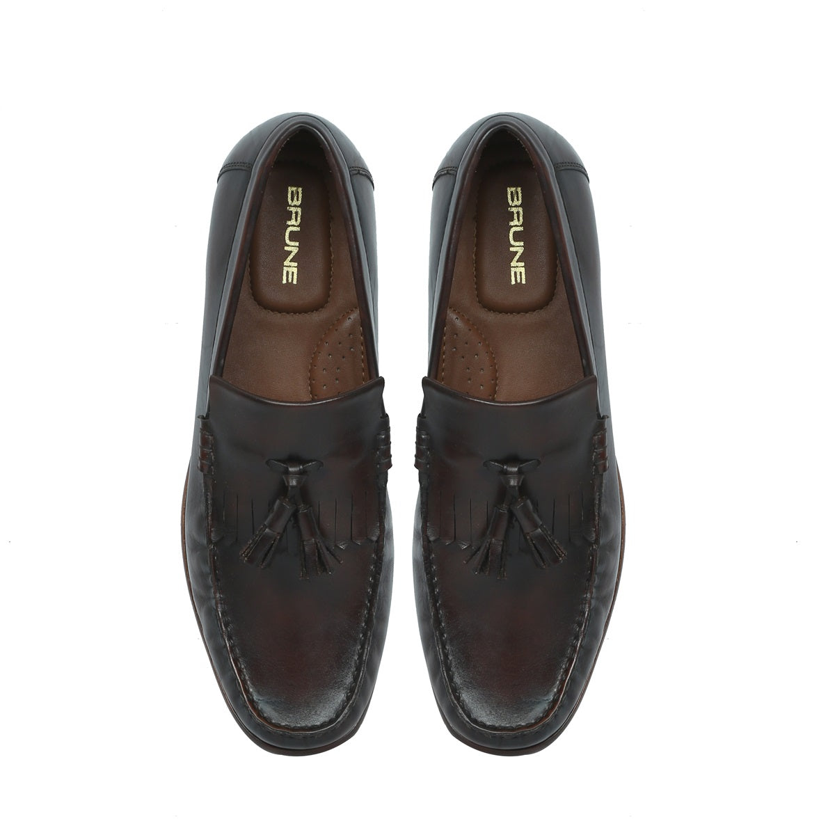 Brown leather products look very classy when matched with a dark to light color accent. A modern twist on the classic slip-on moccasin shoe that combines Tassel and Fringes to enhance the style statement. Imported leather loafers showcases the elegance and style at its best. It has memory foam insole which remembers and molds according to the foot shape. The textured outer leather sole provides better grip in different conditions. It is a perfect accessory to wear with formal-to-casual attires at any party or office.
