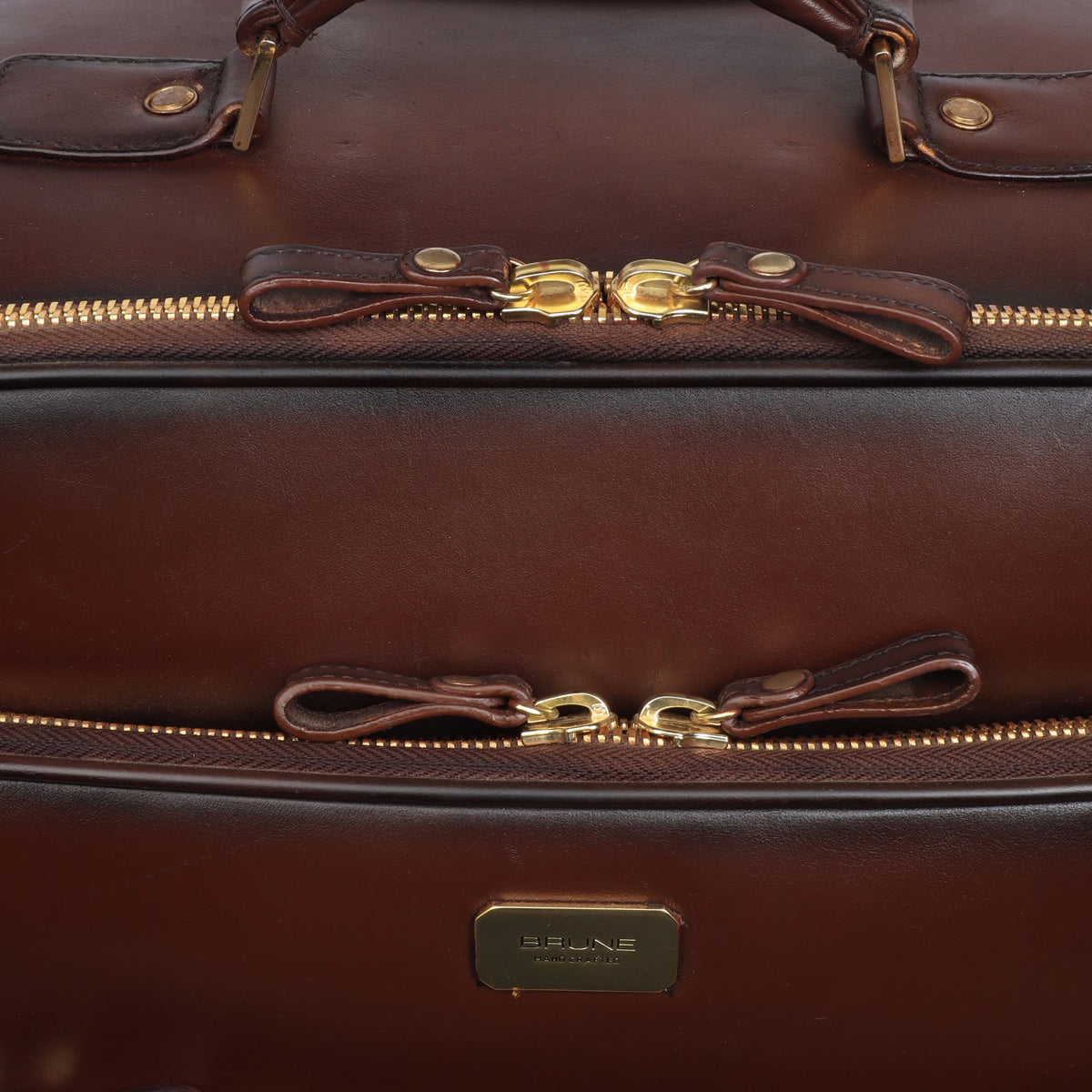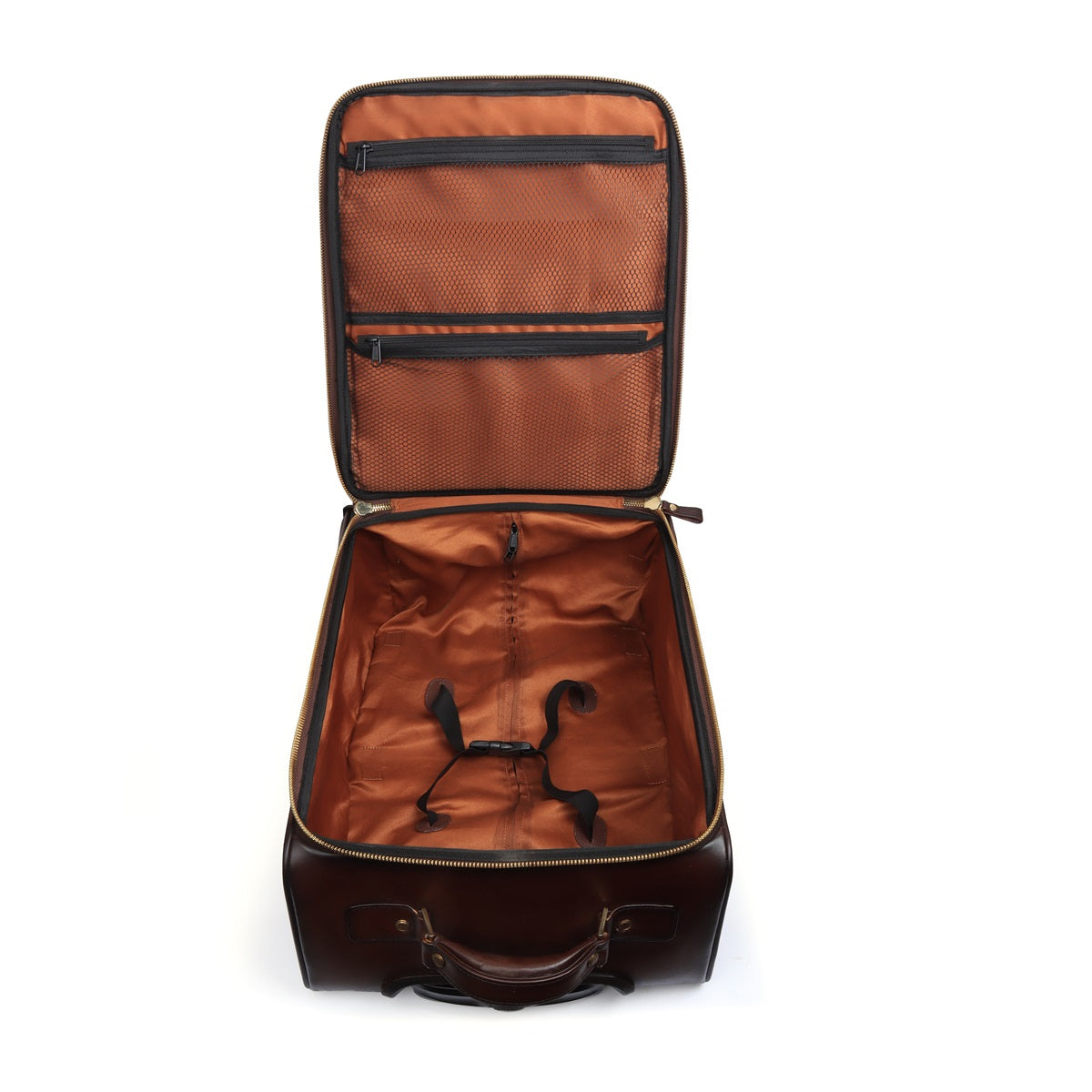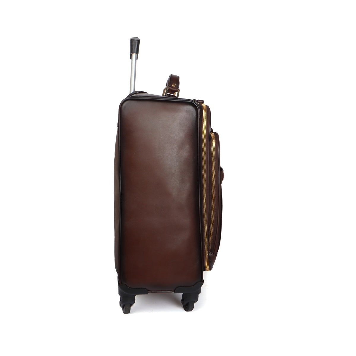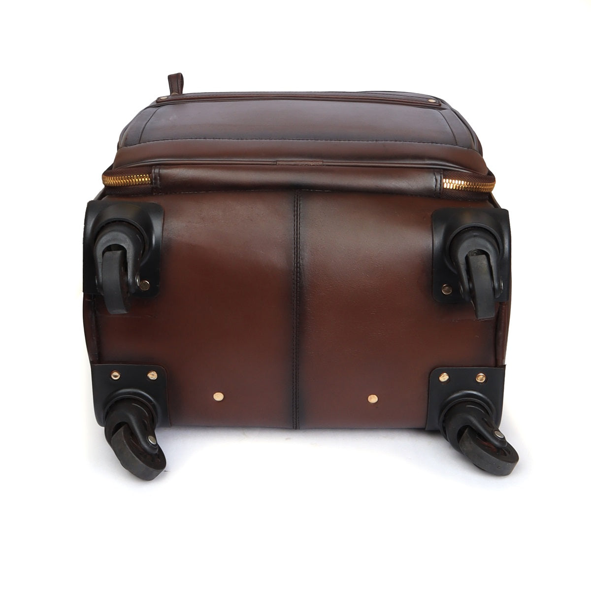 Dark Brown Quad Wheel Leather Strolley Travel Bag With Golden Zipper By Brune & Bareskin
