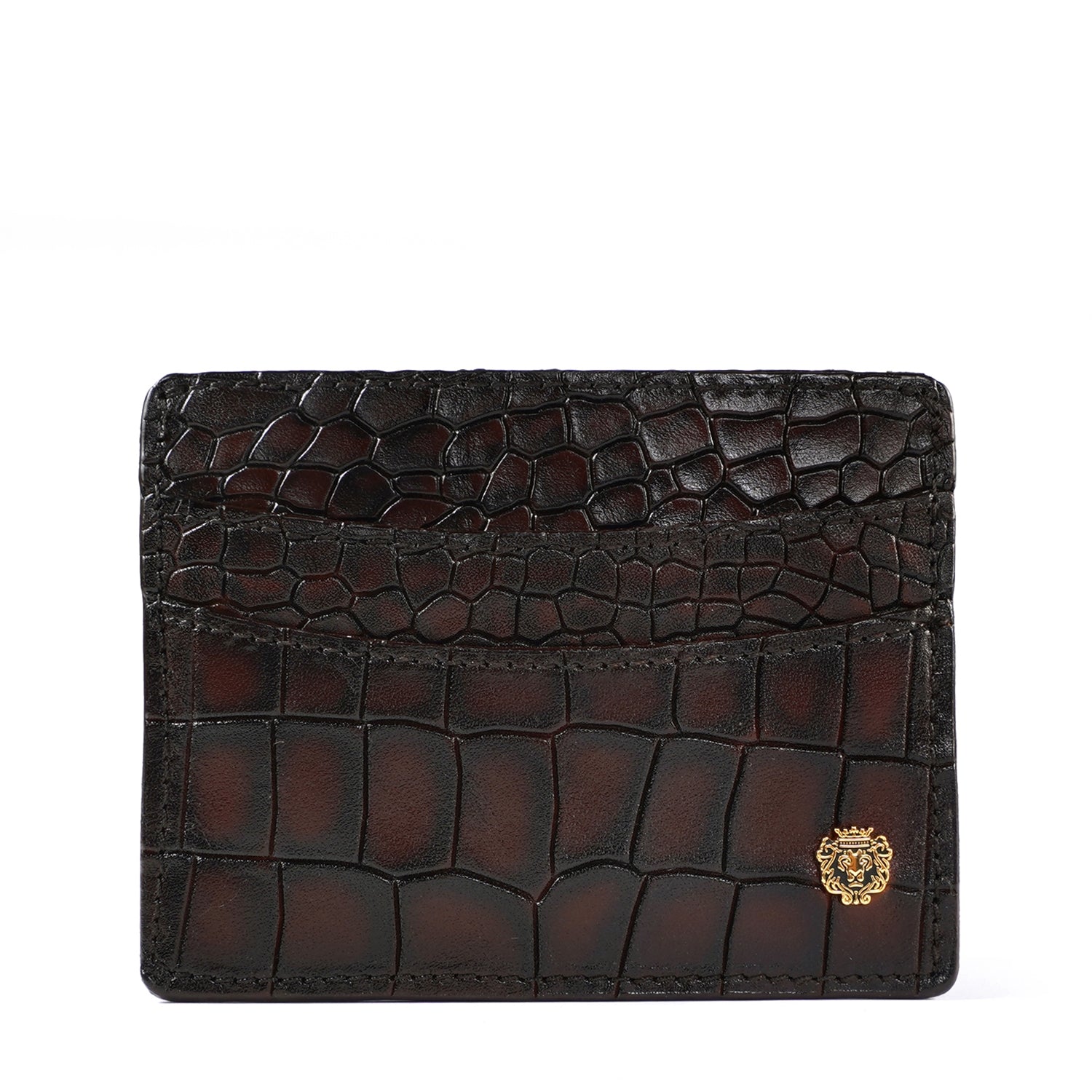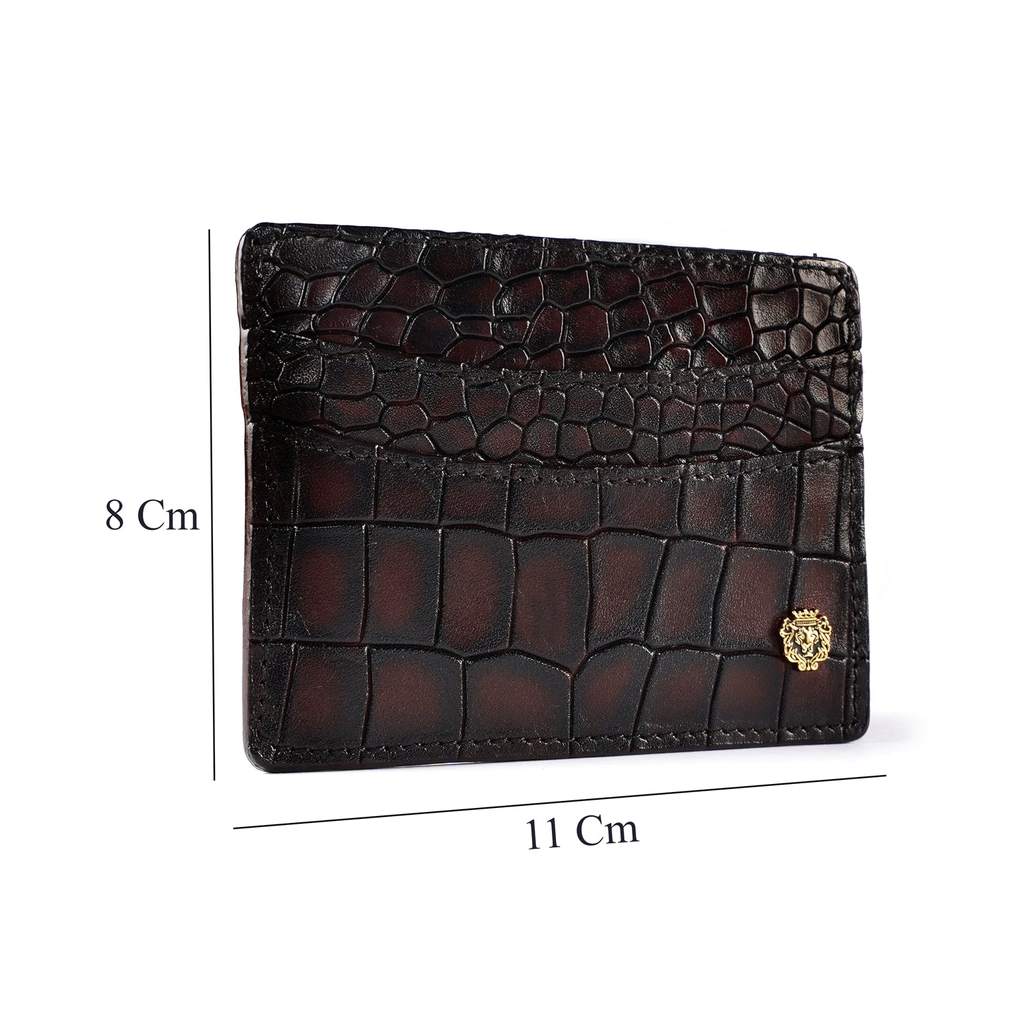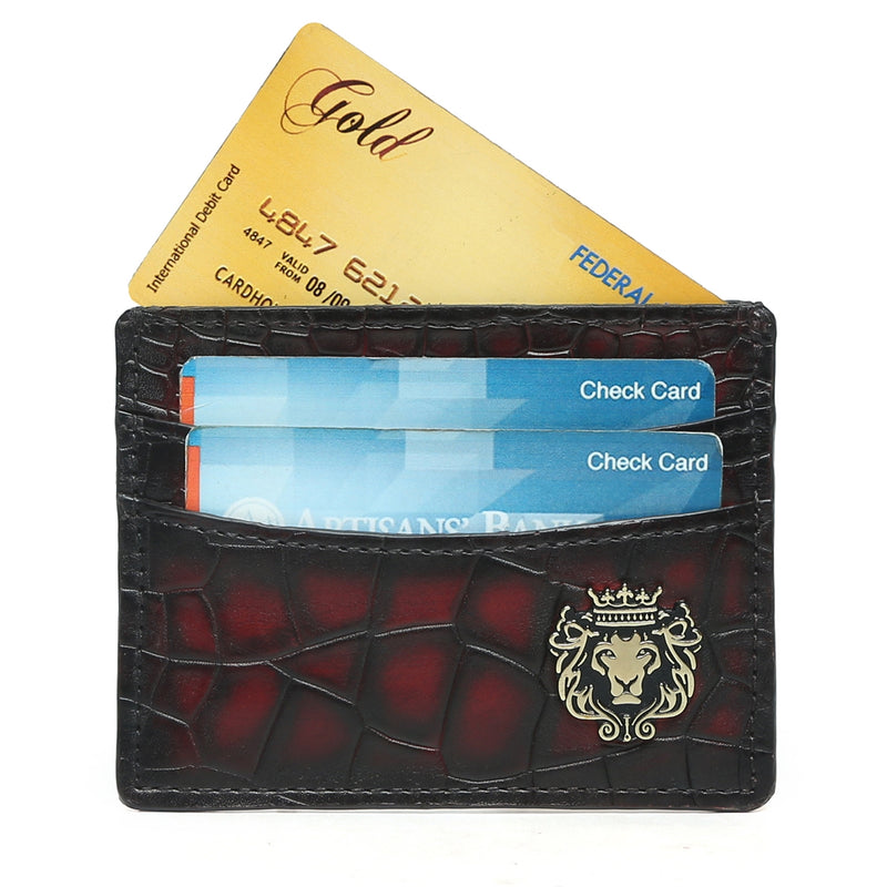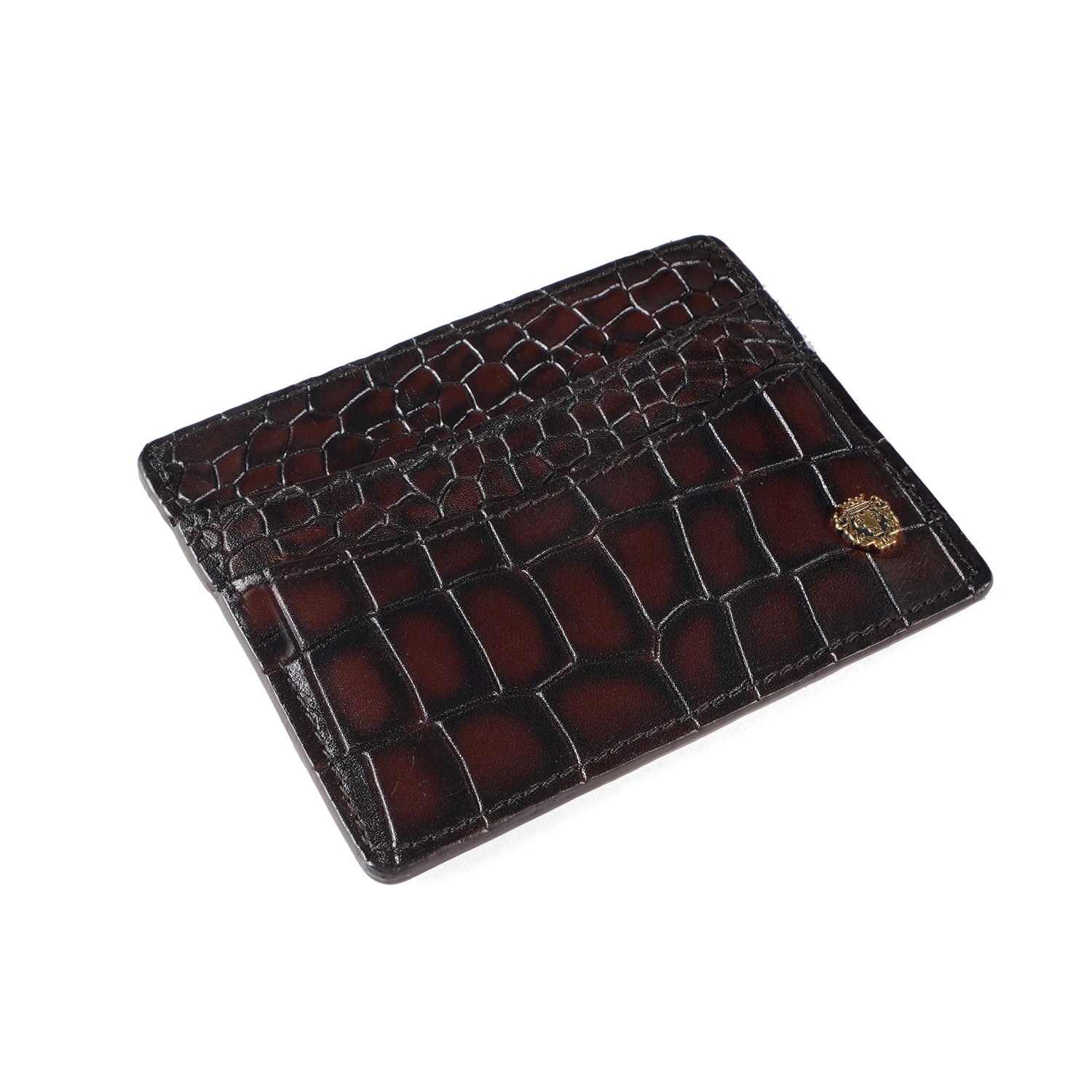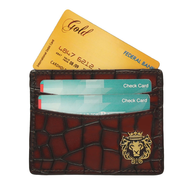 Smokey Patina Finish Card Holder in Dark Brown Deep Cut Croco Textured Leather by Brune & Bareskin
