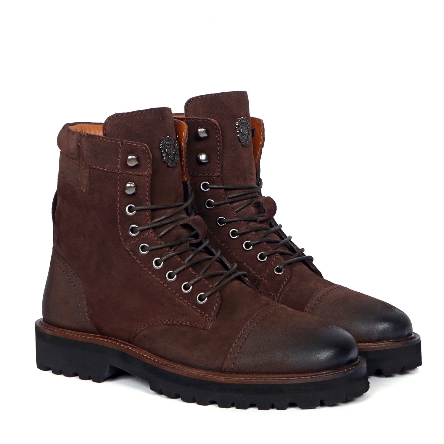 Dark Brown High Neck Biker Boot in Suede Leather Toe and Heal Cap by Brune & Bareskin