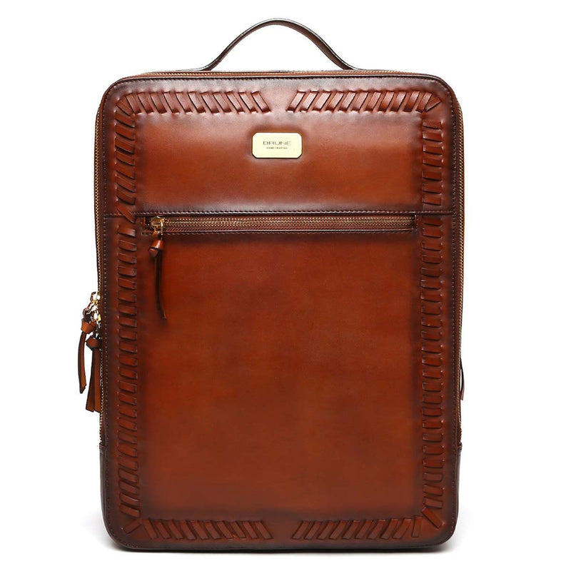 Dark Brown Weaved Stripes Leather Backpack By Brune & Bareskin