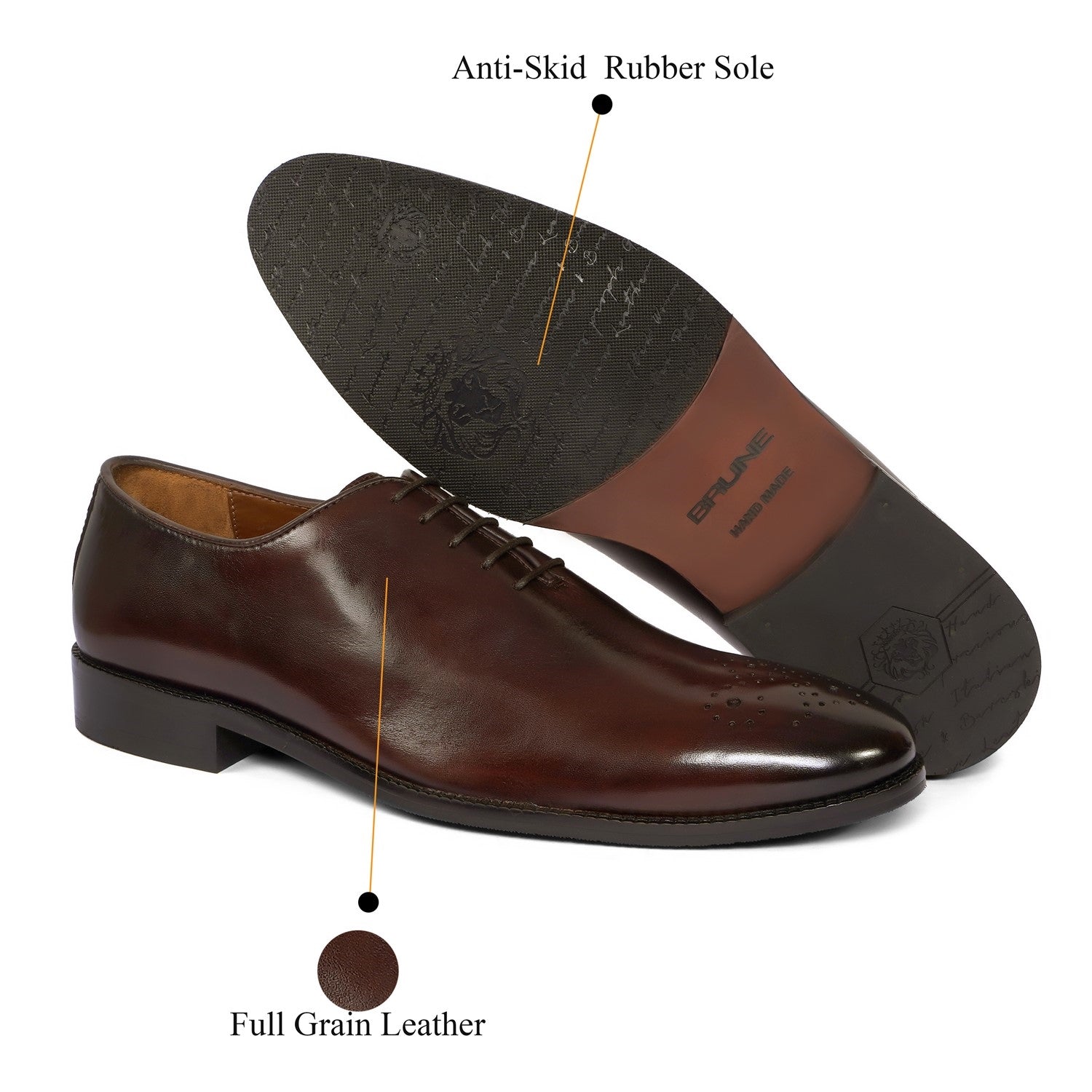 Whole Cut/One Piece Medallion Toe Dark Brown Oxford Lace-up Shoe