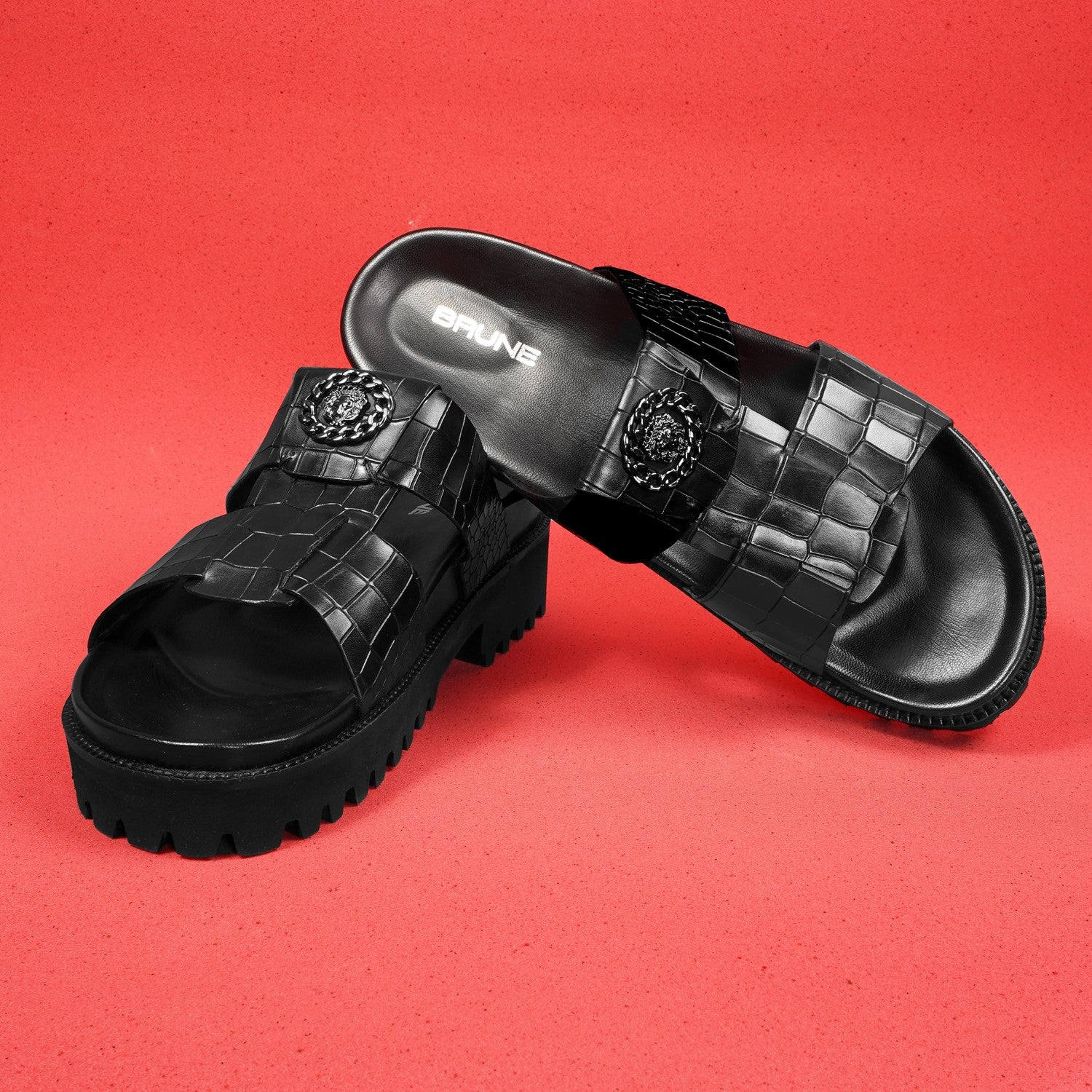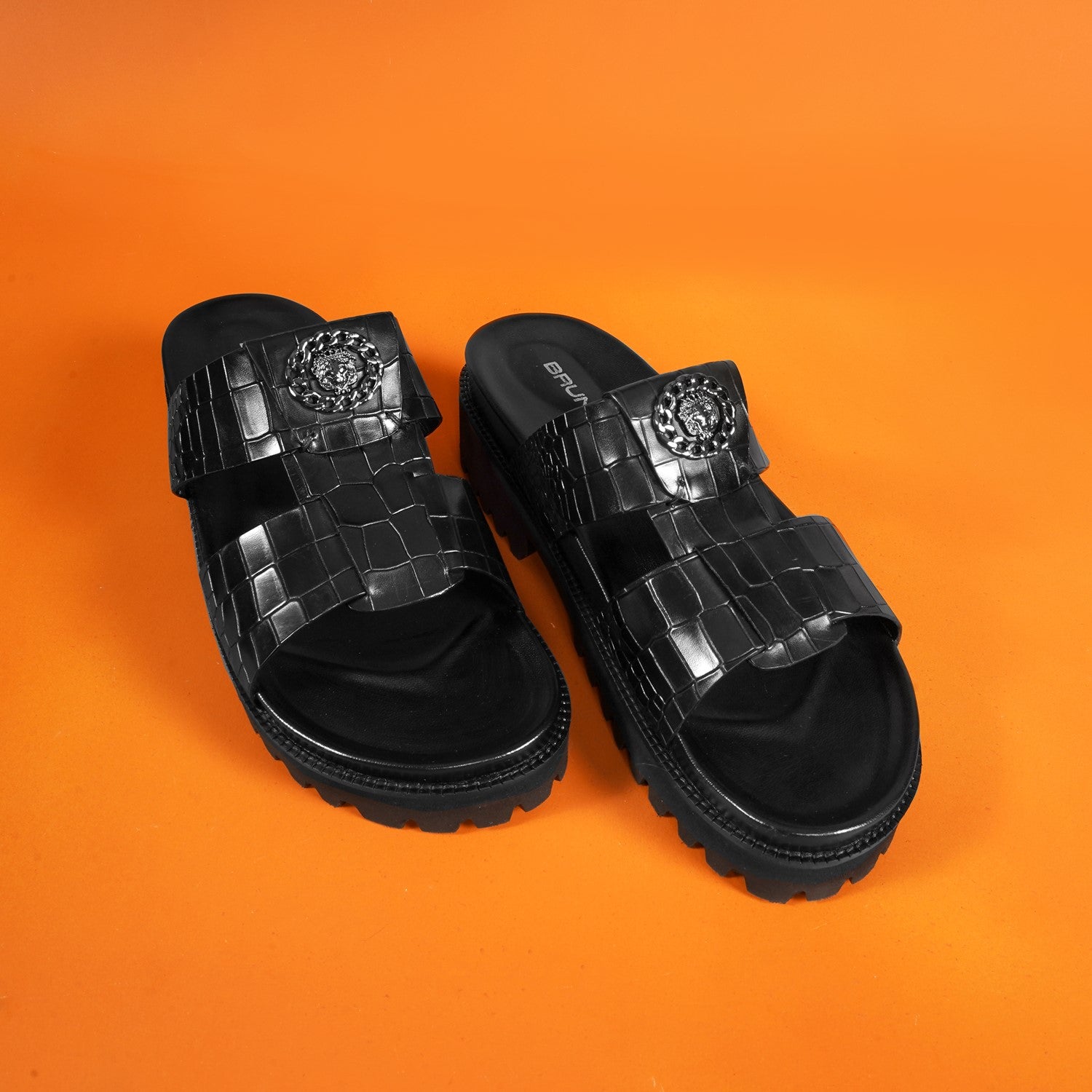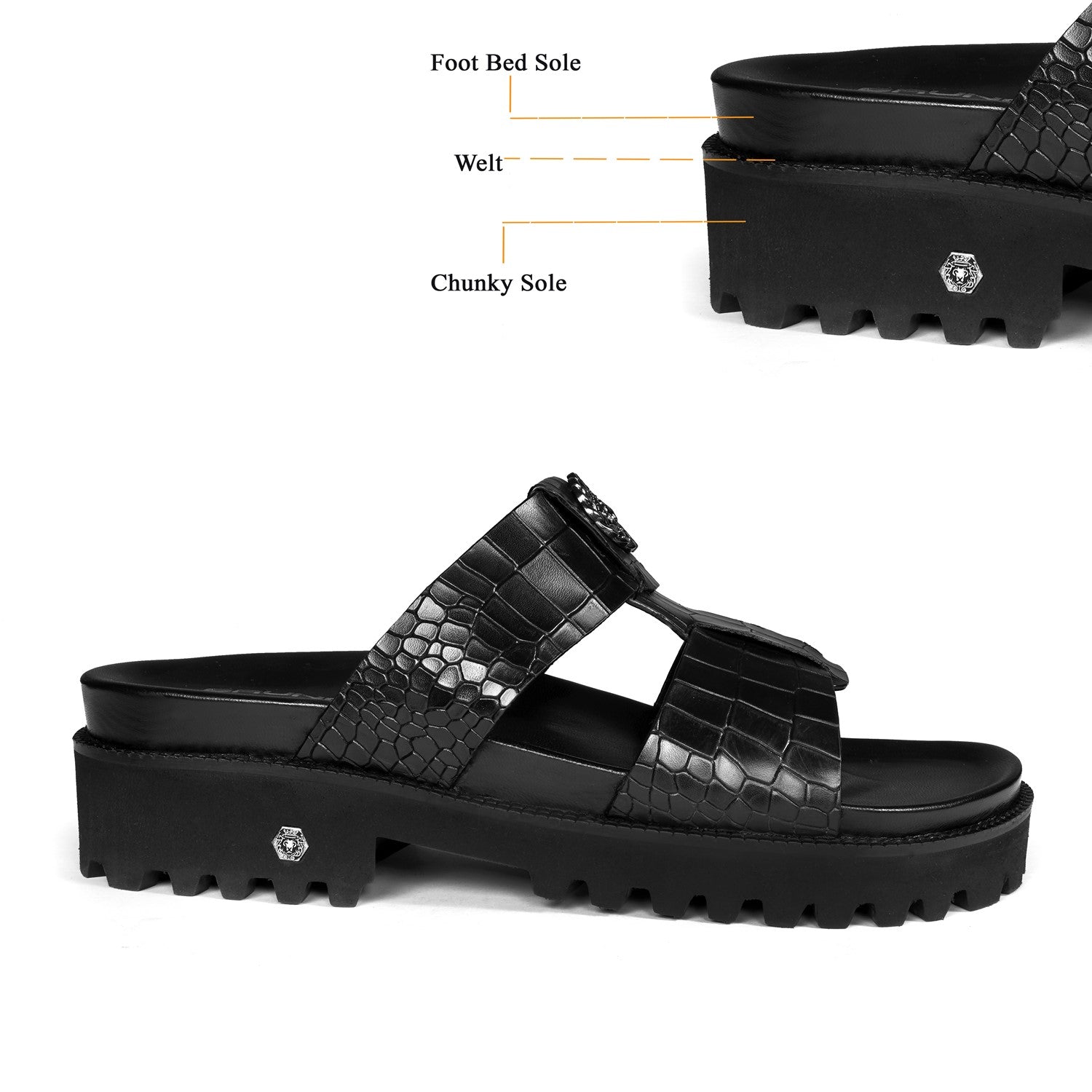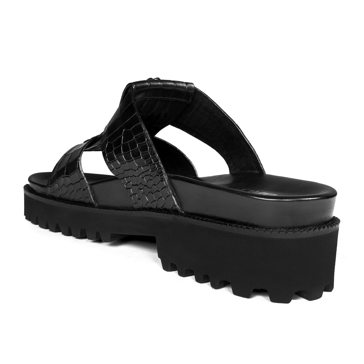 Deep Cut Croco Comfy Black Super Chunky Slide-in Slippers