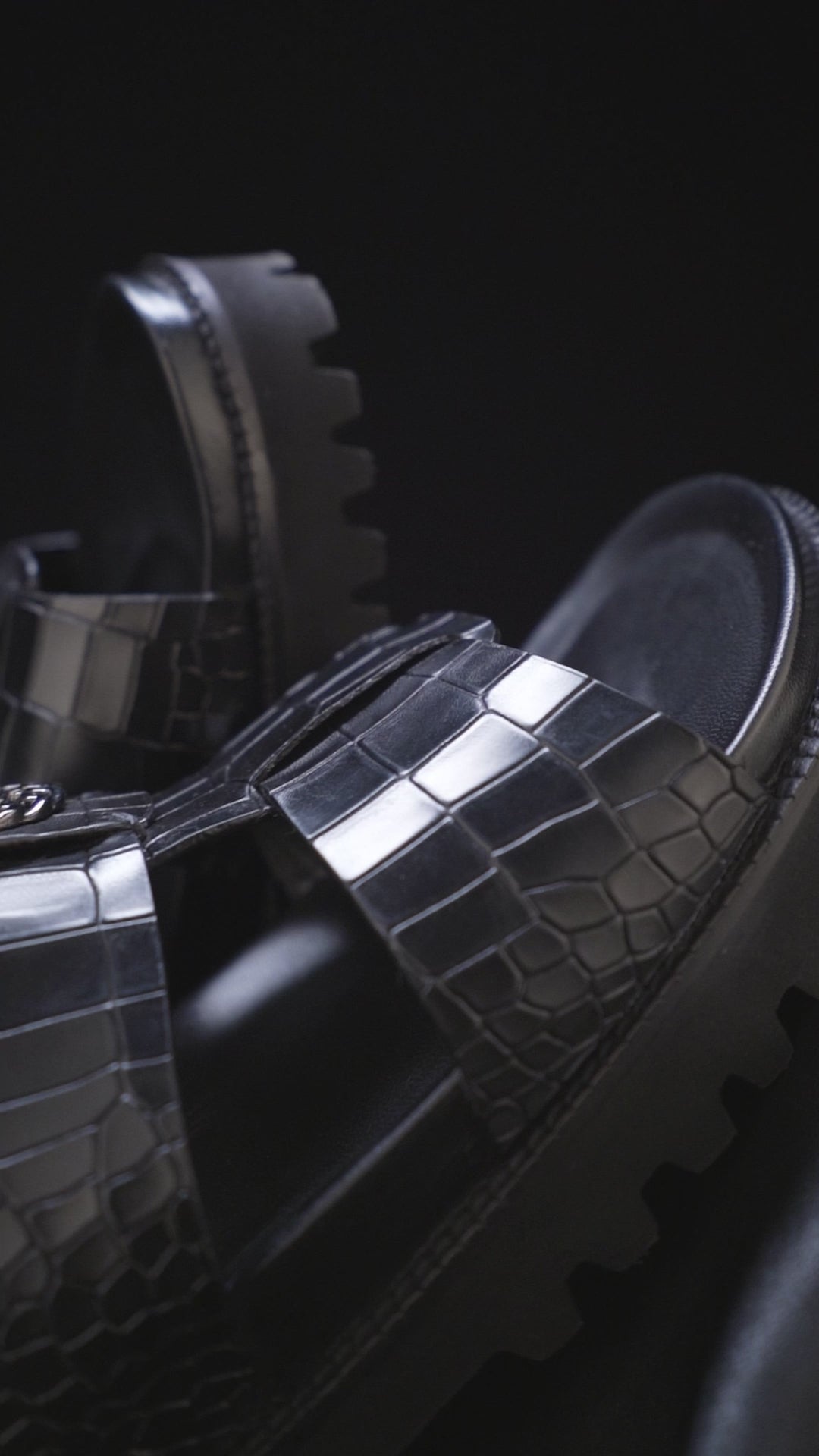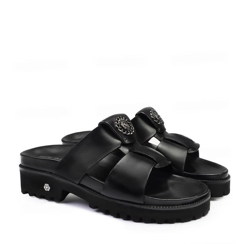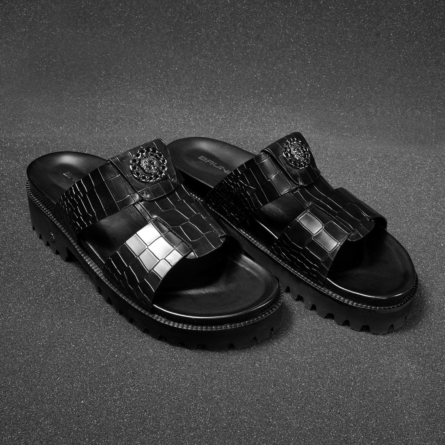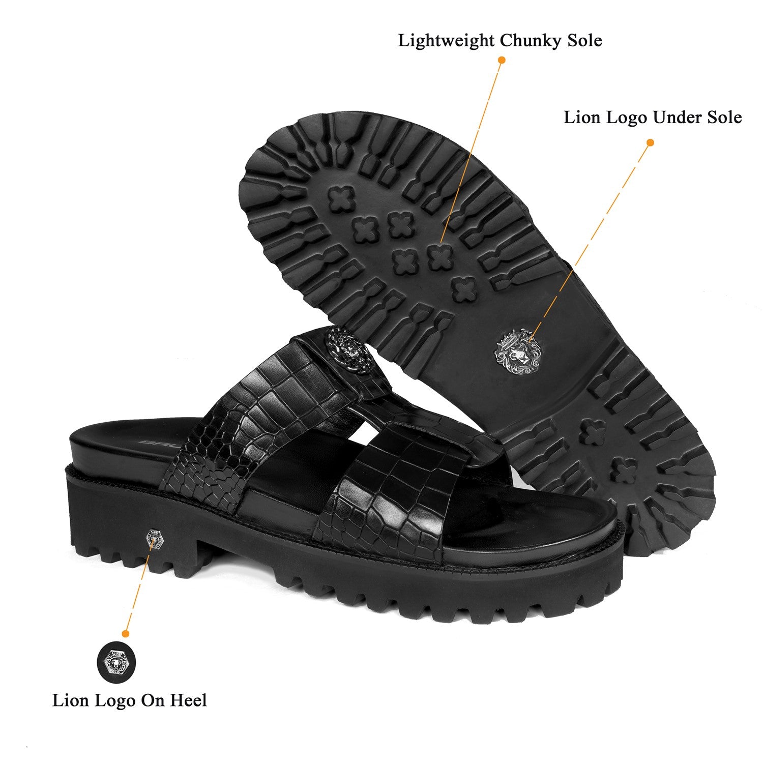 Deep Cut Croco Comfy Black Super Chunky Slide-in Slippers