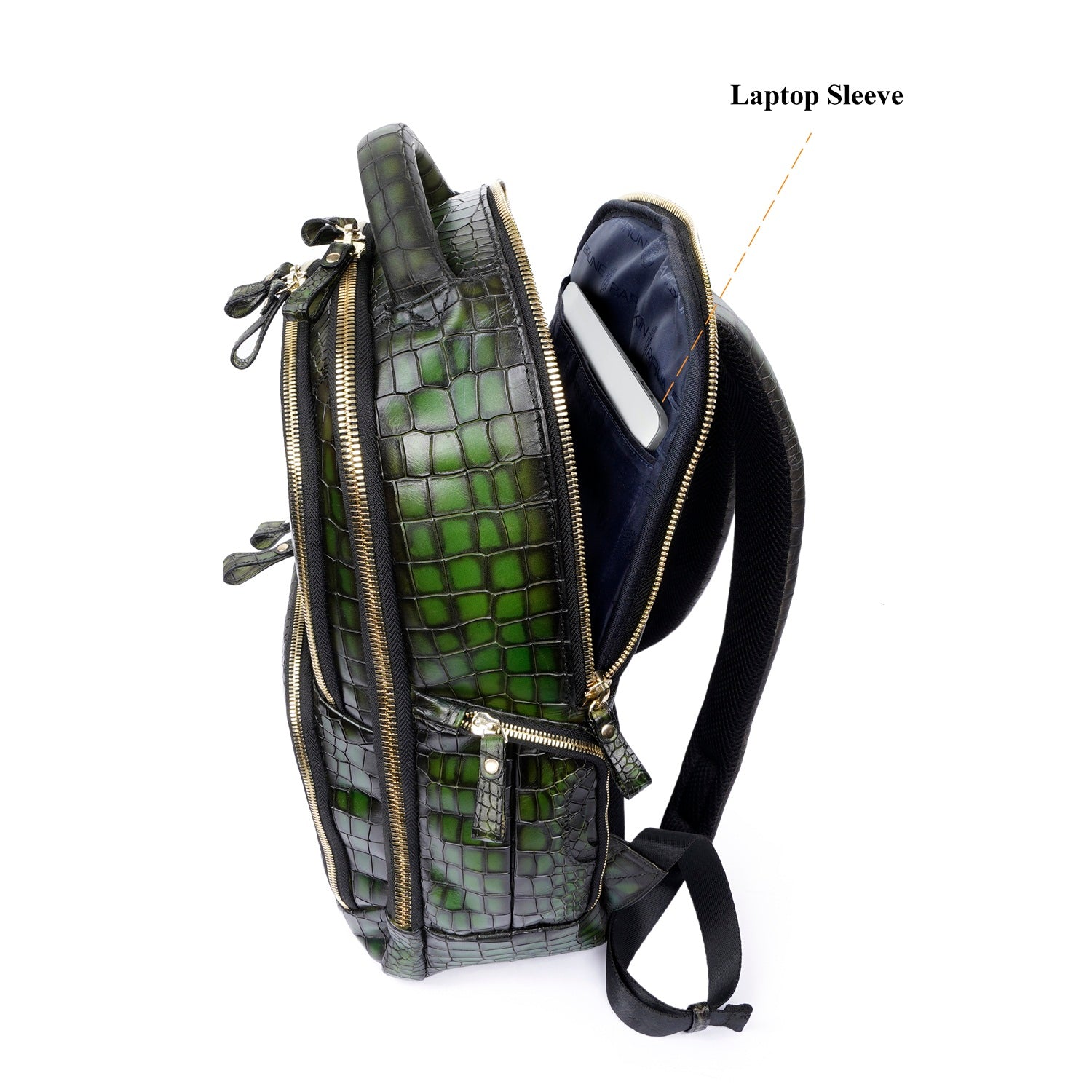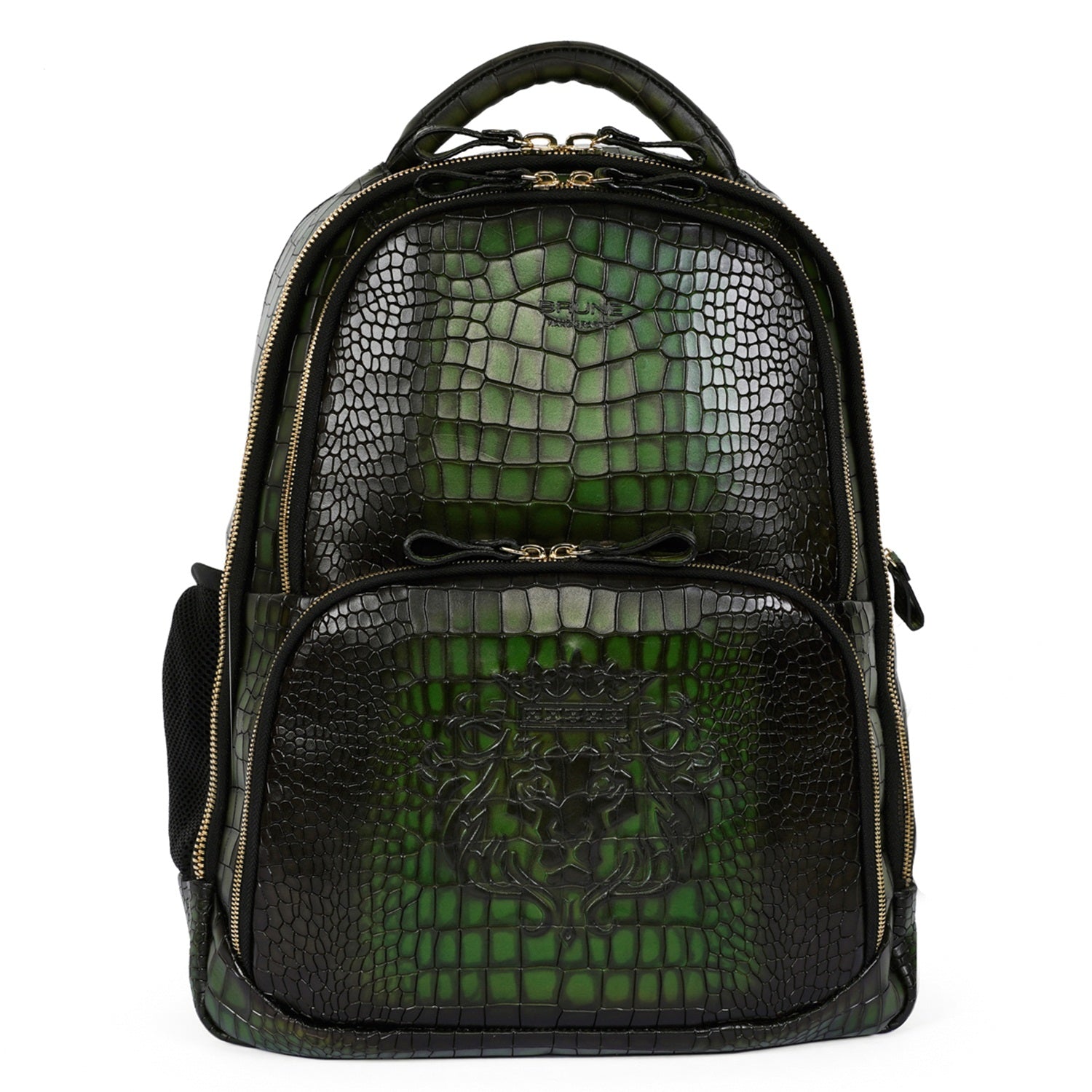 Deep Cut Croco Embossed Lion Green Leather Backpack