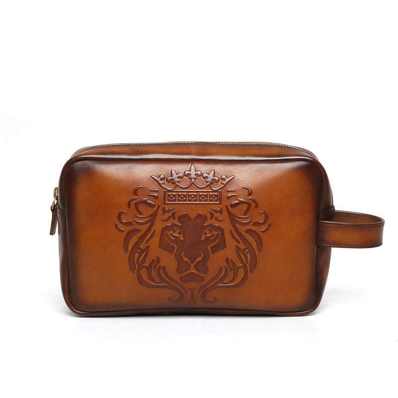 This Brune & Bareskin Deep Cut Dark Brown Leather Kit is a must-have for travelers. It provides easy access to all your essential items in a stylish and compact design. Crafted with premium quality deep cut genuine leather, this slim kit bag can be used in multiple and unique ways. A versatile and eye-catching accessory for any traveler.