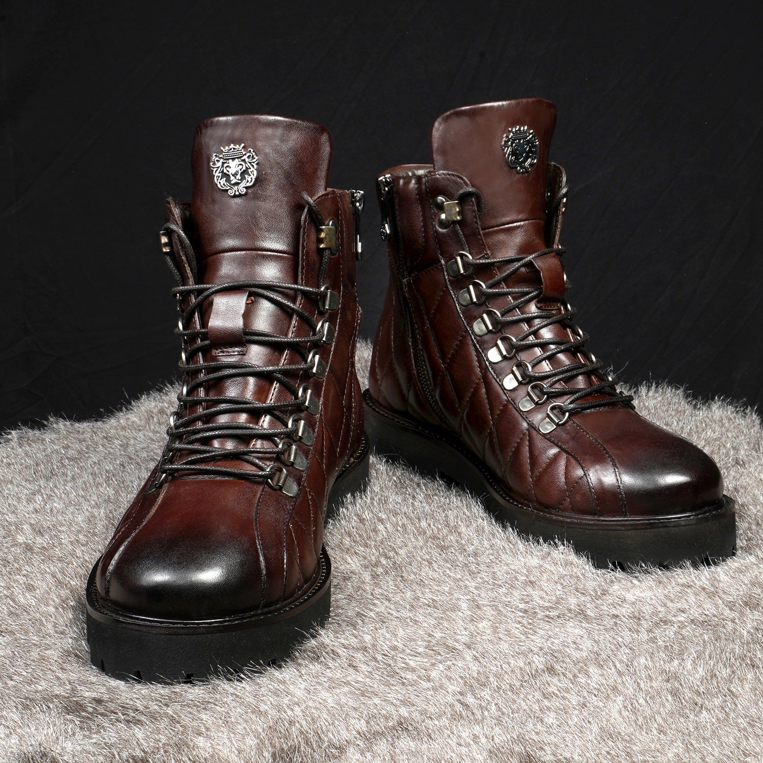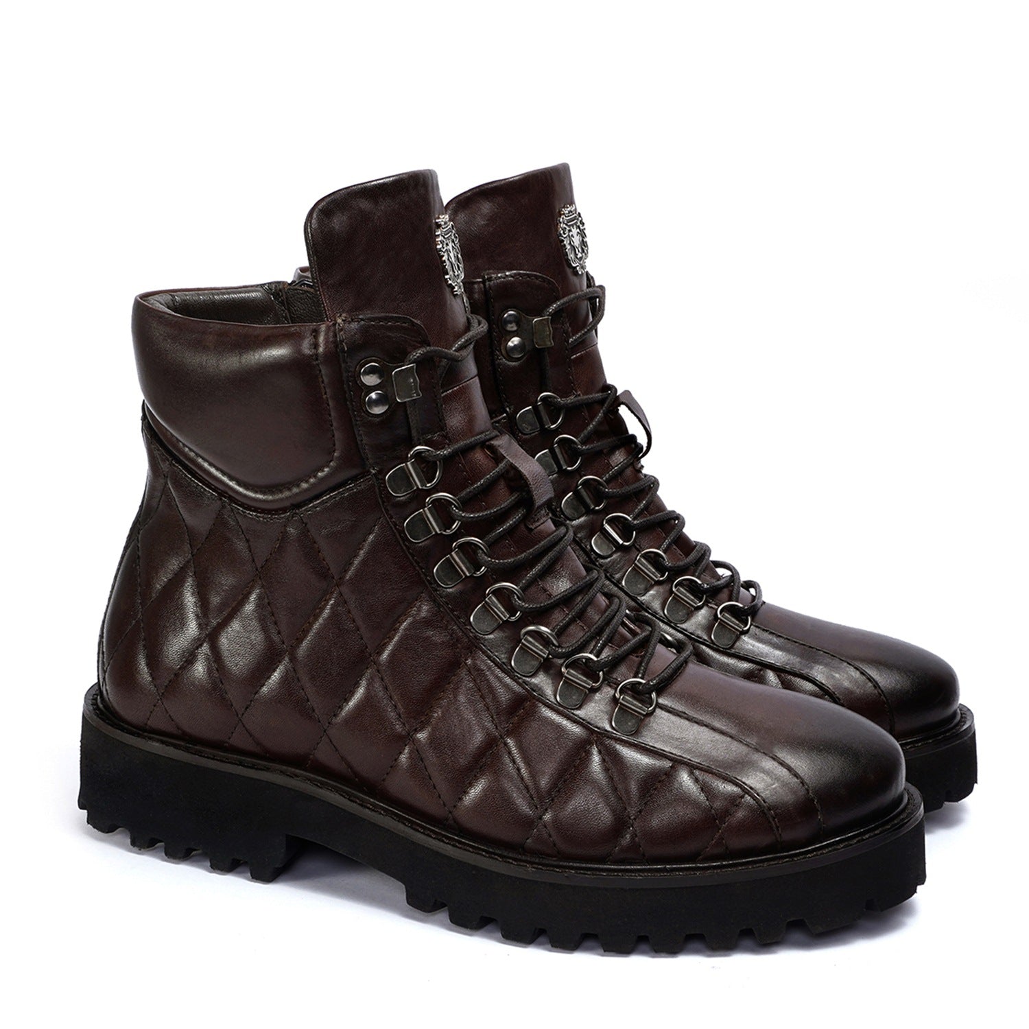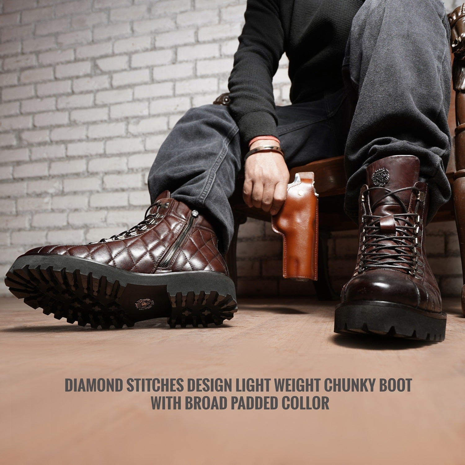 Diamond Stitch Light-Weight Brown Chunky Boot