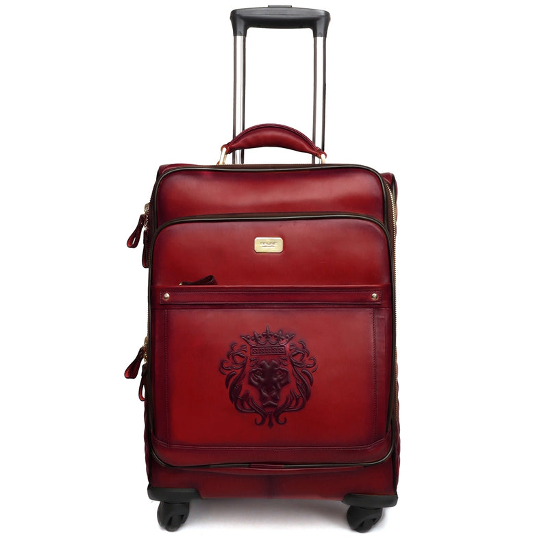 Diamond Stitched Grey Leather Quad Wheel Trolley Bag With Embossed Lion Logo by Brune & Bareskin