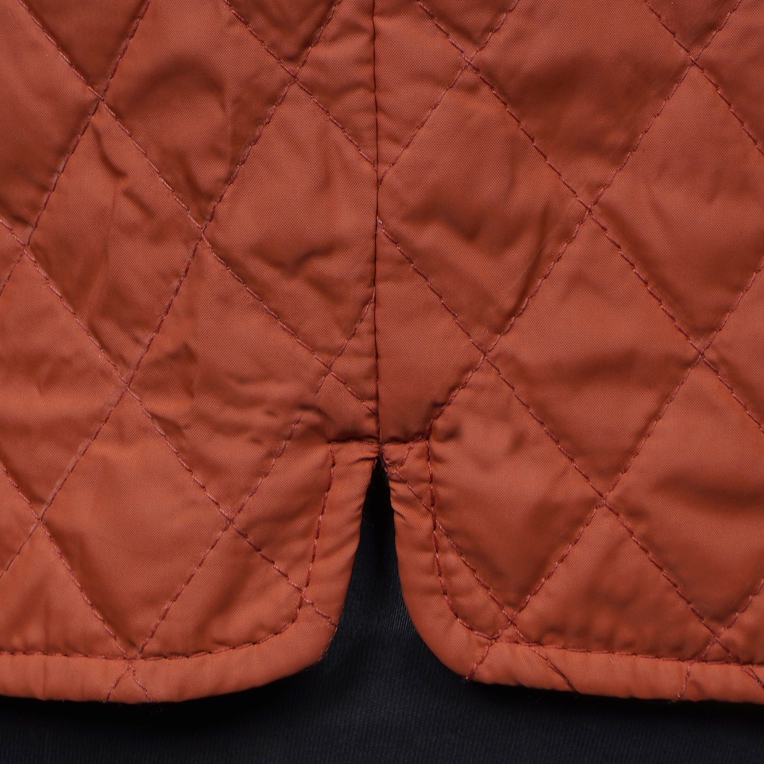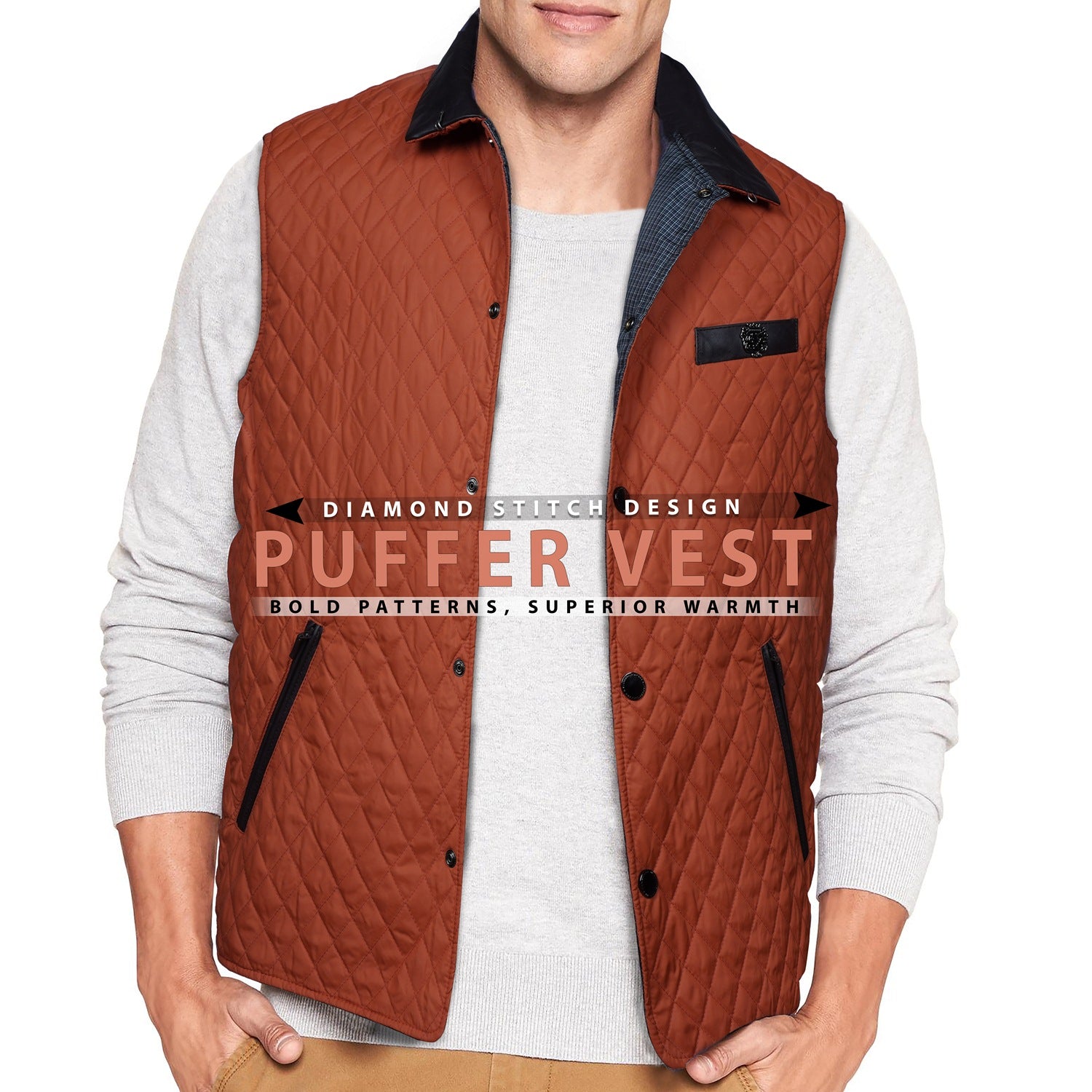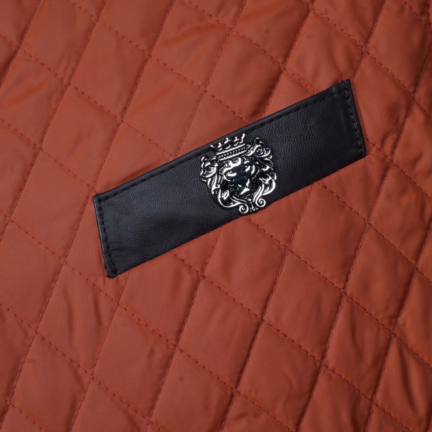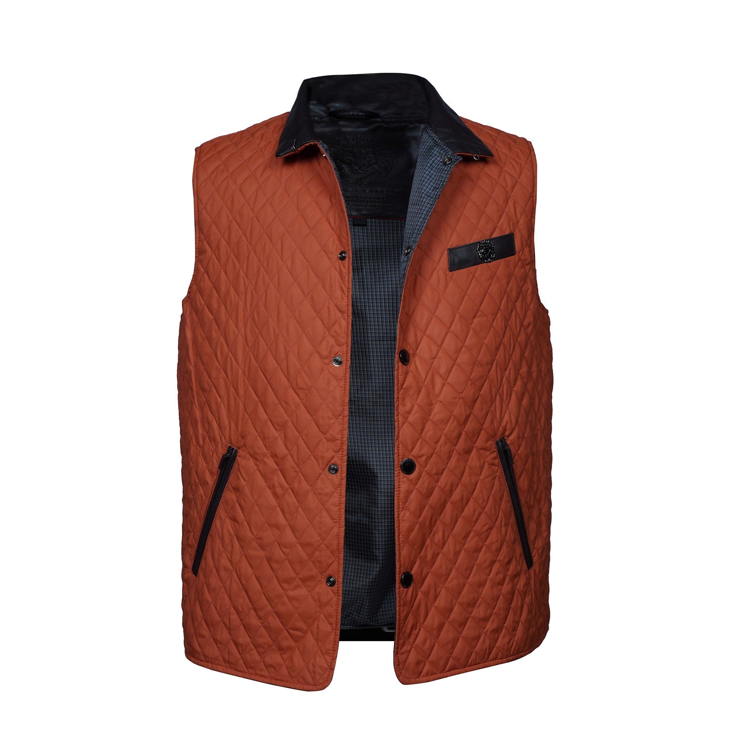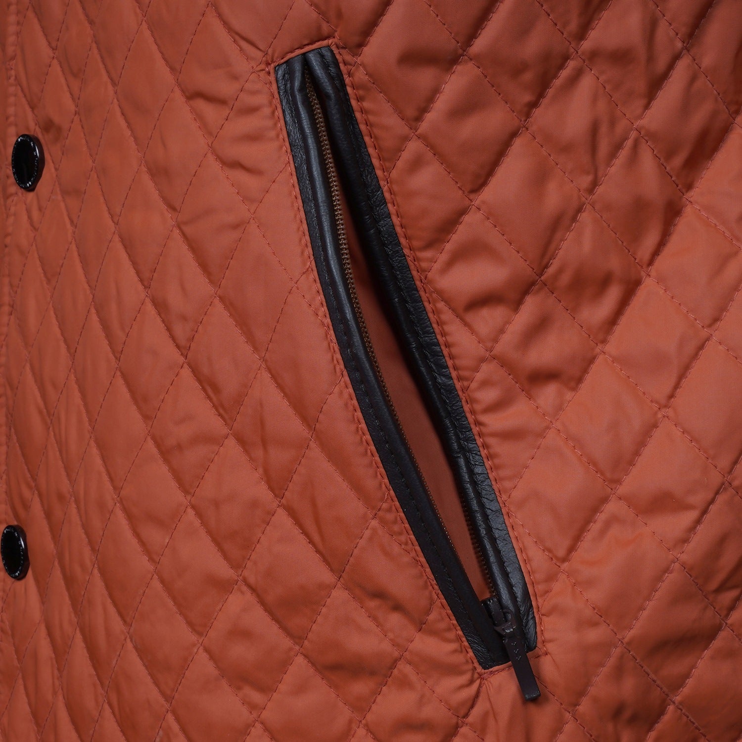 Diamond-Stitched Orange Puffer Vest with Leather Trimmed Collar