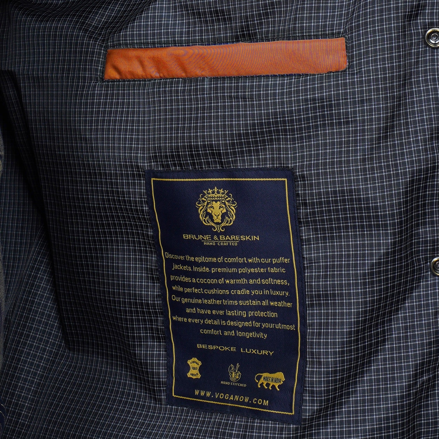 Featuring front snap-button closure for easy wear, it combines practicality with style—perfect for wearing open or closed. The slant pockets on the front further elevate the look, while Brune & Bareskin’s signature metal lion logo adds a mark of elegance and exclusivity.