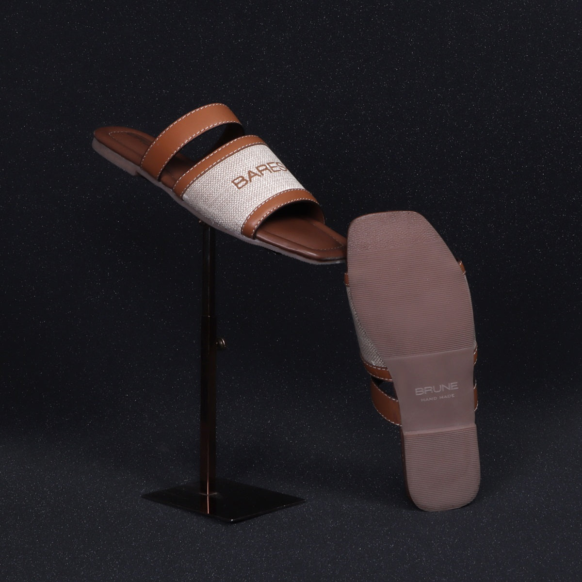 Step out in style this season with these exquisite double band slippers from Brune & Bareskin. These timelessly chic slippers are designed with the highest quality of leather and fabric for a smooth, luxurious feel, with a leather sole and double stitching to provide both comfort and support. This slipper is entirely handcrafted by our expertise. The raised logo lettering on the strap adds a subtle yet stylish finishing touch, and the square toe allows for an effortless fit. Look and feel like a fashionista while walking in these super soft, sophisticated slippers. What are you waiting for? You can click on CUSTOMIZE NOW Button (Just above the "ADD TO CART" button) & fill out the form to submit your customization requirements. Or you can reach us by Call, Email, What's App, and DM.