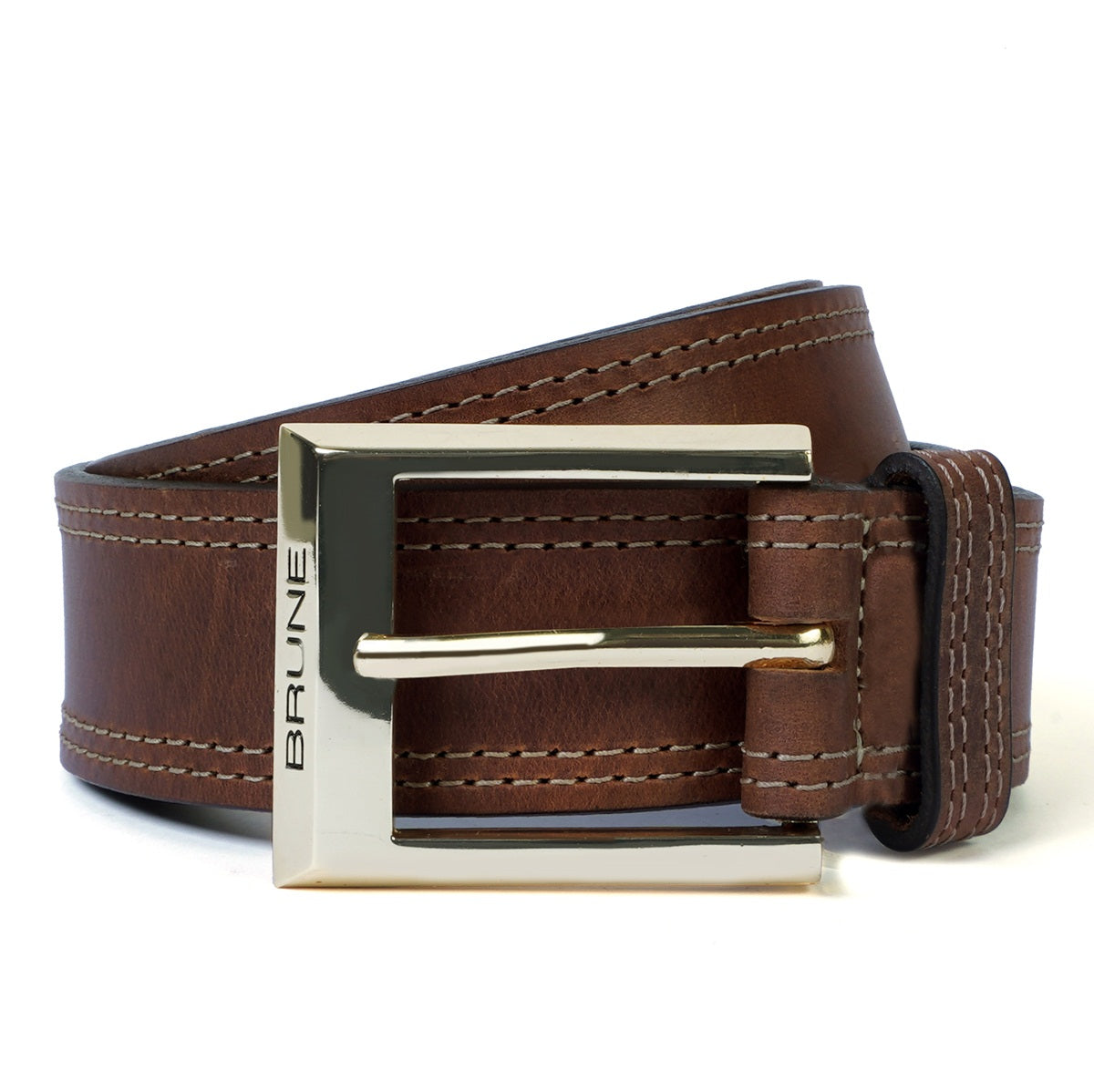 Double Stitched Detailing Belt in Genuine Brown Leather