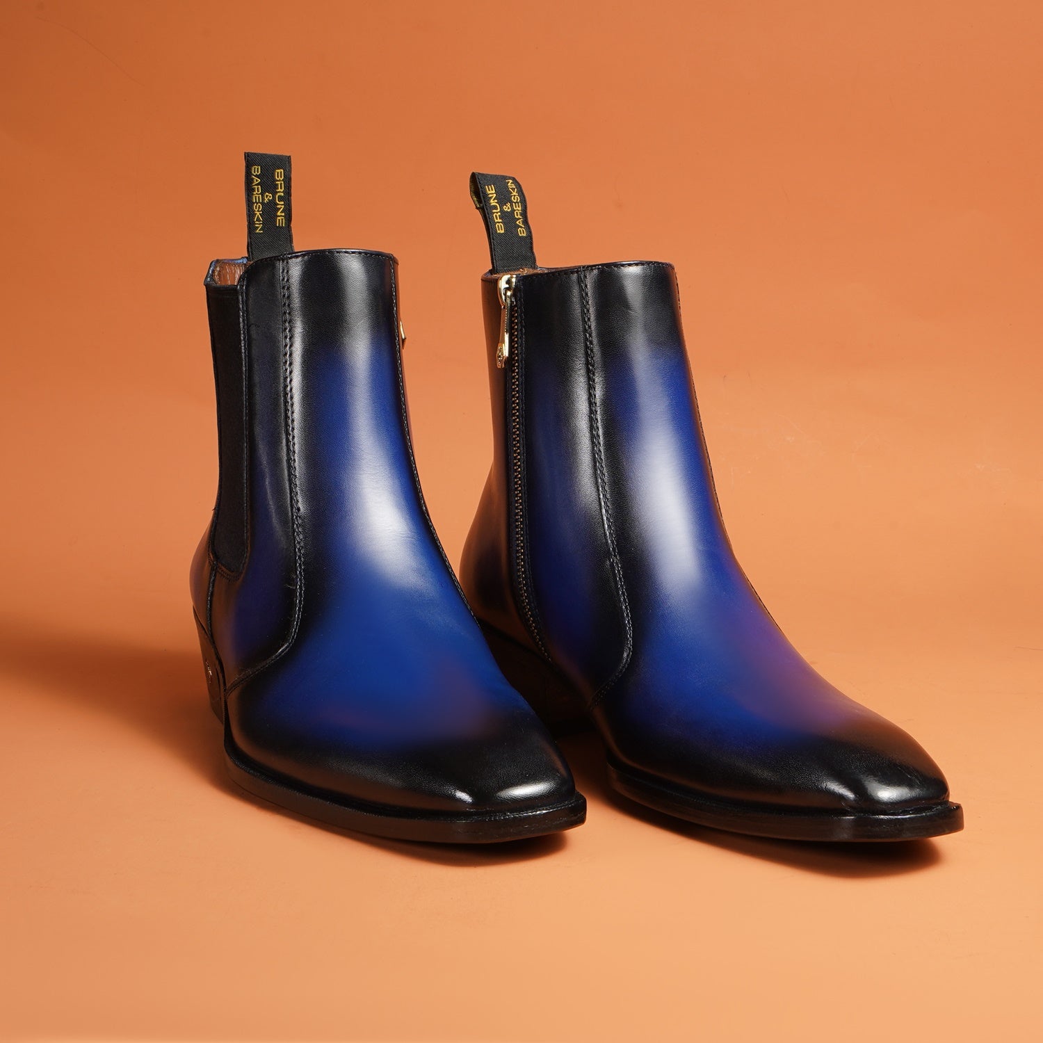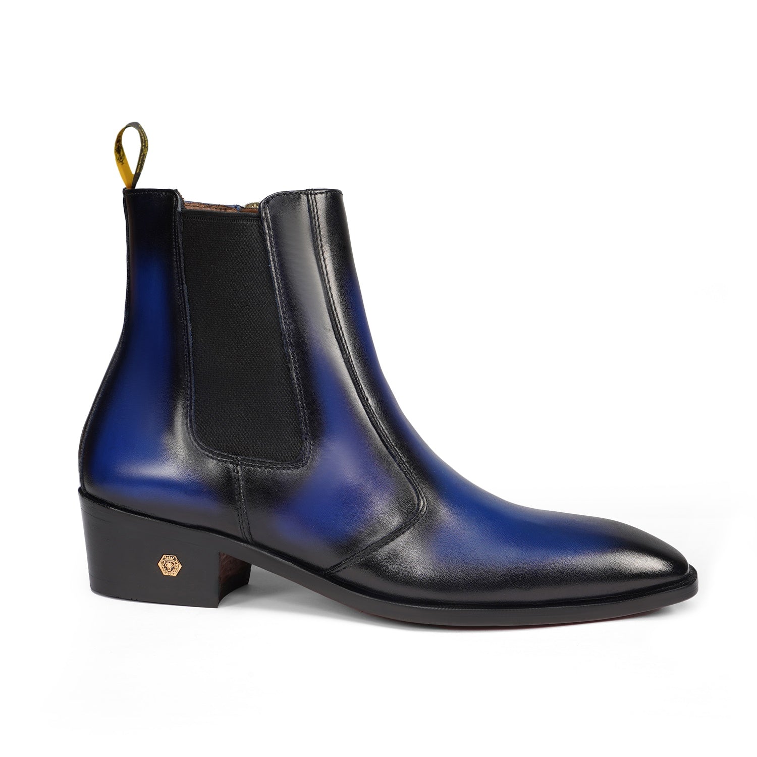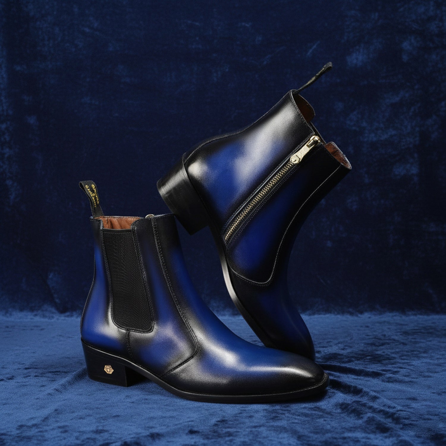 Dual Shade Blue & Black Leather Chelsea Boots with Zip Closure