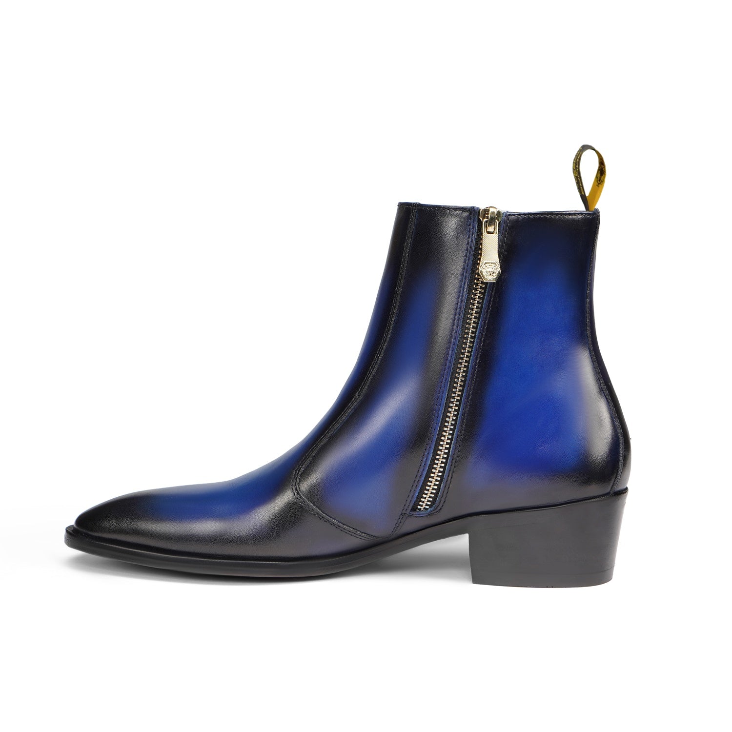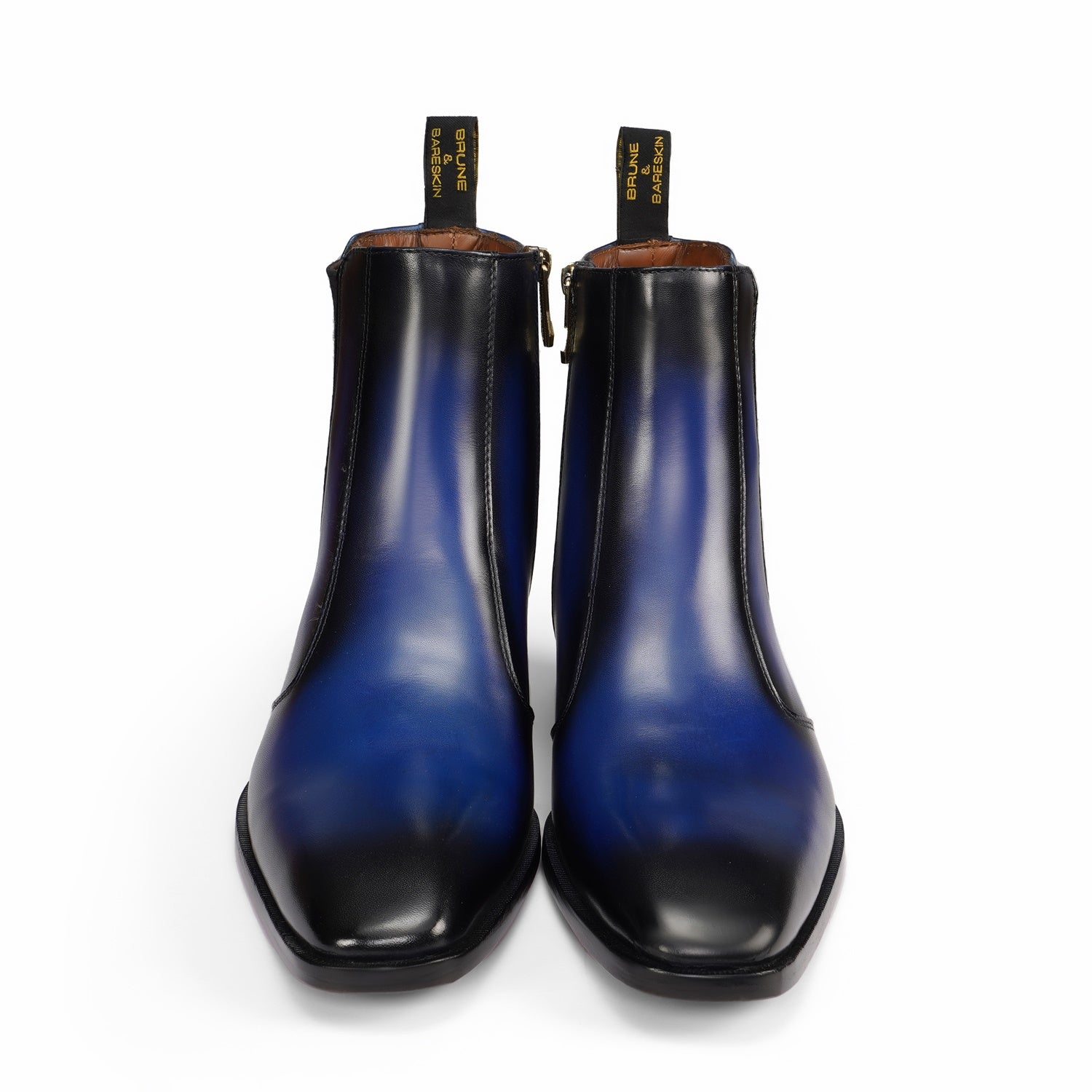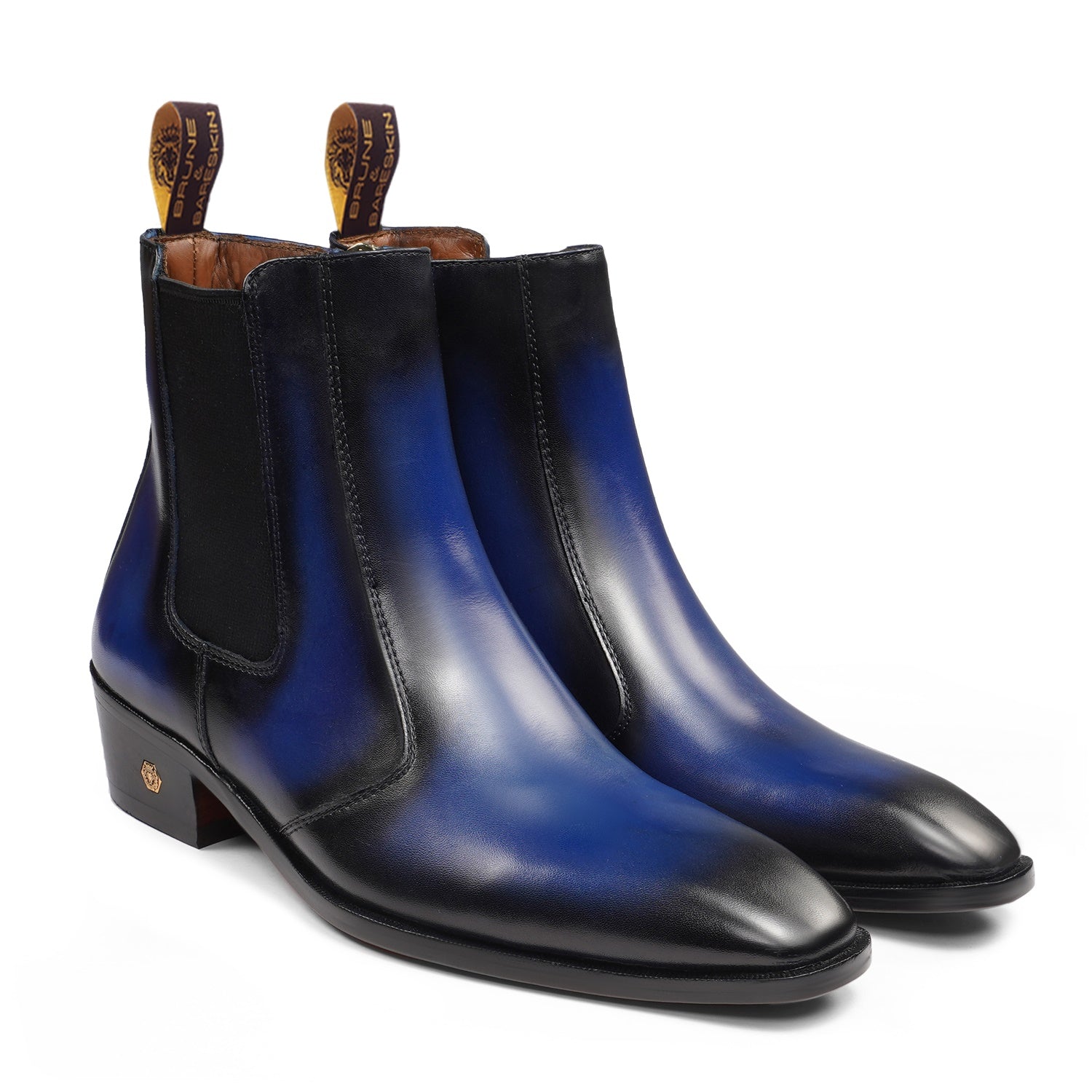 Dual Shade Blue & Black Leather Chelsea Boots with Zip Closure