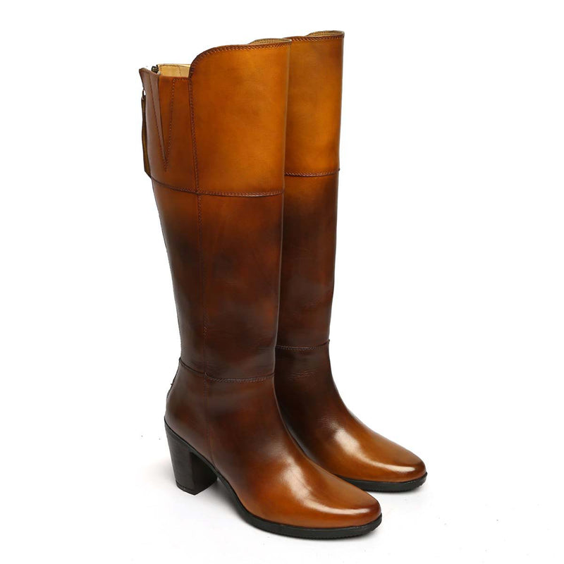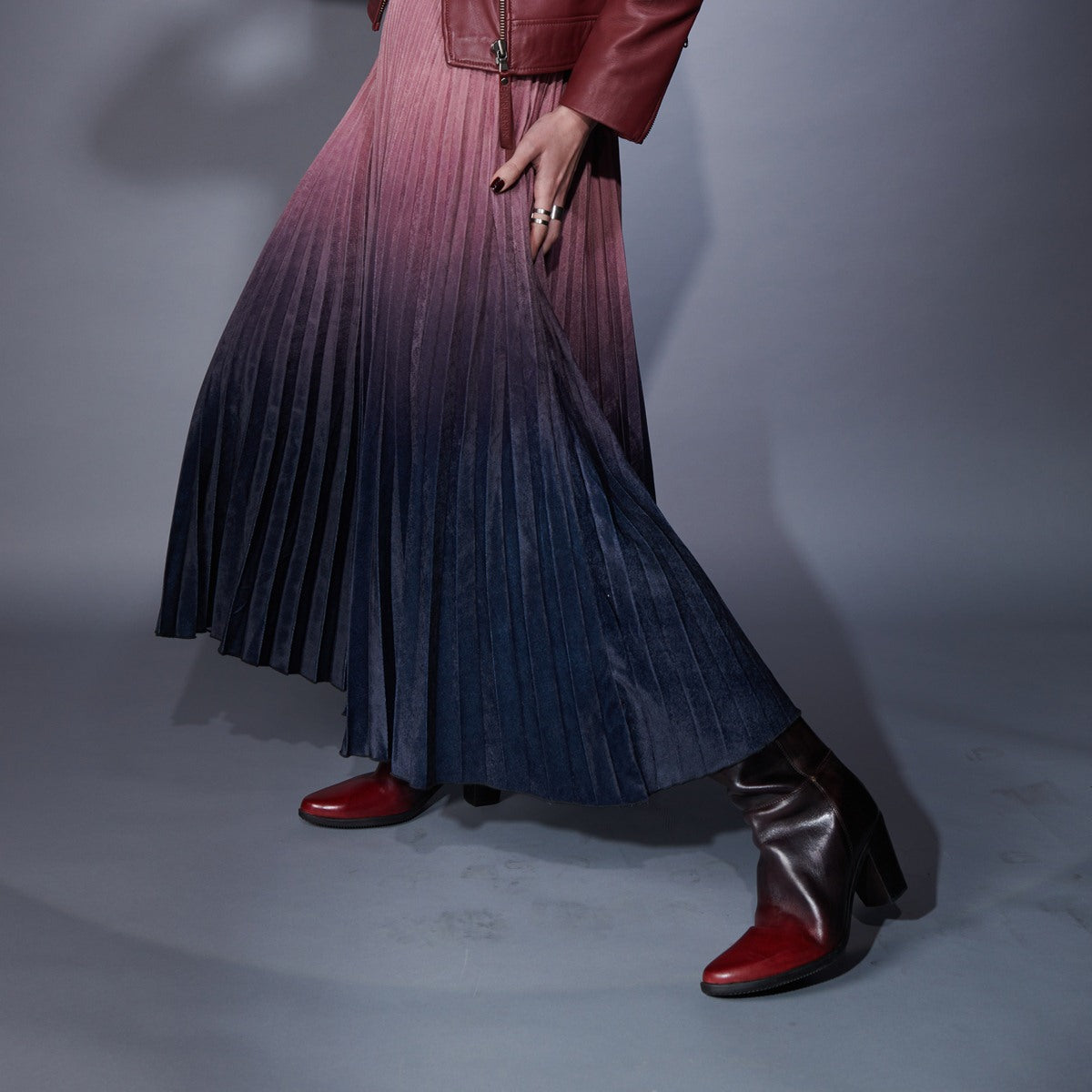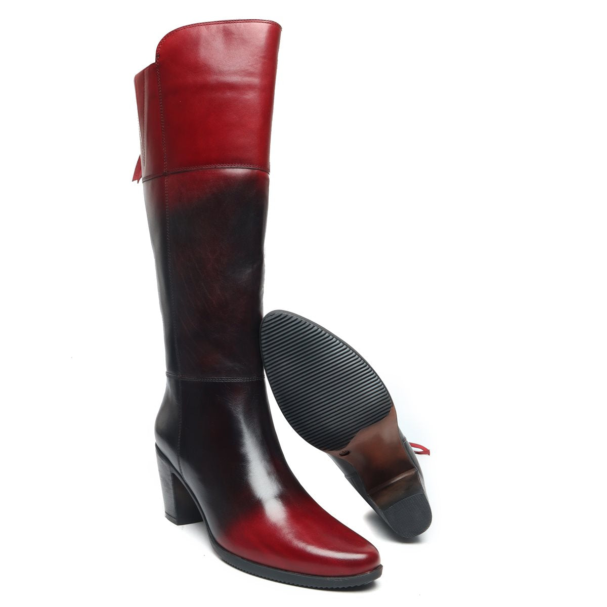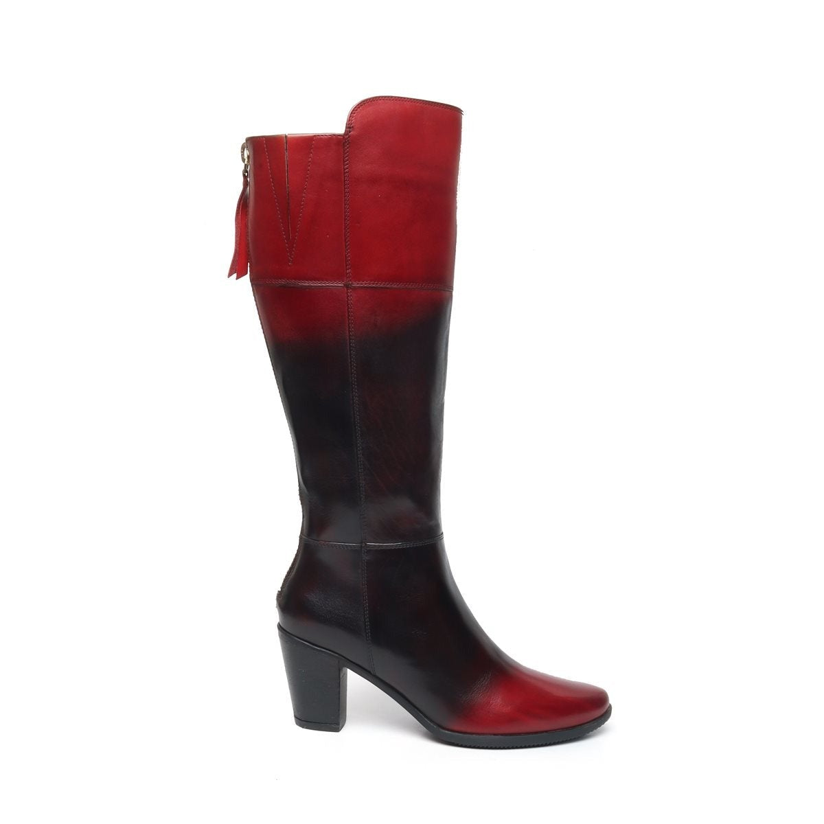 Knee Height Blocked Heel Boots with Dual Tone Black-Wine Genuine Leather By Brune & Bareskin
