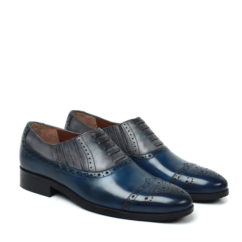 Dual Tone Grey Red Lazy Man Stylish Wingtip Punching Brogues with Fixed Lace Oxfords by Brune & Bareskin
