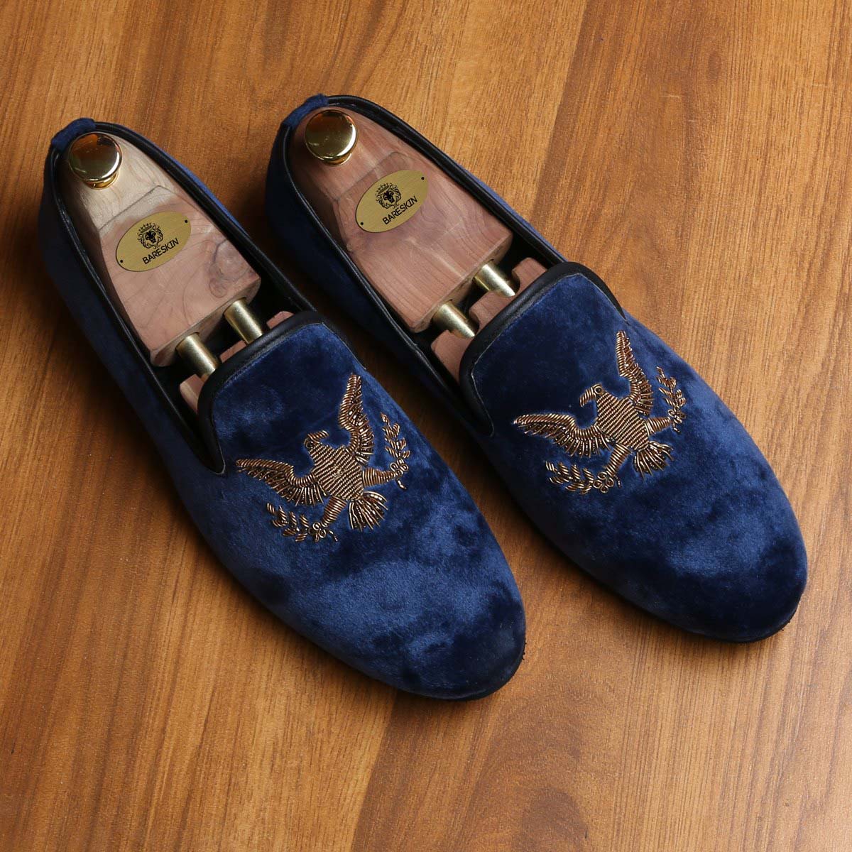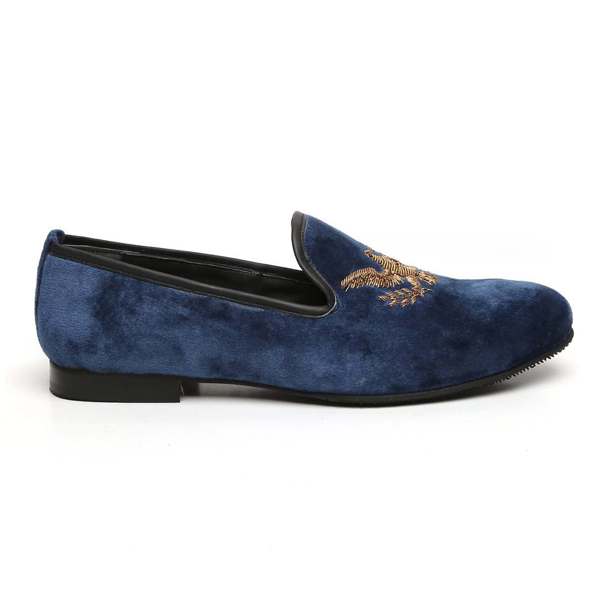 Eagle Zardosi Navy Italian Velvet Slip-On By Brune & Bareskin