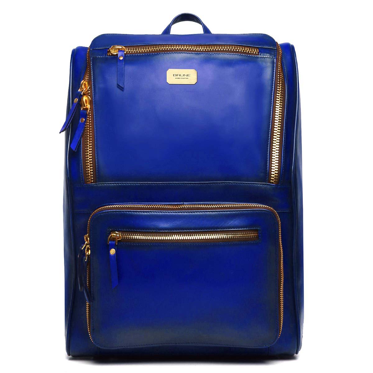 This is a very chic leather laptop backpack by BRUNE & BARESKIN. The Italian leather provides the mod look rigid Bag. The different size multi-pockets are there to carry the essentials for you. It has three main pockets at the front and an easy access pocket at the back. At back it also features a padded strap to attach this with trolley easily. Padded shoulder straps feel very comfortable while carrying this on the shoulders. It has a large easy access main compartment which includes a dedicated padded laptop sleeve. You can get this very stylish backpack in different color of leather. Also, you can use our bespoke services to get your Name Initials in this and other products on the site.