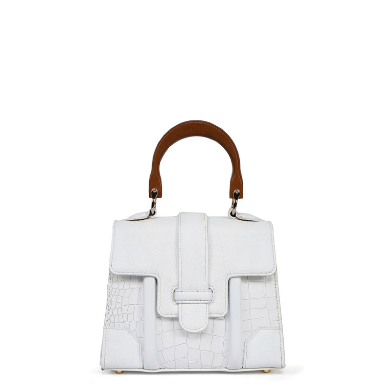 Elevate your style with this premium leather handbag, featuring a striking croco texture that adds a luxurious and contemporary flair. Crafted from high-quality leather, this bag is designed to be both durable and stylish. The wooden handle offers a unique, natural touch, perfectly complementing the elegant design. Equipped with golden rivet studs for added durability, the bag includes a spacious main compartment and an inside zipper pocket to keep your belongings organized. This versatile handbag is the ideal choice for both formal events and casual outings.