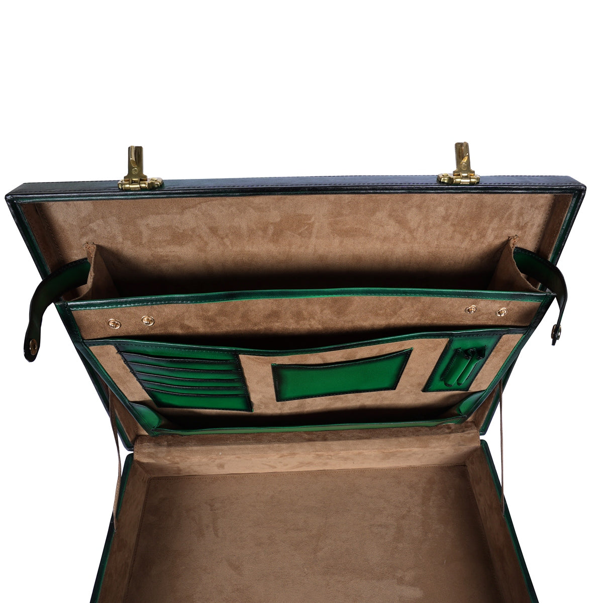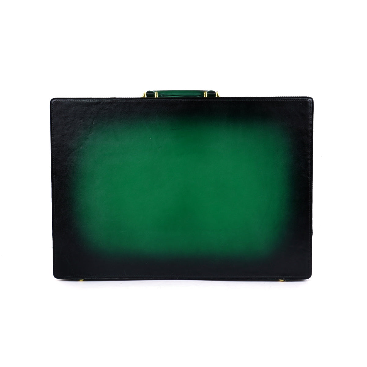 Hand Painted Office Briefcase in Green Leather Hard Case