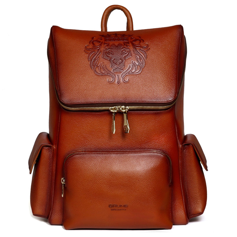 It's a Black Leather Backpack in Deep Cut Croco Textured leather with Embossed lion logo on it. A large top zip opening pocket provides the essential space to carry your on-the-go things. Top zip opening compartment makes it very easy to pack and unpack your whole stuff and 2 small flop-over side pockets to carry any Small accessories. The multi-pockets help the easy access while travelling. This is a perfect accessory for a perfect airport look too. Its different design enhancing the royalty of the product. Padded straps and back make it very comfortable while carrying on shoulders.