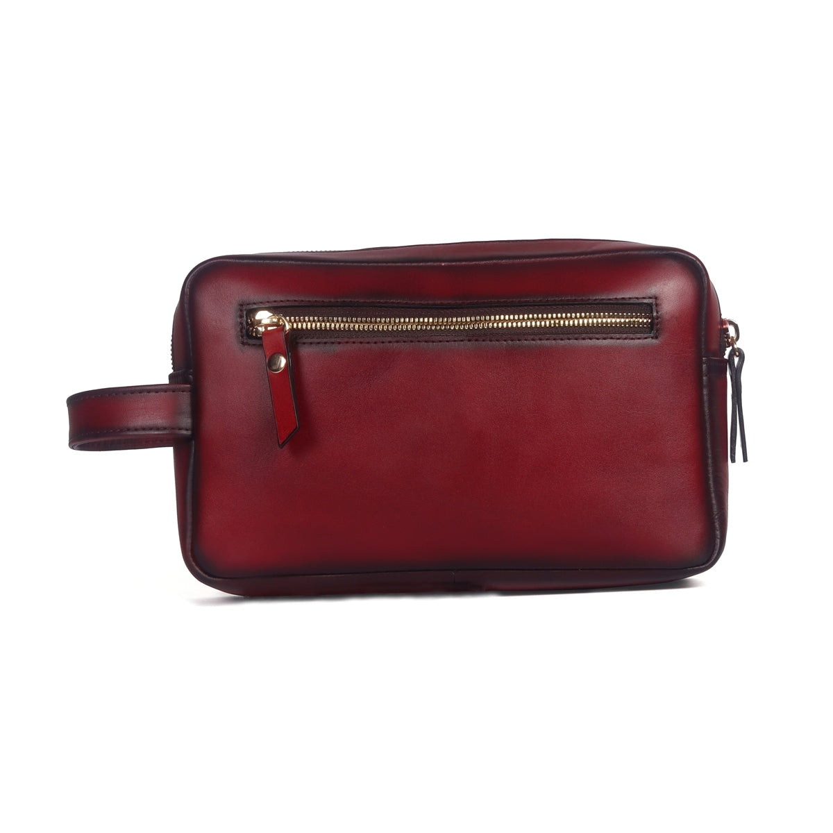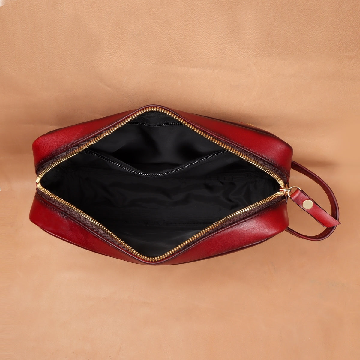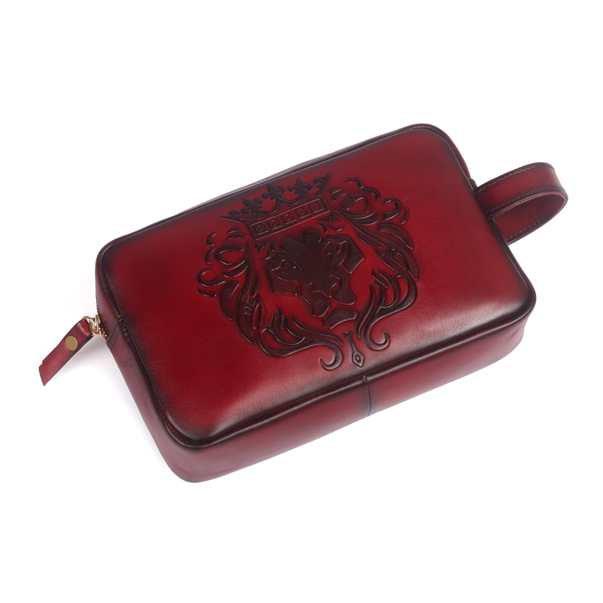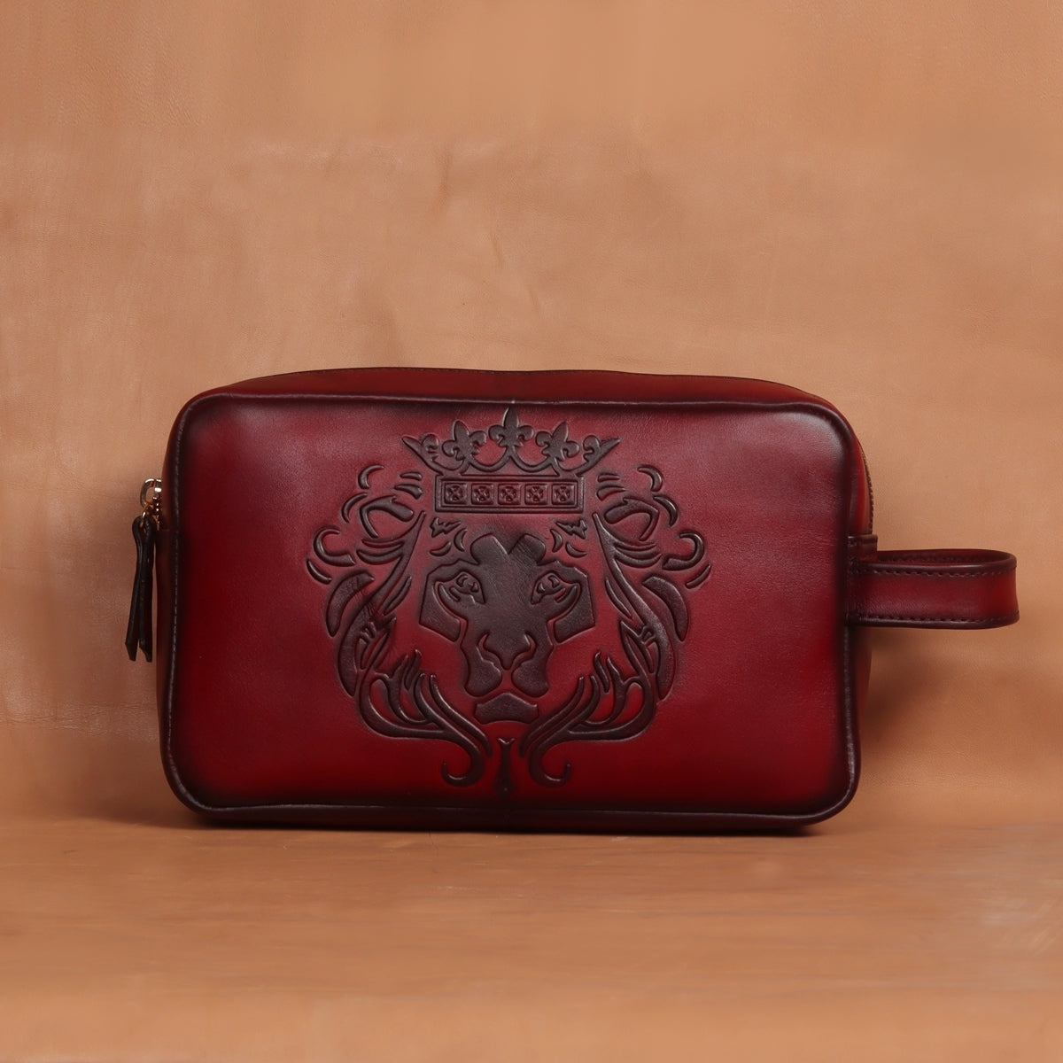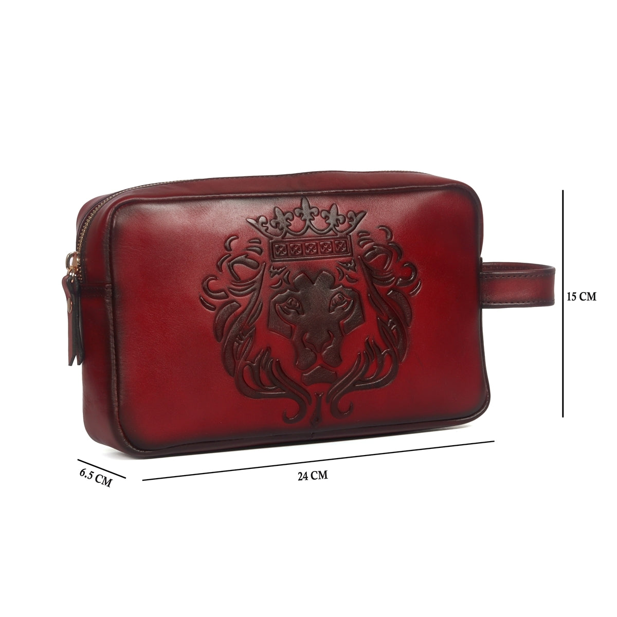Embossed Lion Unisex Wine Genuine Leather Slim Kit Bag for Travel by Brune & Bareskin