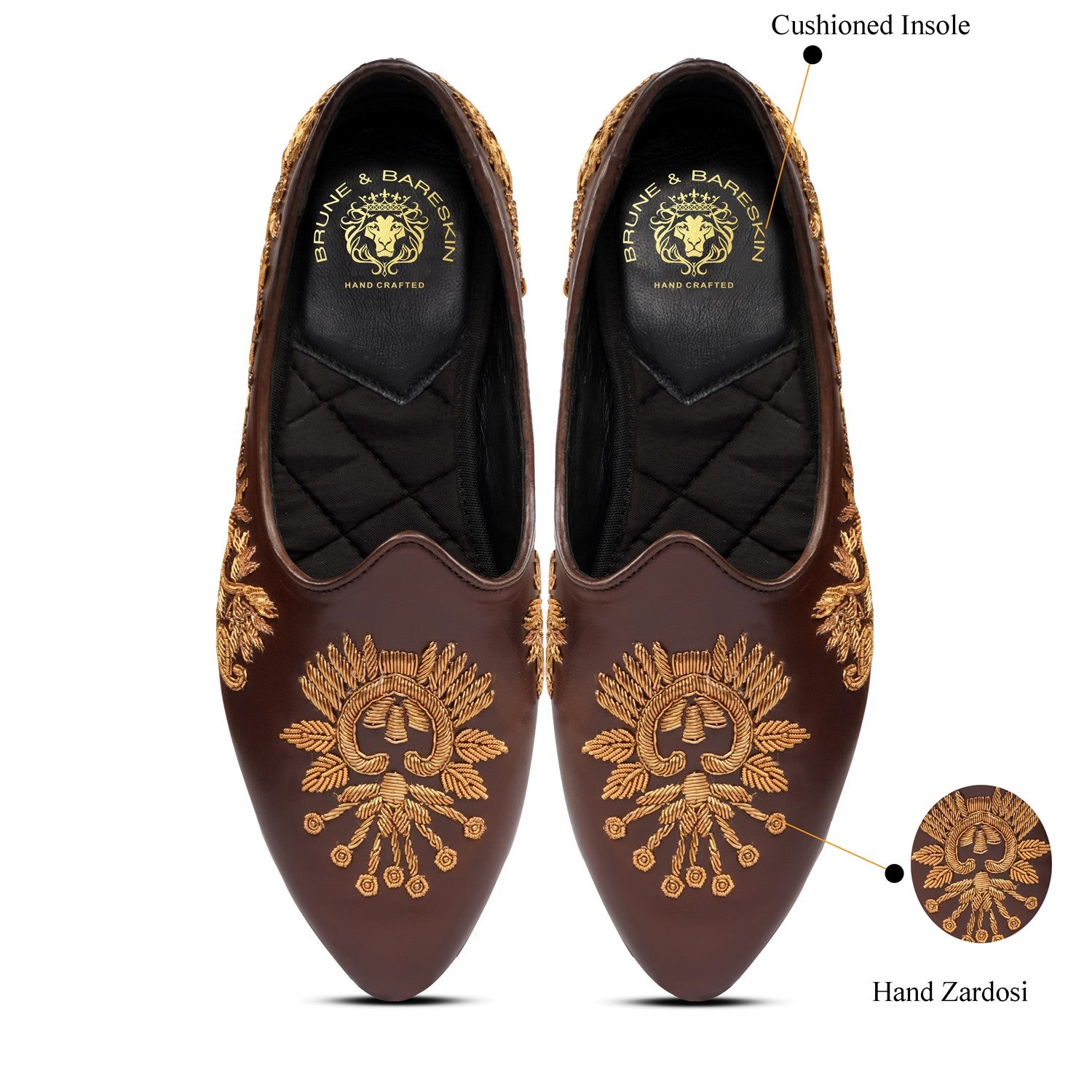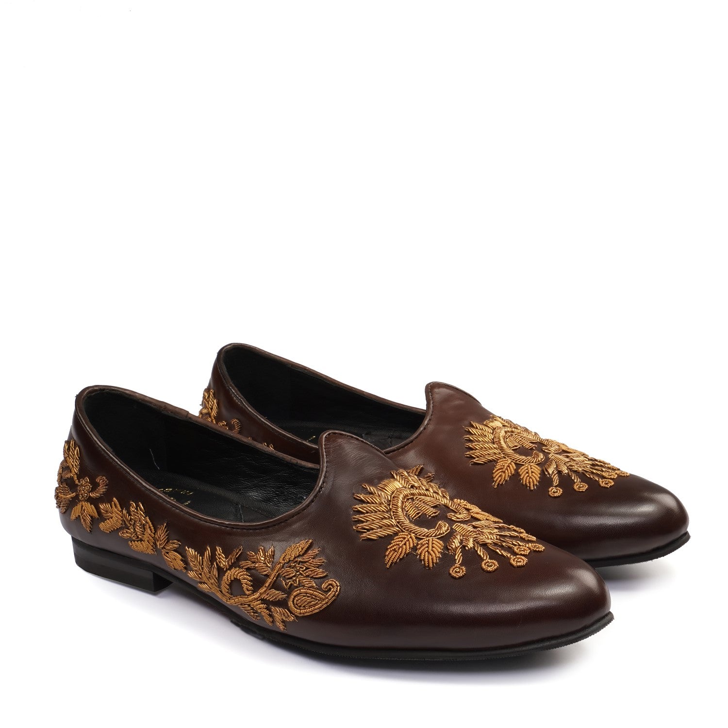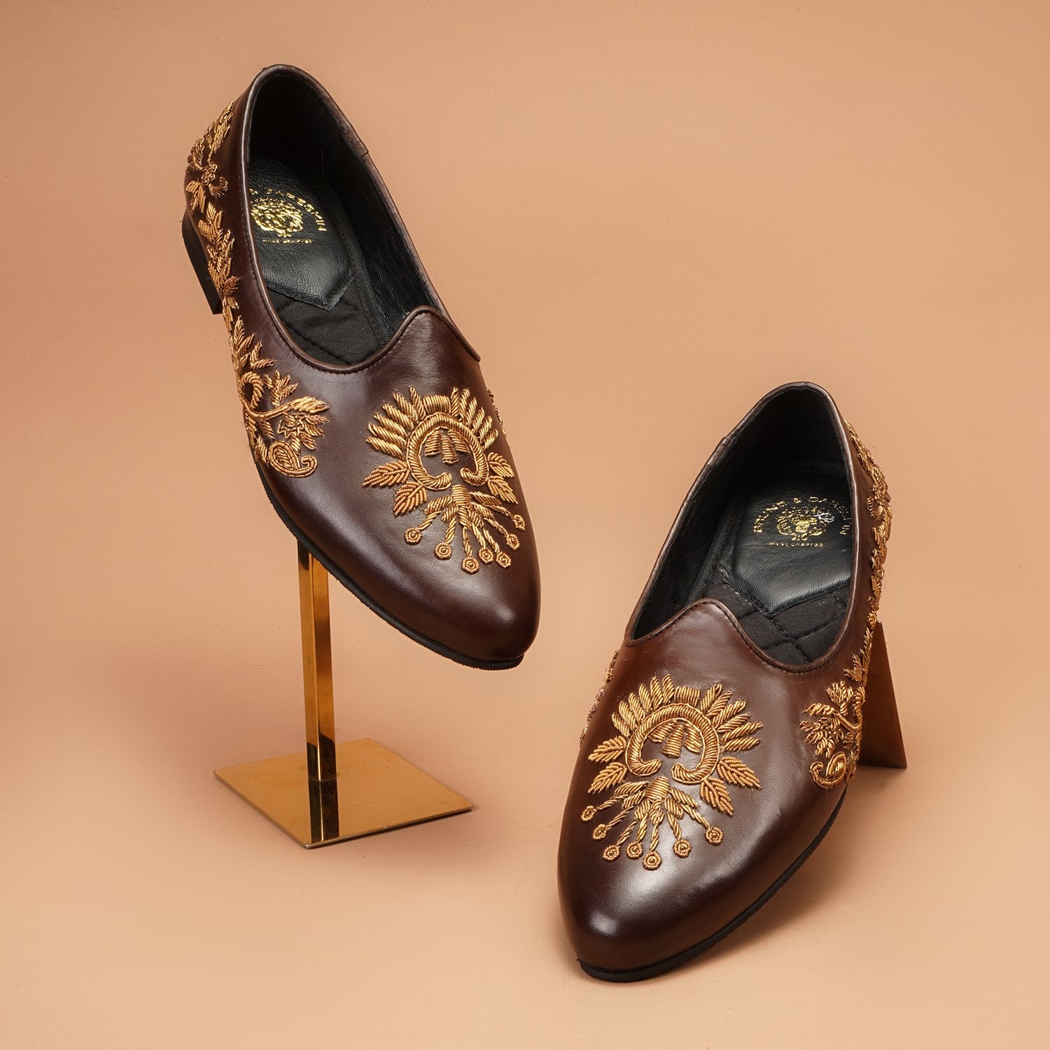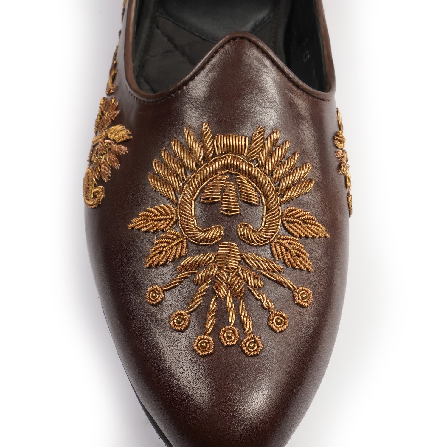 Ethnic Full Zardosi Leather Jalsa in Luxe Dark Brown