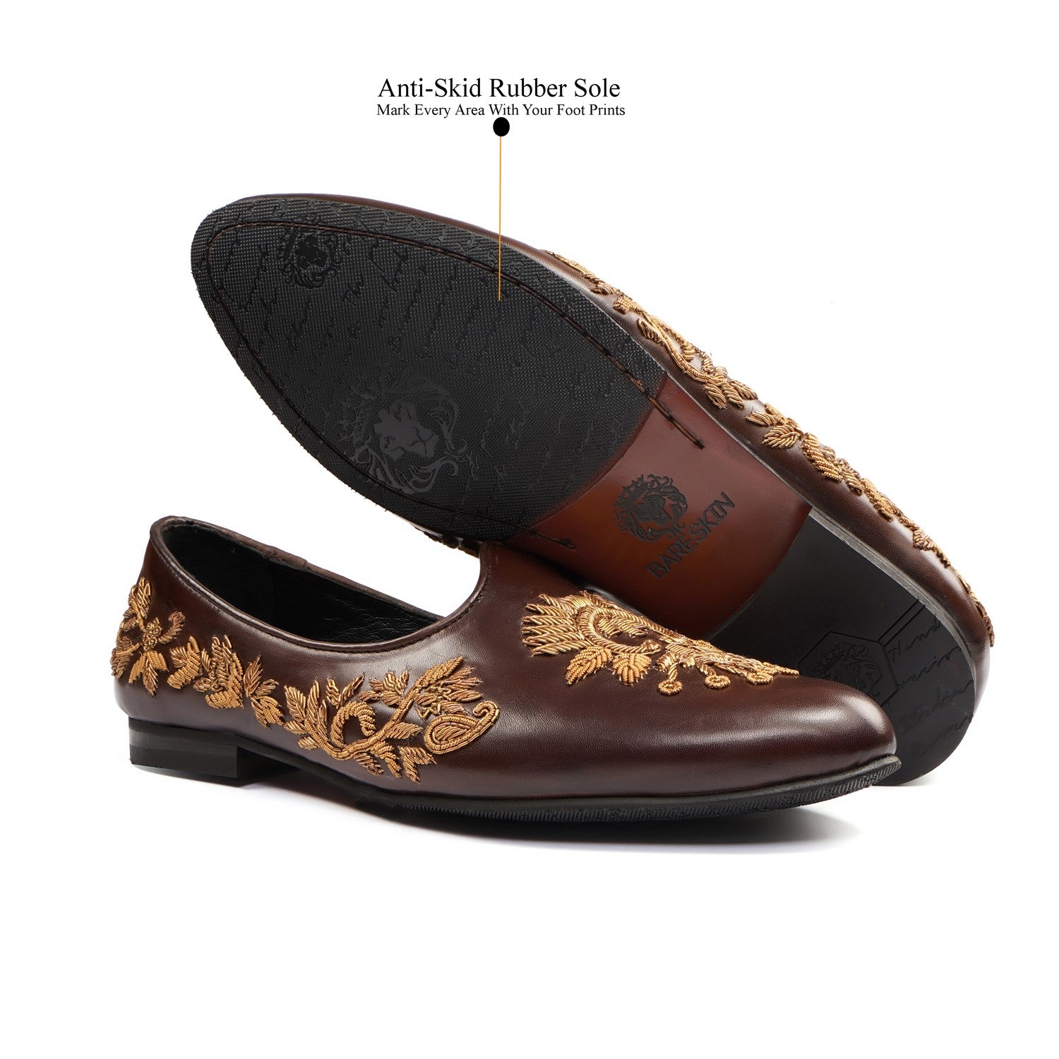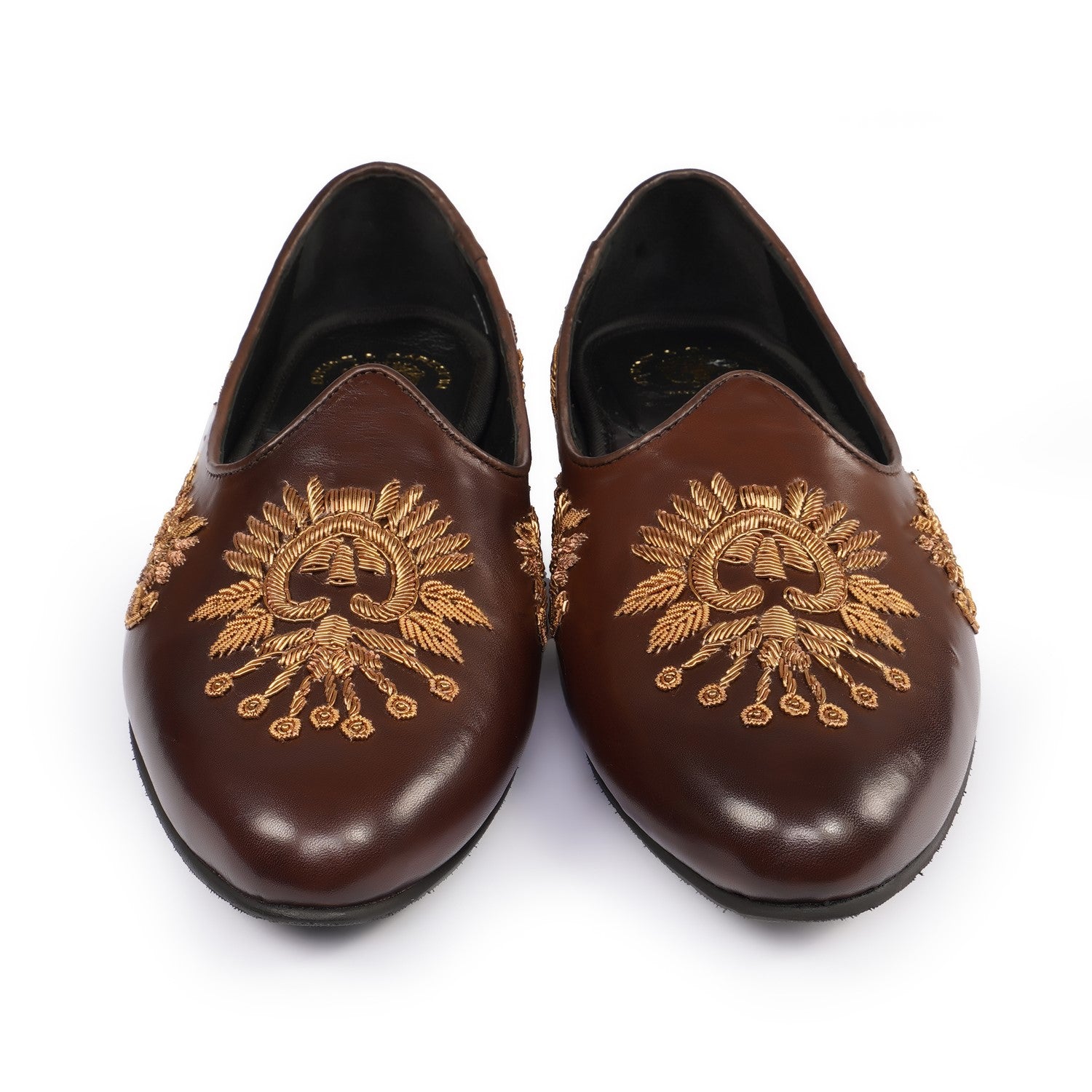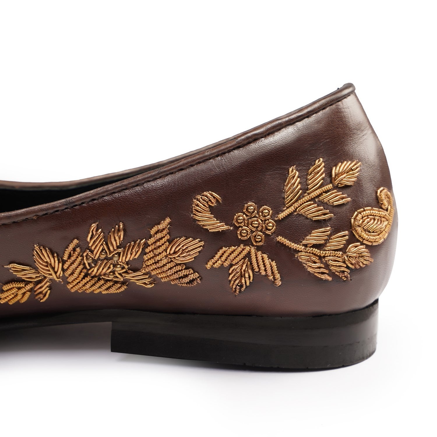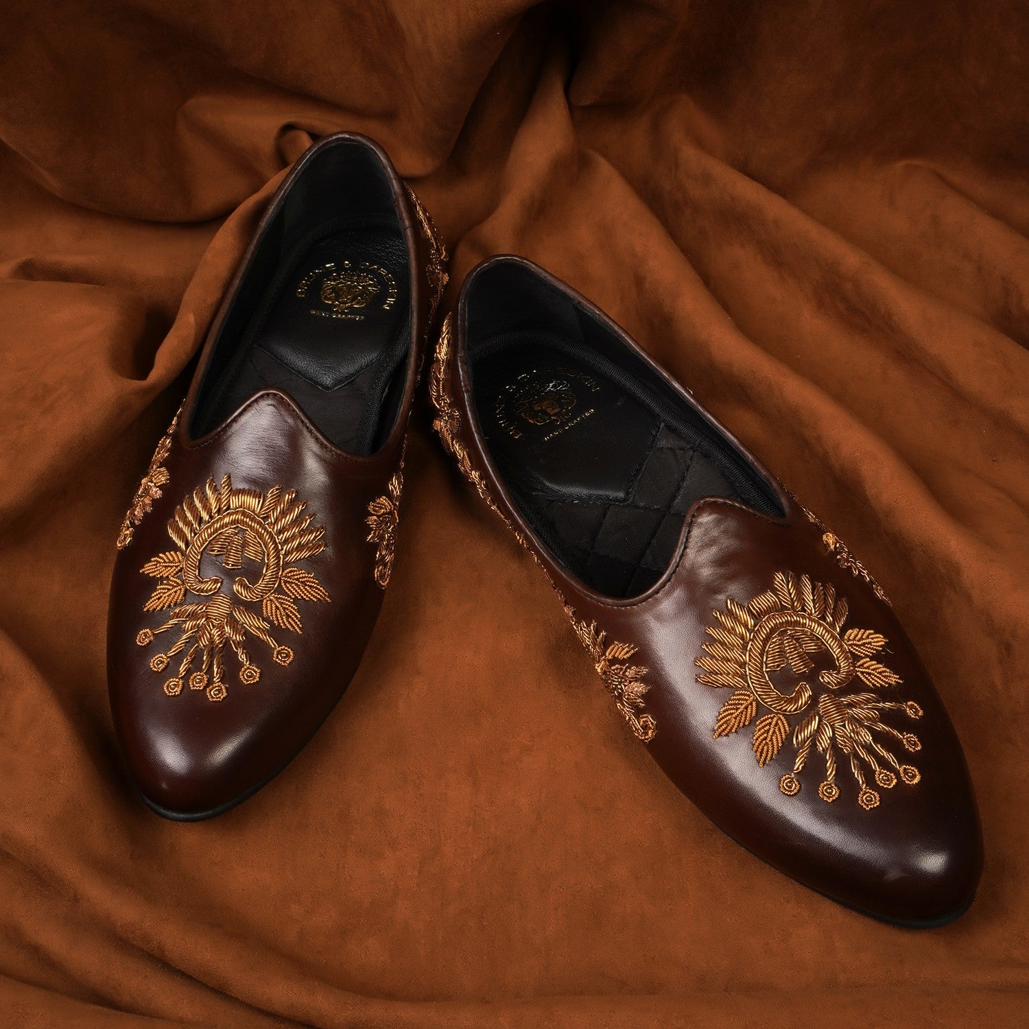 Ethnic Full Zardosi Leather Jalsa in Luxe Dark Brown
