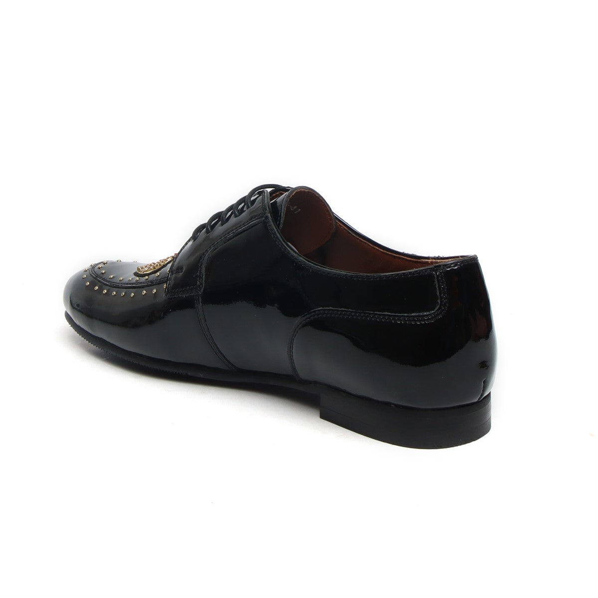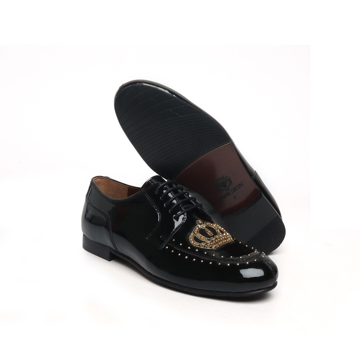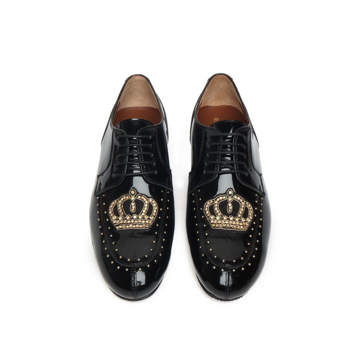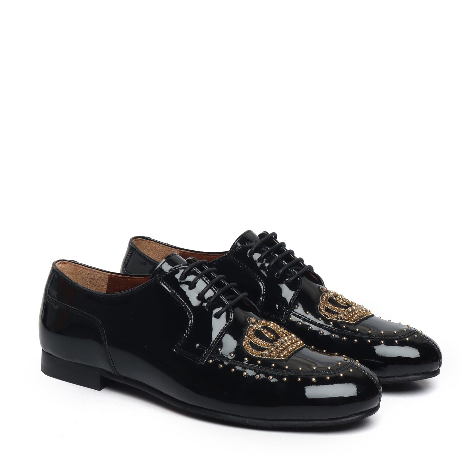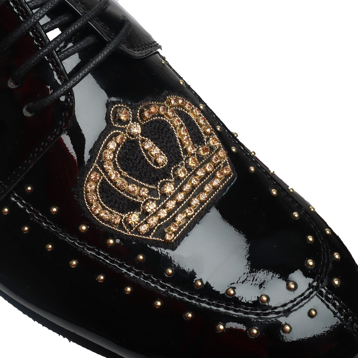 Black Patent Leather Ethnic Studded Crown Zardosi Lace-Up Shoes