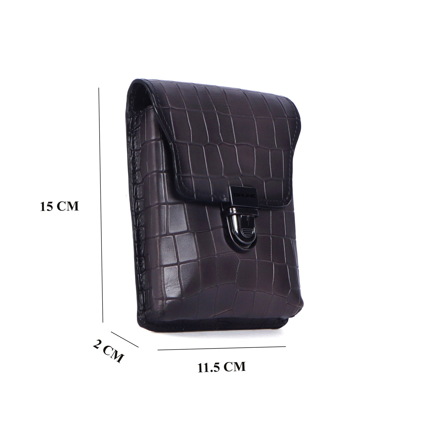 Secure your pens in style with this Exclusive Pen Holder in Grey Croco Textured Leather! This grey pen holder is the perfect accessory to your professional wardrobe - proudly displaying the Brune & Bareskin Brand logo. Durable croco textured leather offers a comfortable feel and the push button clip buckle closure keeps your pens secure. Carry multiple pens in one central place - Perfect for both businessman and women, step up your professional look with this grey, textured leather pen holder.