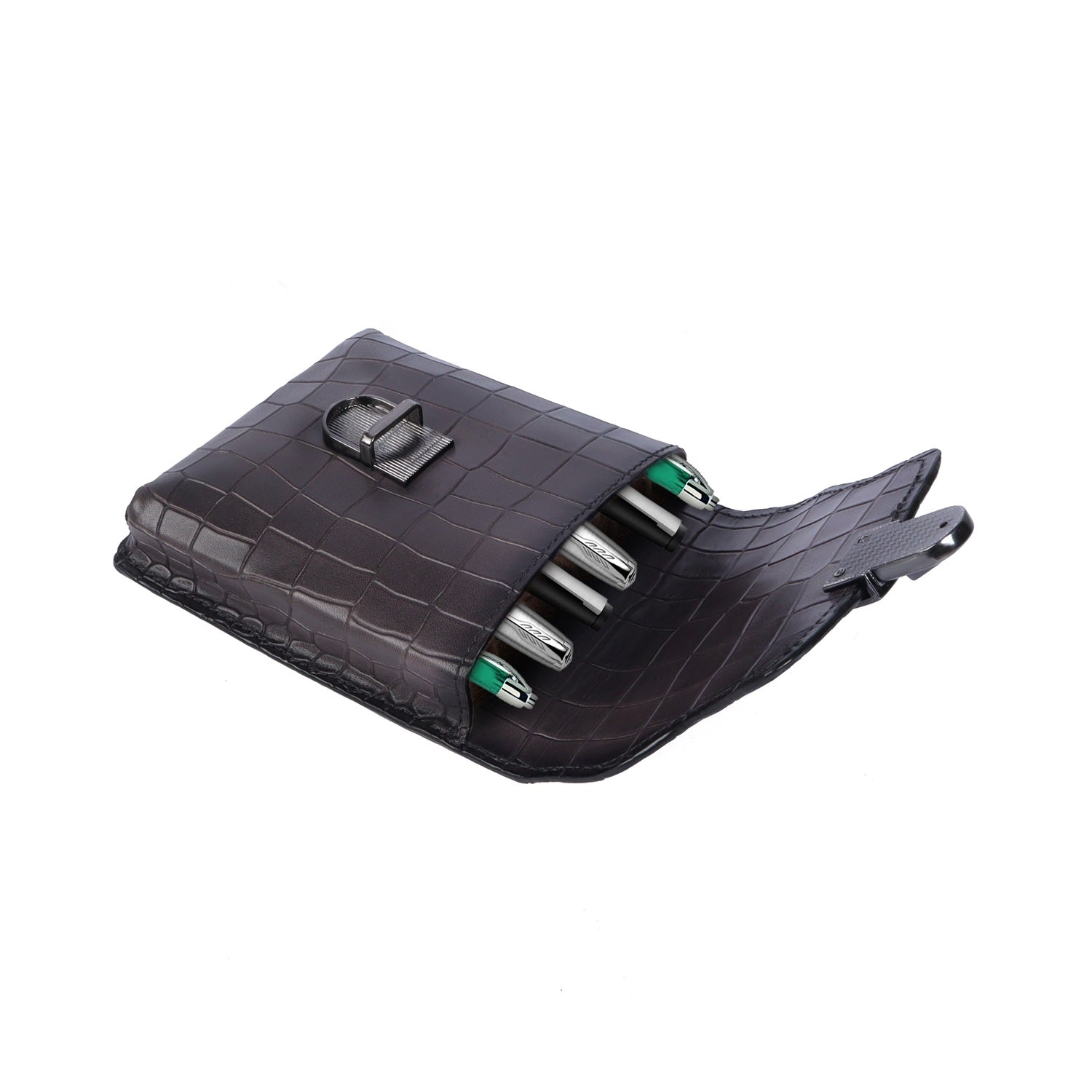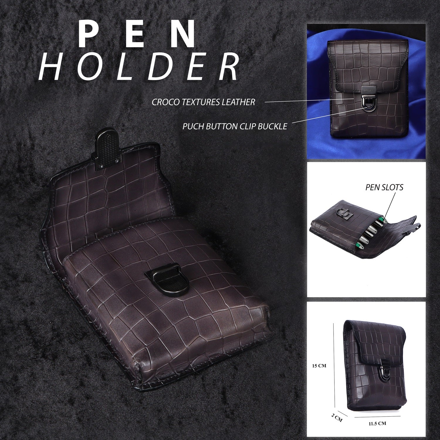 Exclusive Pen Holder in Grey Croco Textured Leather