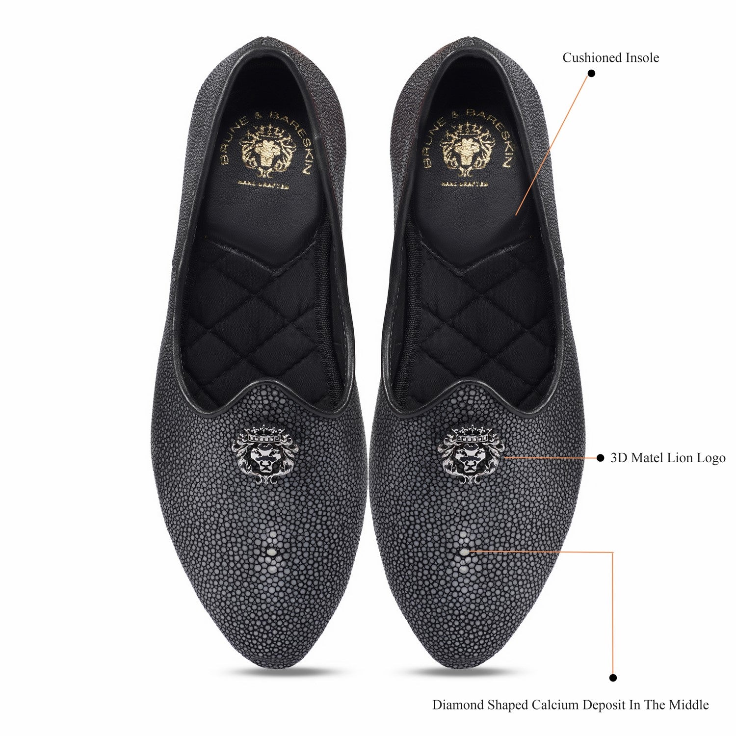This amazing pair of Jalsa Jutti from "BRUNE & BARESKIN" boasts your stylish appearance, while not leaving comfort behind. They are made from real sting ray Leather with comfortable foot-bed and smooth outsole.