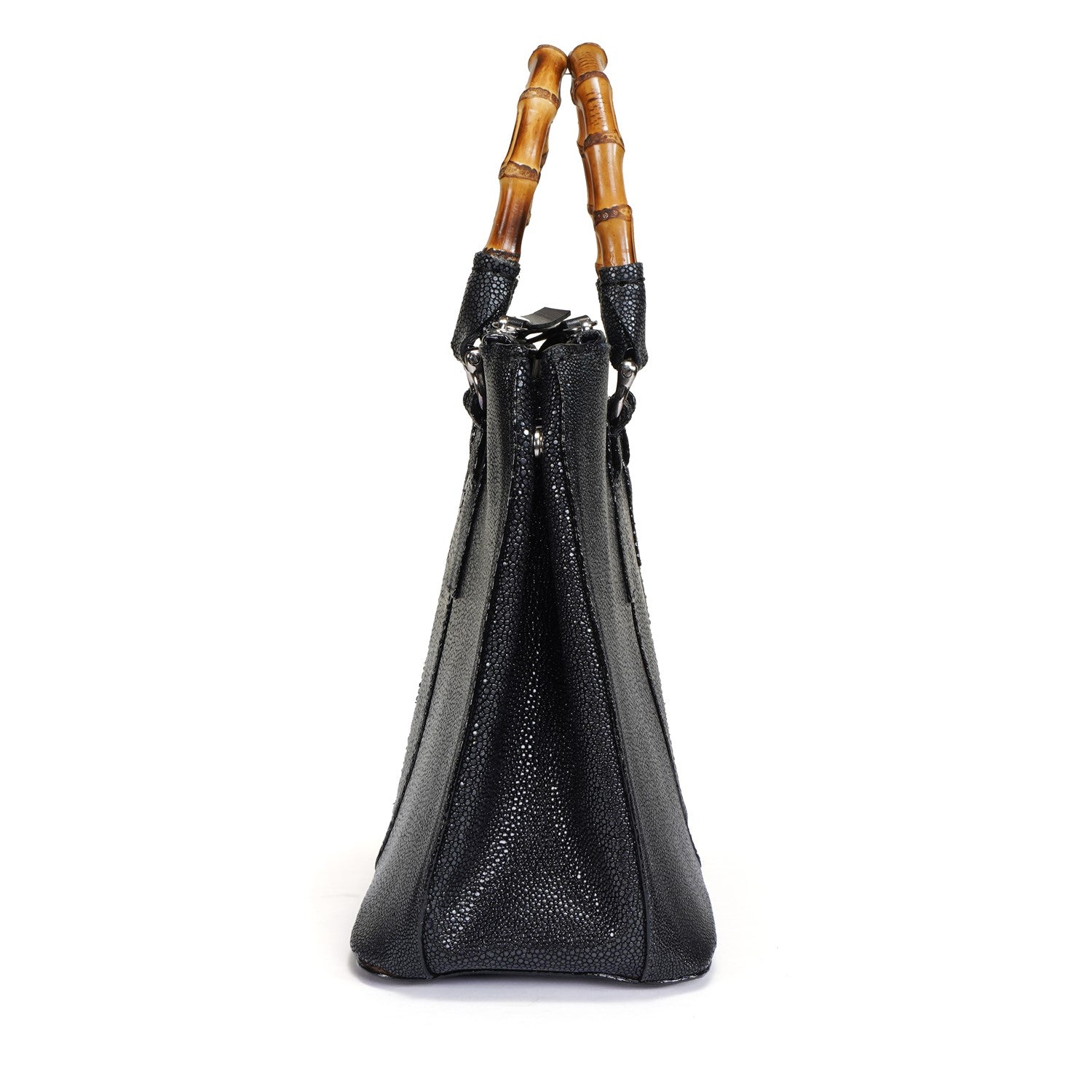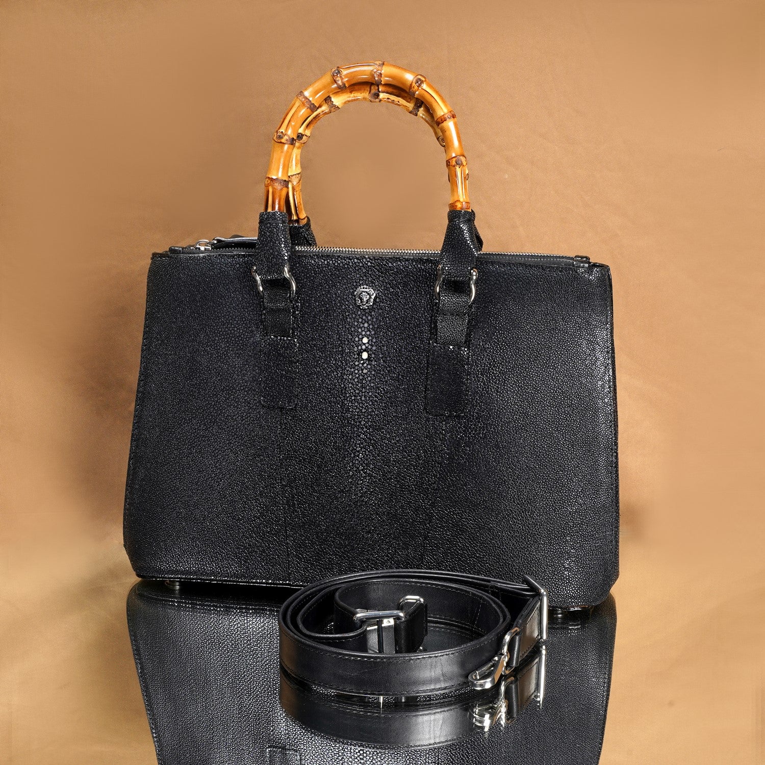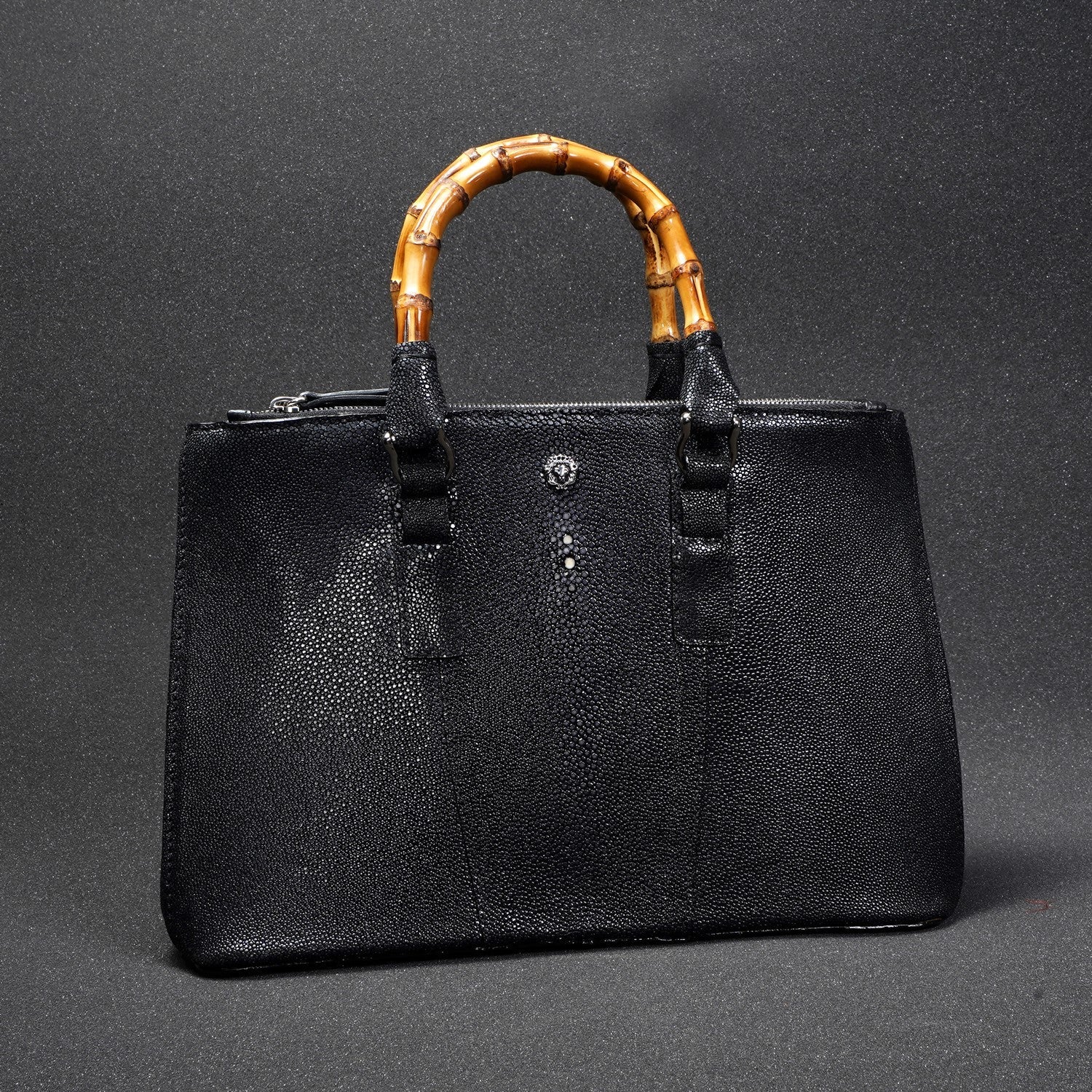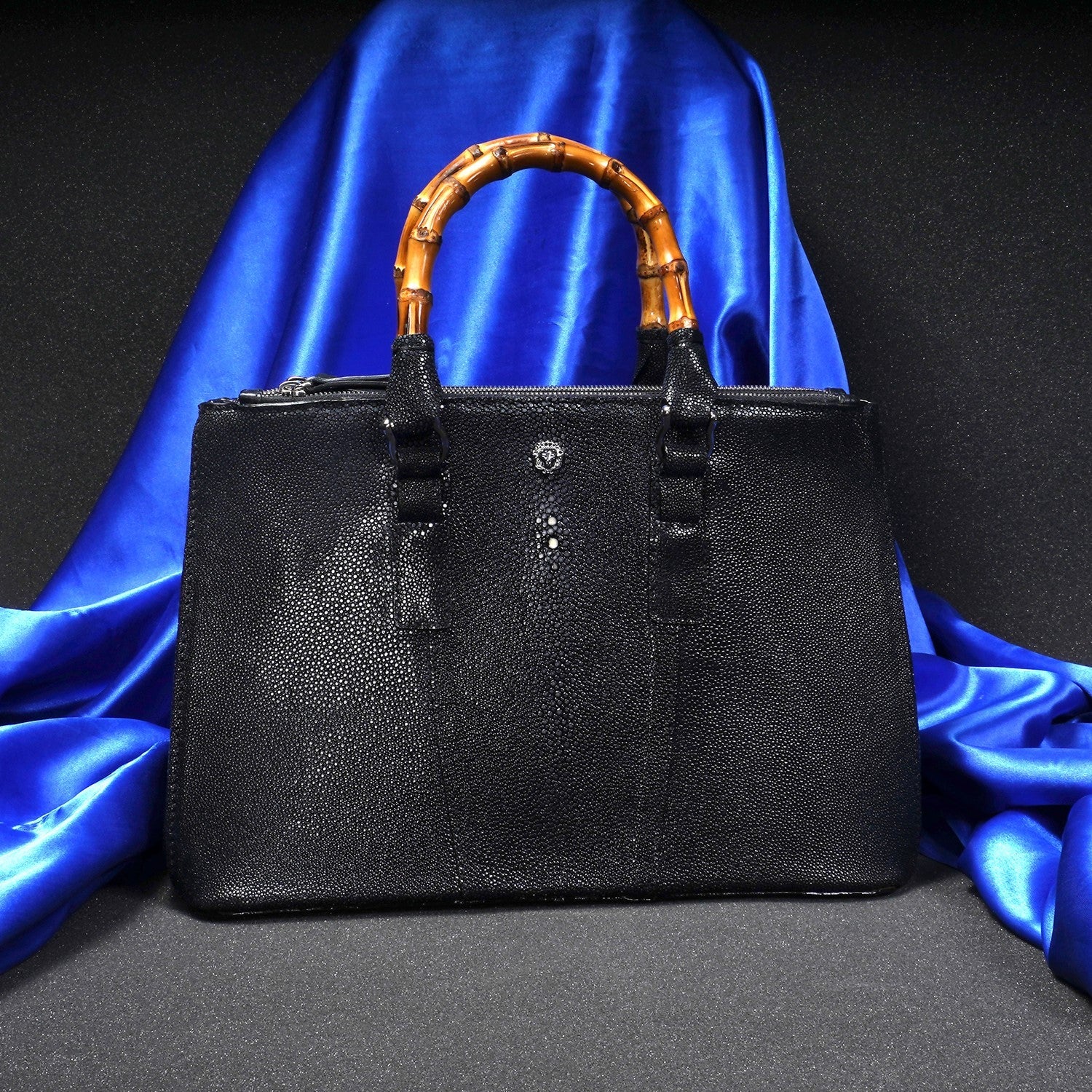 Elegance meets the extraordinary with our Stingray Leather Handbag, featuring a beautifully crafted bamboo handle. Made from genuine exotic stingray leather, this handbag is a true statement piece—luxurious, durable, and uniquely textured. The natural sheen of the stingray leather paired with the earthy charm of bamboo creates a perfect blend of sophistication and nature-inspired design.