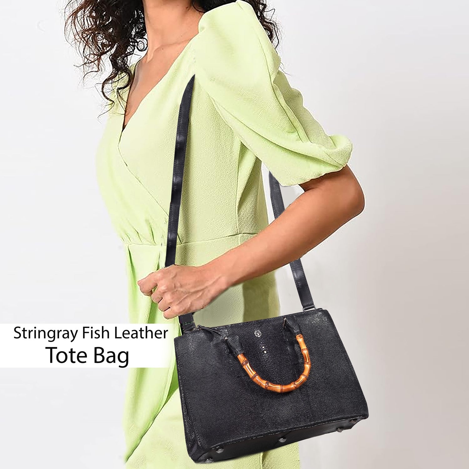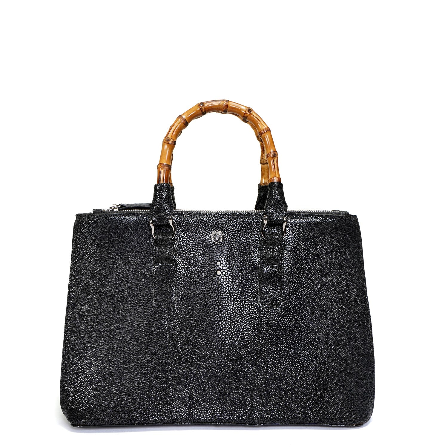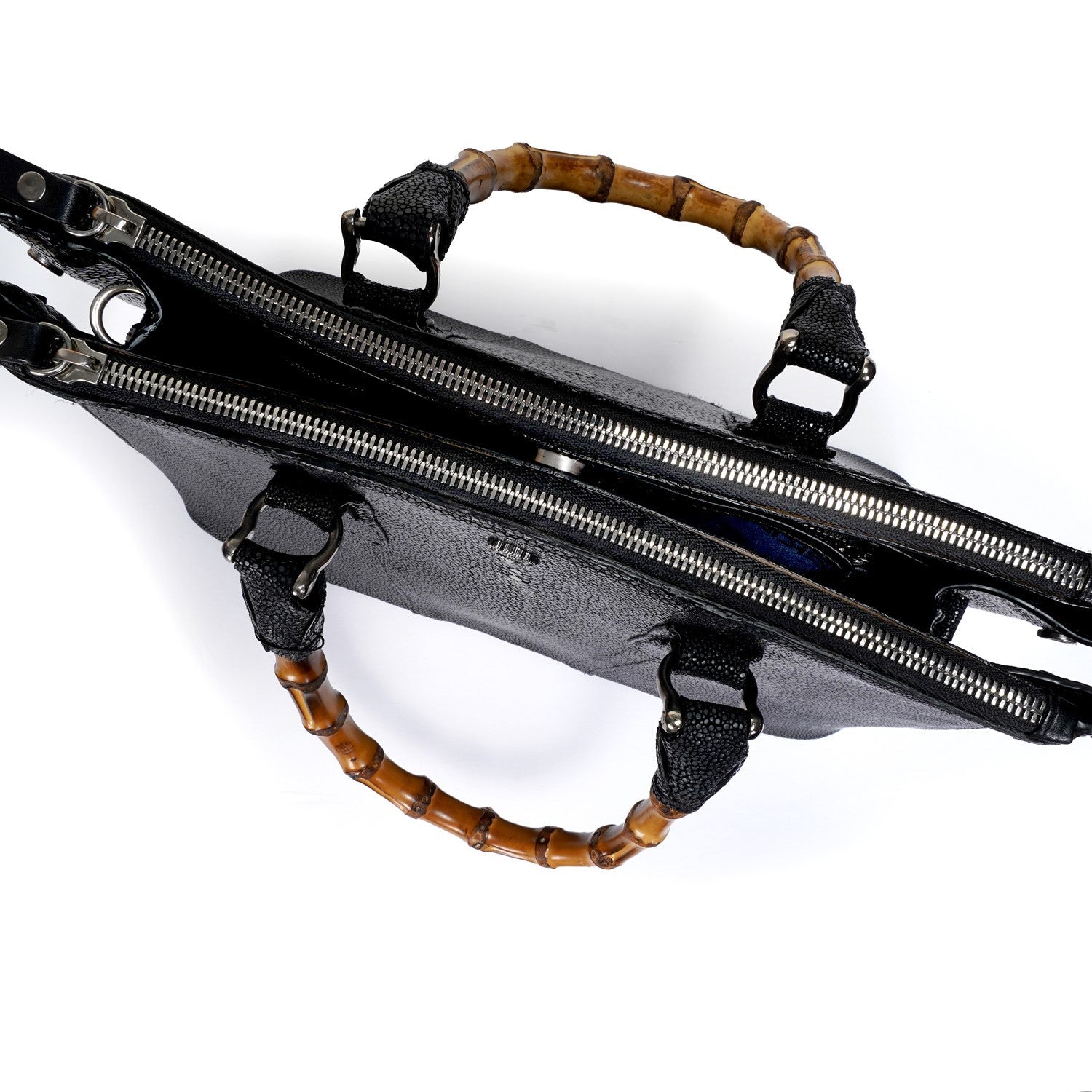 Elegance meets the extraordinary with our Stingray Leather Handbag, featuring a beautifully crafted bamboo handle. Made from genuine exotic stingray leather, this handbag is a true statement piece—luxurious, durable, and uniquely textured. The natural sheen of the stingray leather paired with the earthy charm of bamboo creates a perfect blend of sophistication and nature-inspired design.