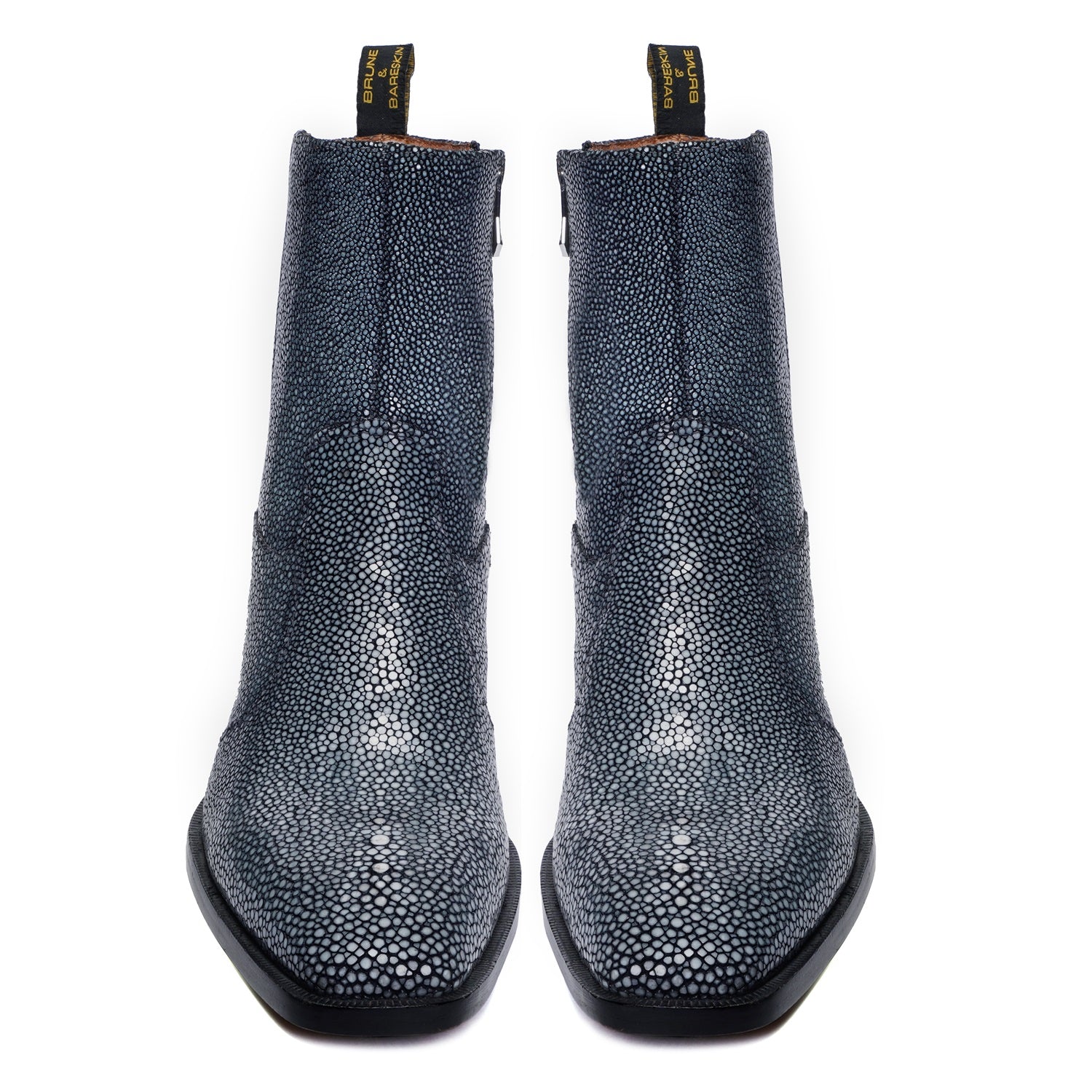Brune & Bareskin offers sensational exotic skin boots that are completely hand crafted and hand stitched. It is a pair of hand-finished stingray fish genuine leather with sure-to-be satisfied fit and style. Stingray leather made with the skin of stingray fish. This hide is covered in countless tiny calcium-rich bubbles that resist scratching, scuffing, and puncturing with ease aside from its beauty; stingray skin is a very durable material that it is perfect for the wear and tear that shoes are subjected to. It is resistant to water, fire, punctures, and tearing. The zip closure provides an extra ease to wear these exquisite boots. The leather sole and Cuban heel adds the extra elegance to it. These boots work for everyday or formal attire. Either way, you will be comfortable on your feet during the hours. Durable construction ensures your boots hold their shape, while the cushioned foot-bed and leather lining make them feel soft and supportive. This astonishing pair is very comfortable to wear. They are easy to team with formal trousers as they blend well with the classic fabrics as well as the modern blended synthetic fabric pants, slacks and trousers. This leather has a natural shine which only increases with regular usage. Due to its superior quality & ultra durability it can last for 4 decades easily. It is water & scratch resistant.