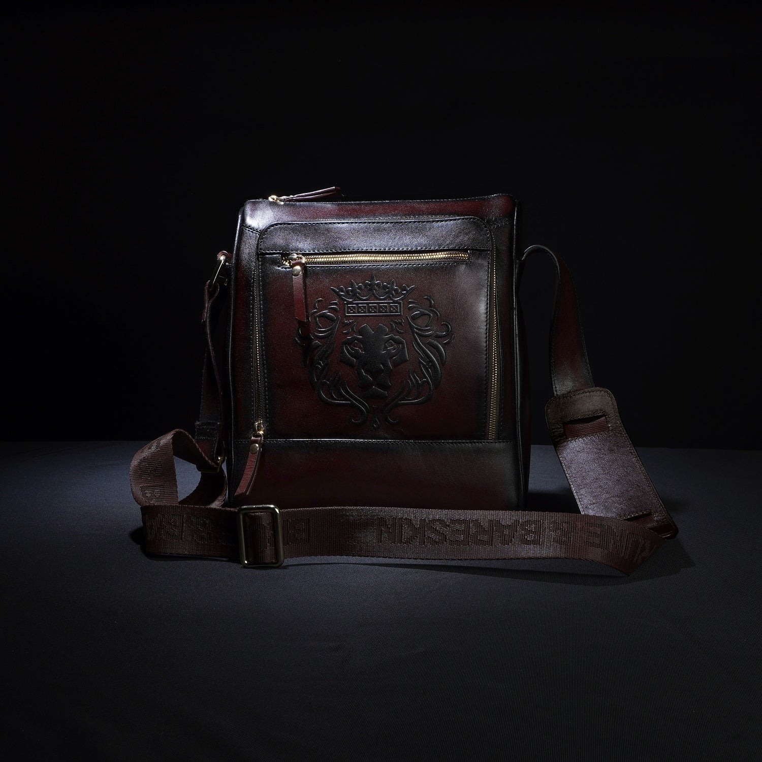 Fanny Pack Bag In Dark Brown Leather with Embossed Lion