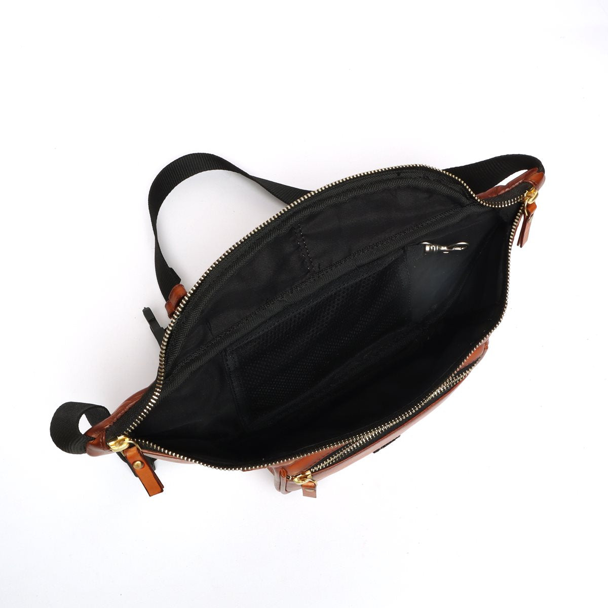 Fanny Pack with Golden Accessories In Tan Genuine Leather