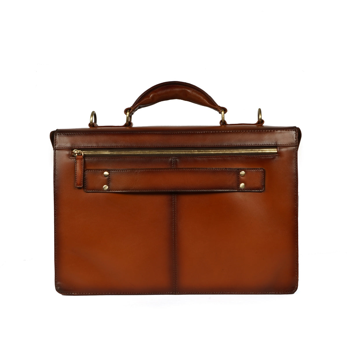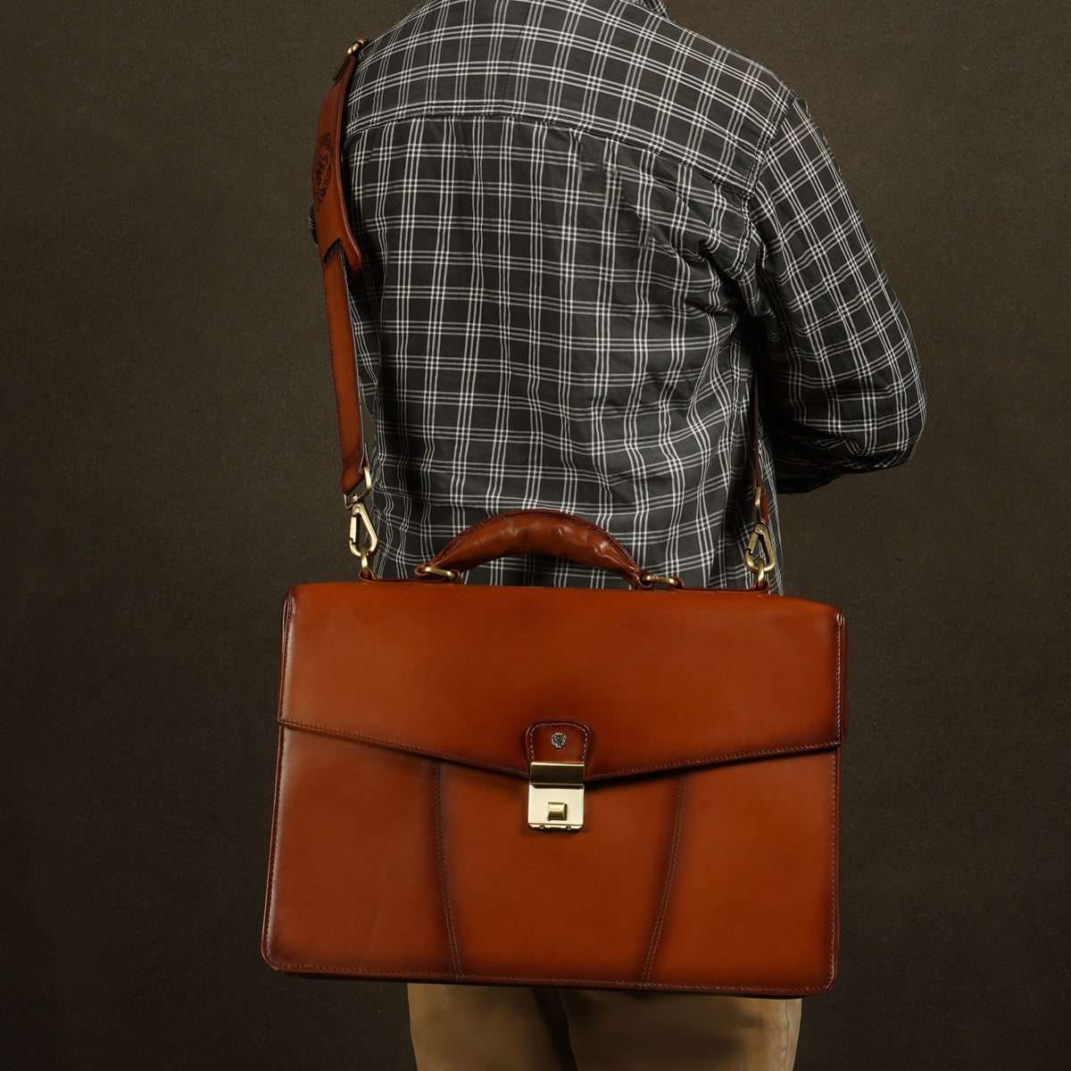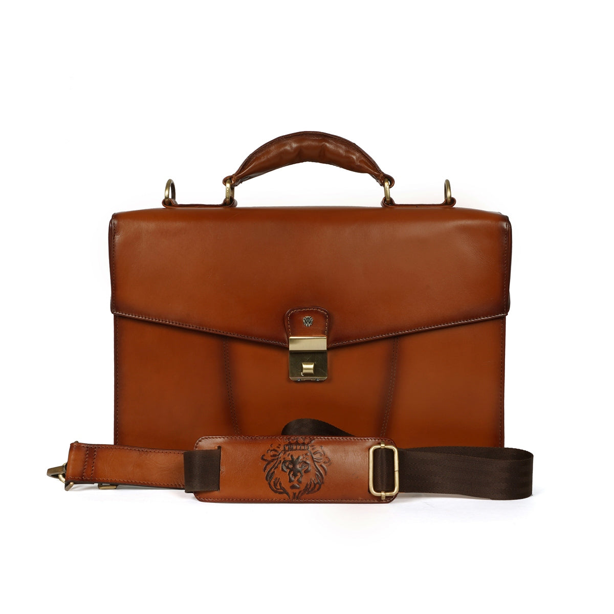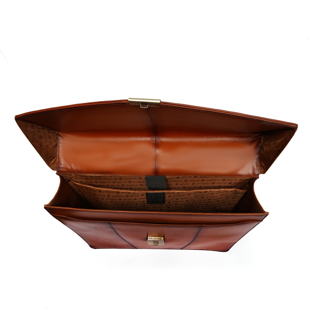 Flap Opening Secured Lock Tan Leather Office Laptop Briefcase With Organizer Compartment by Brune & Bareskin