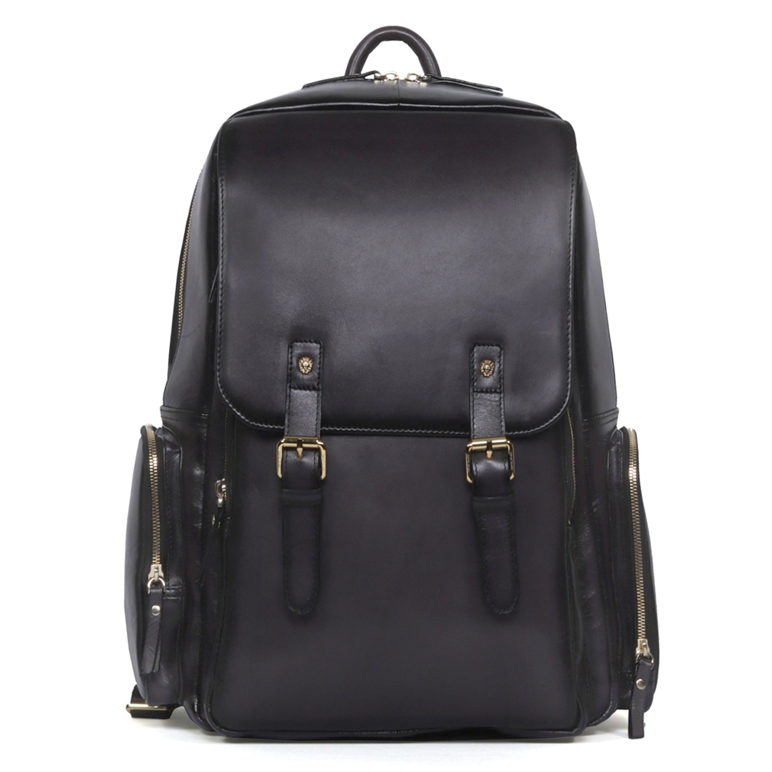 This backpack comes with 2 side pockets with a flap closure supported by magnetic button closure mechanism. This luxurious grey leather backpack has large zip compartments to carry clothes and other essentials. The front of the bag has an open pocket which can store an small iPad or a phone making them easily accessible. Its unique design enhancing the royalty of the product. Multi-pockets zipper closure help the easy access while traveling. Padded straps and back make it very comfortable while carrying on shoulders. You can get it made in any color shade and with your name initials or logos with our Bespoke Services.