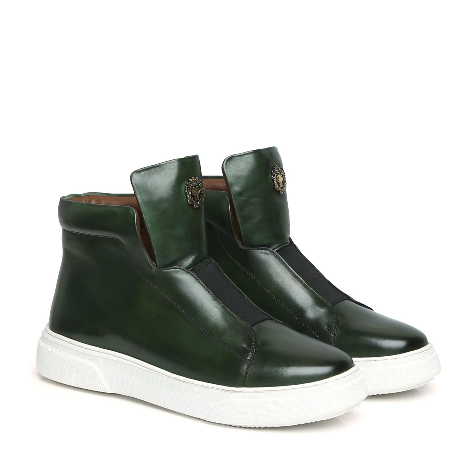 Forest Green Color Mid-Top Sneakers in Stretchable Closure by Brune & Bareskin