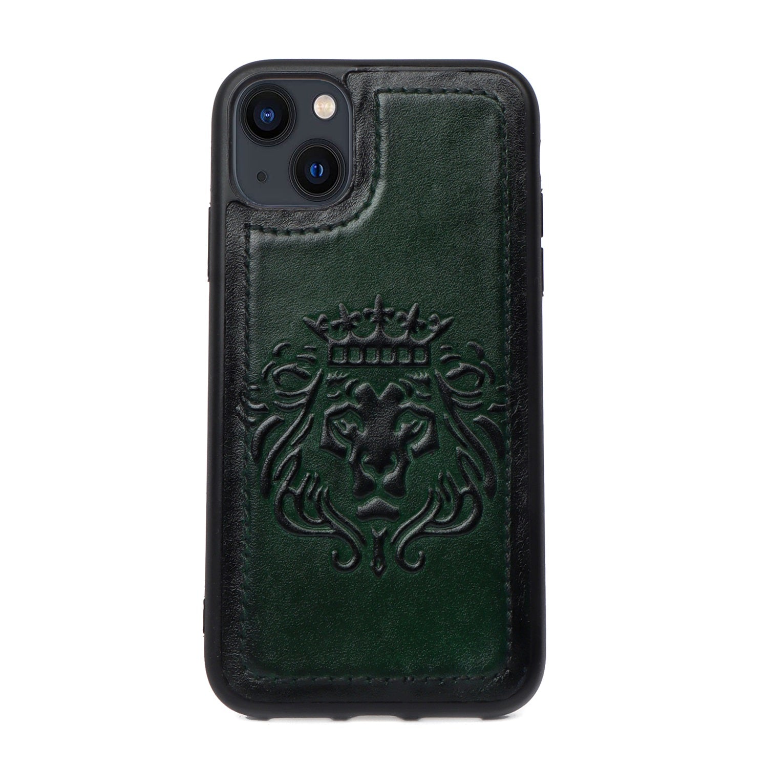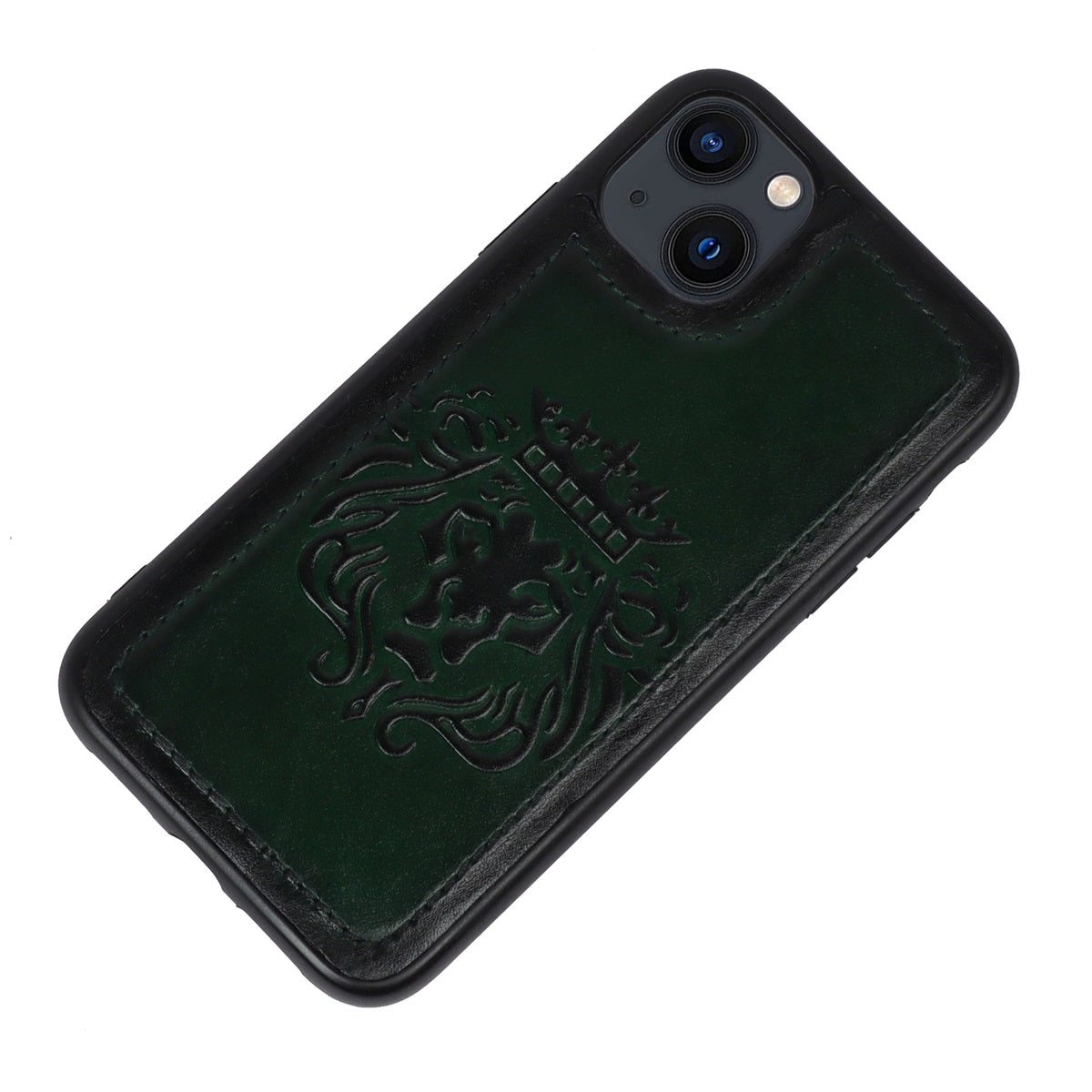 Forest Green Leather Lion Embossed Mobile Cover by BRUNE & BARESKIN