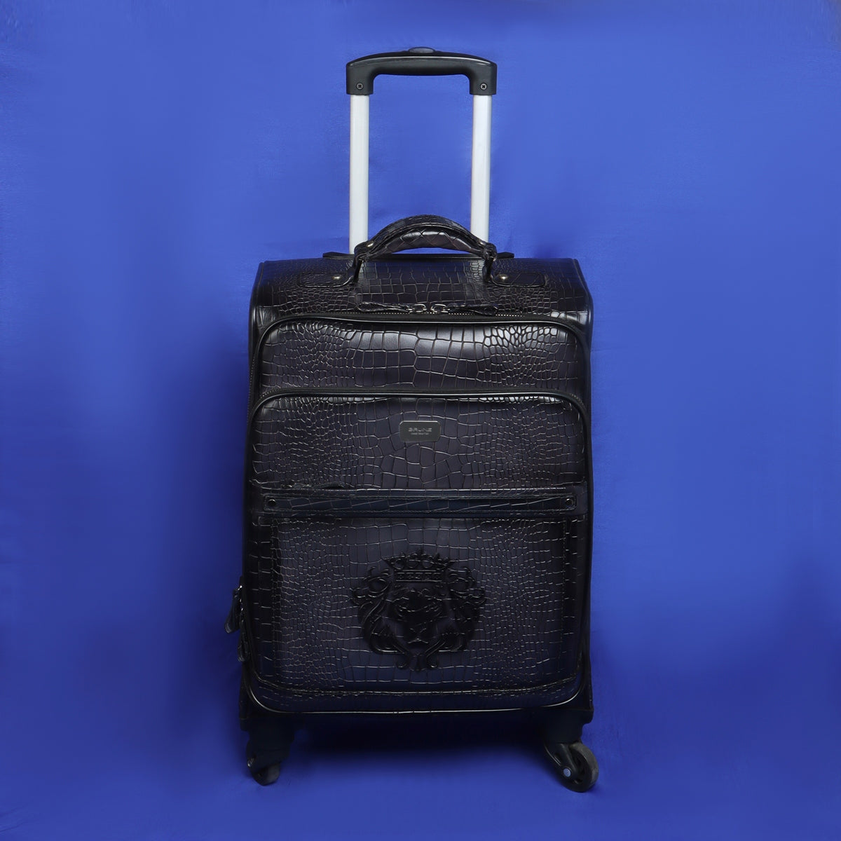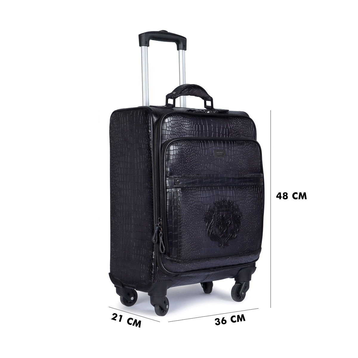 Brune & Bareskin roll-along cabin case is handmade from the finest quality leather and luxuriously lined with multiple compartments. A good traveler has no fixed plans, but has good trolley bag. grey color is never old or outdated. It's full deep cut croco textured grey leather stitched design makes it look unique as compare to others. The croco print grey leather provides signature lion logo embossed on the most iconic Brune & Bareskin strolley bag richness to the look. The spacious interior which opens with a smooth golden zipper features pockets and compartments for laptop & iPad and pouches providing extra space for all your travel essentials, whilst the exterior boasts a handy slip in pocket perfect for those last minute airport purchases. This is handmade from the finest quality leather and luxuriously lined with Up to 15" Laptop Sleeve. The foldaway telescopic handle is tucked away in a neat compartment and the integral quad wheels are discreetly placed at the bottom, which stands the case in all its glory. You can customize this further in your favorite color and also add the name initials.