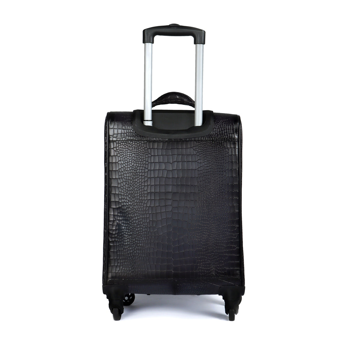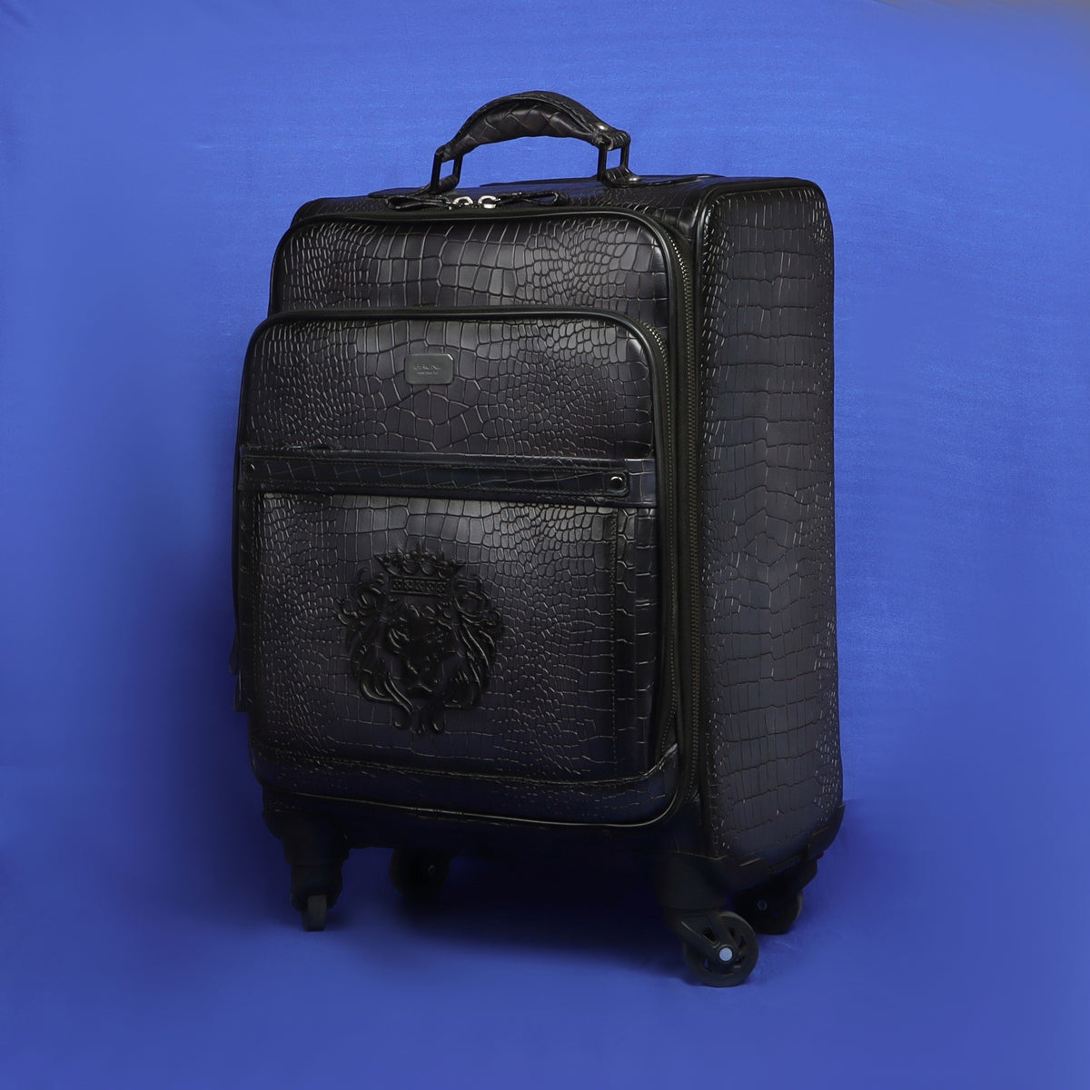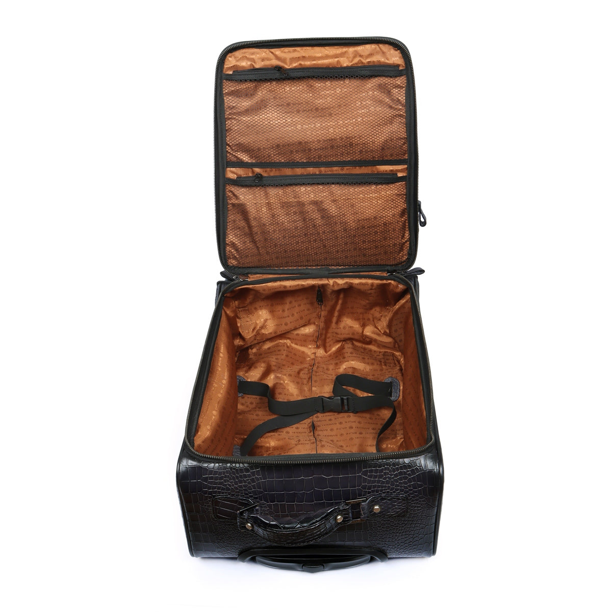 Full Deep Cut Croco Grey Textured Leather Quad Wheel Cabin Strolley Travel Bag