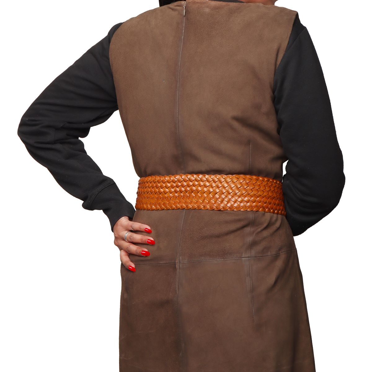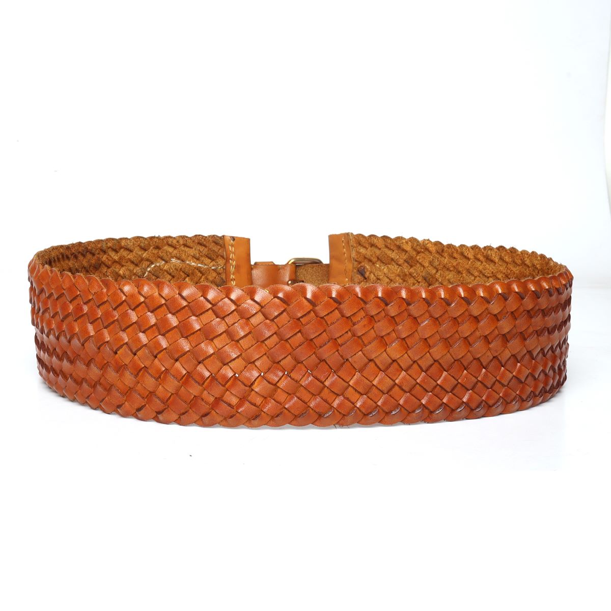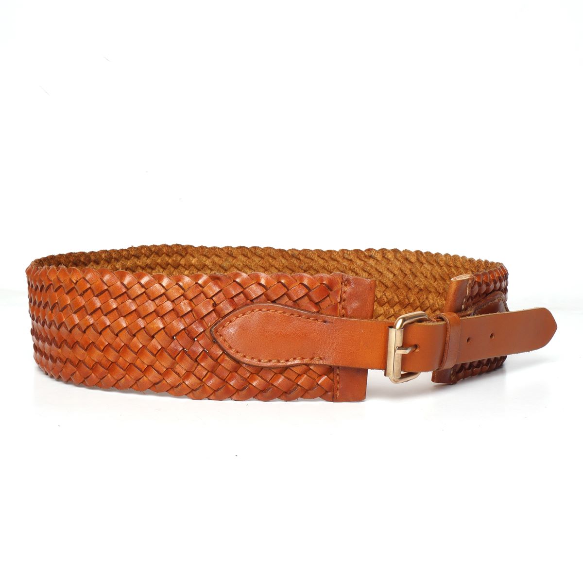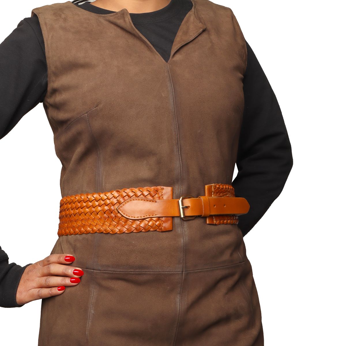 Full Hand Weaved Detailing Corset Tan Leather Buckled Belt By Brune & Bareskin